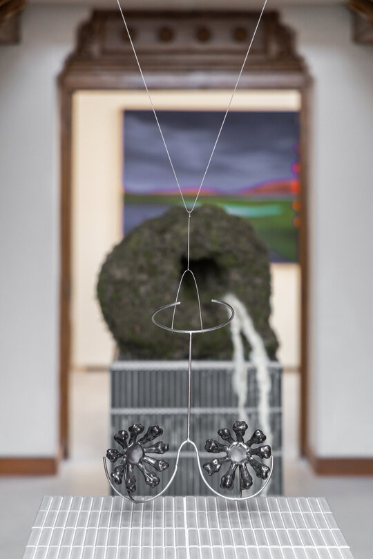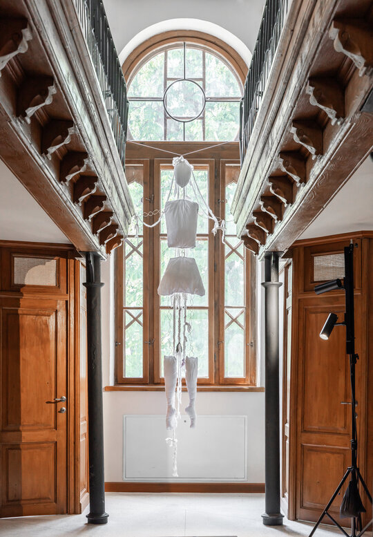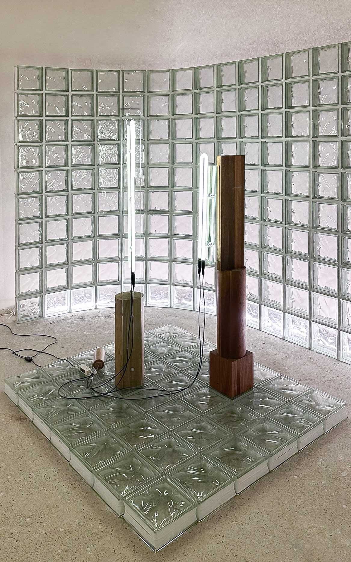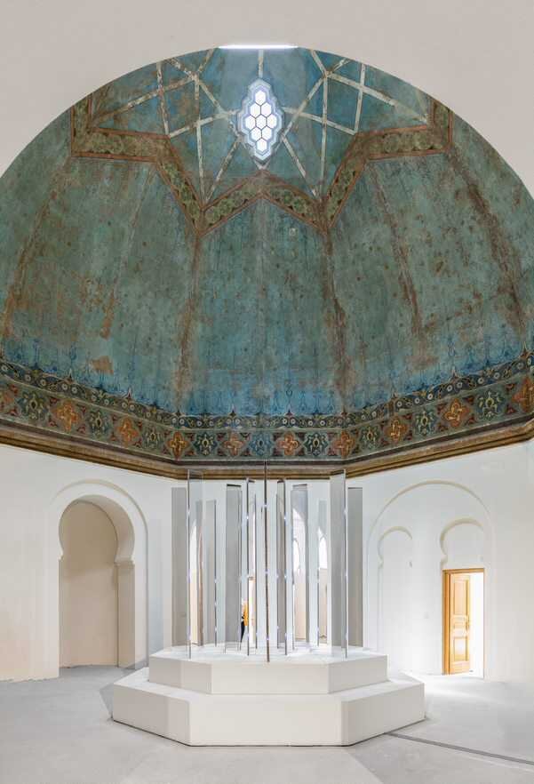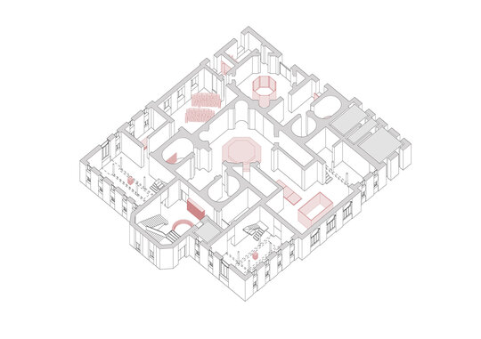 Cu elemente inspirate din procesiunea băii, urmărind explorarea corpului propusă de curatoria artistică, arhitectura de expoziție se integrează subtil în spațiu, devenind aproape invizibilă: pare a locului. Piese ceramice, blocuri de sticlă, oglindiri de „apă” sau vestiare regândite în cheie contemporană complementează spațialitatea complexă a monumentului și a expoziției, articulându-le în manieră sensibilă. După ce festivalul s-a încheiat, piese din scenografia de expoziție au rămas în spațiu, devenind o adiție permanentă a interioarelor.