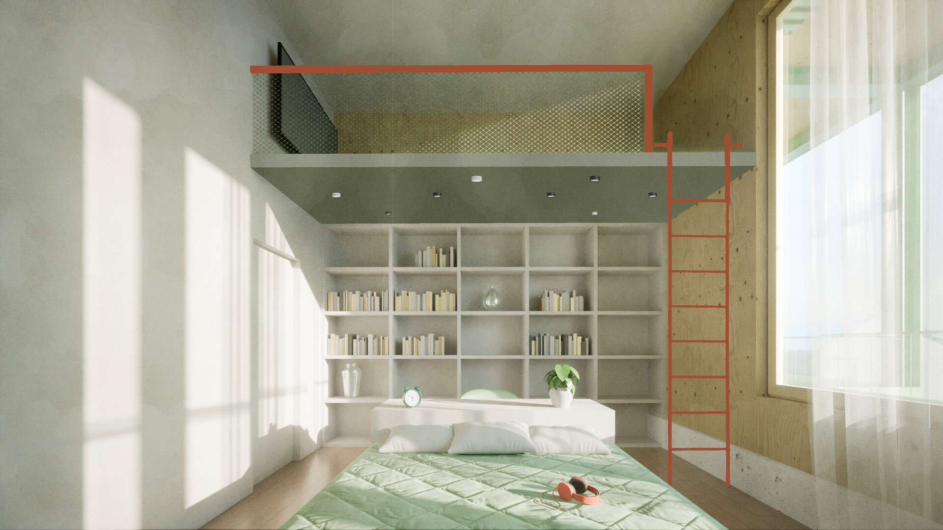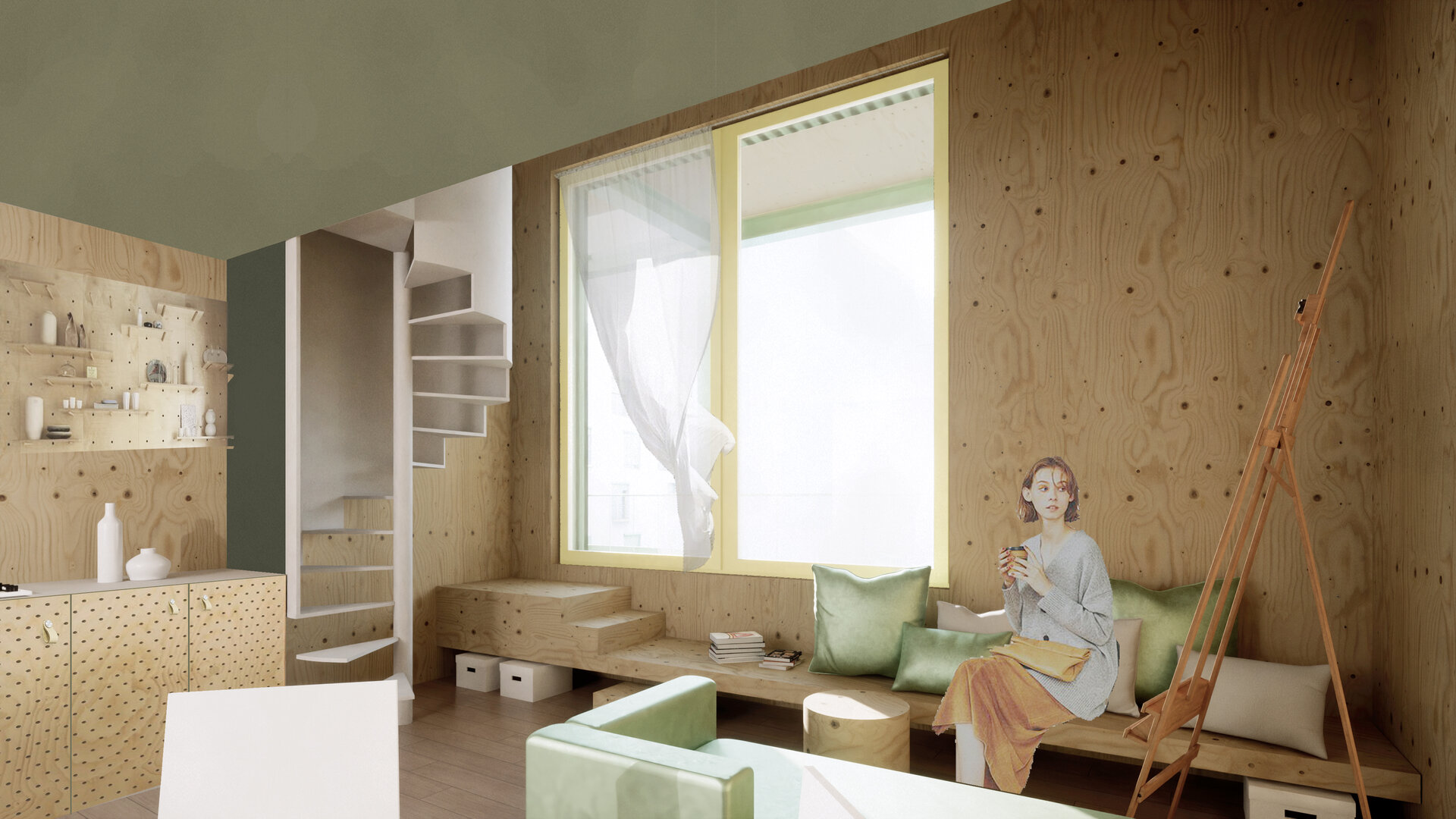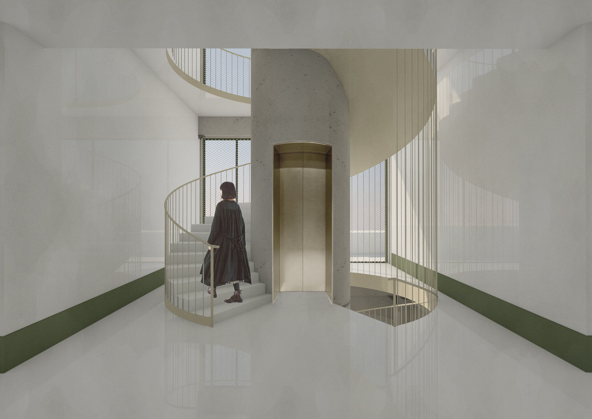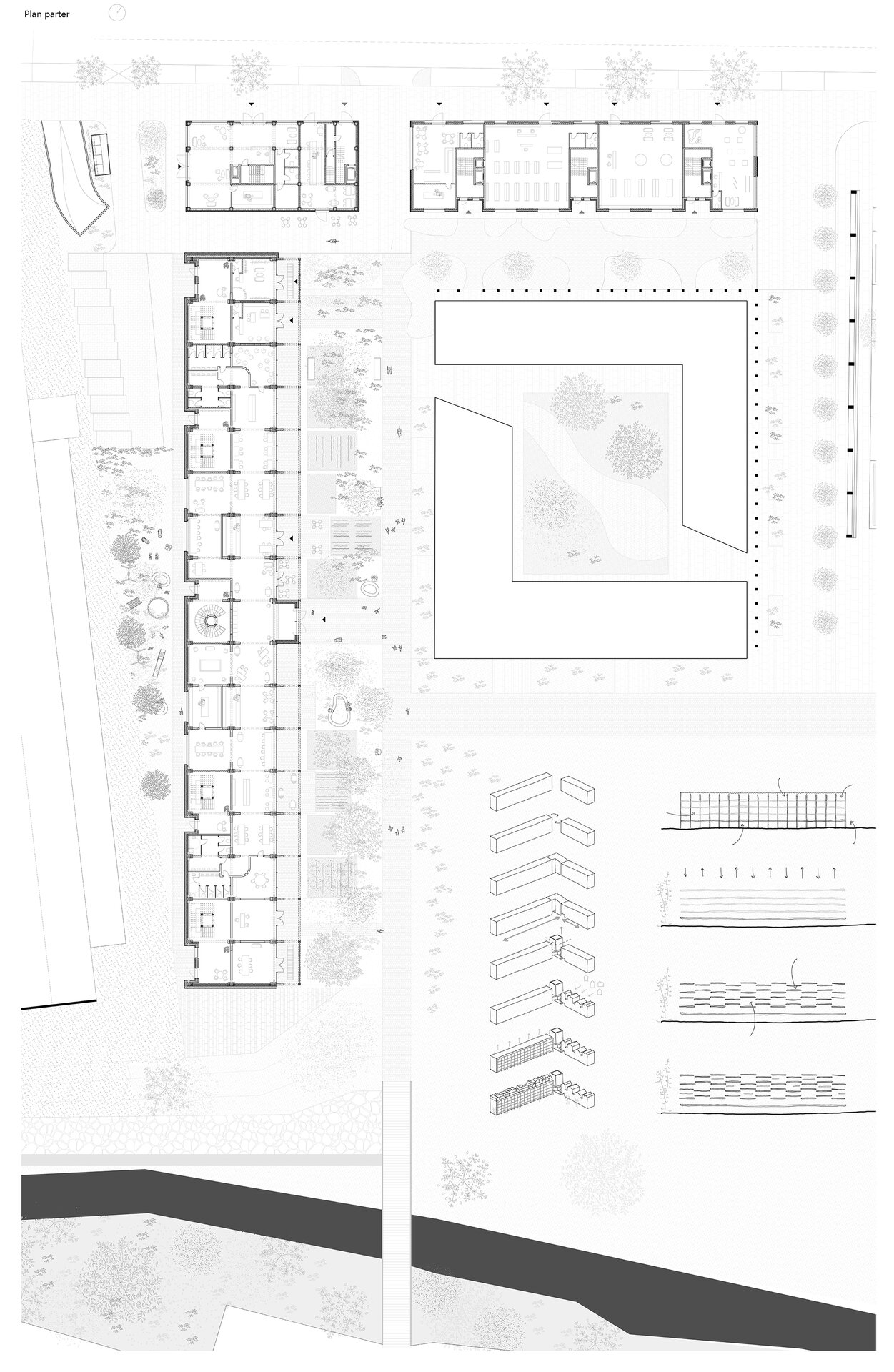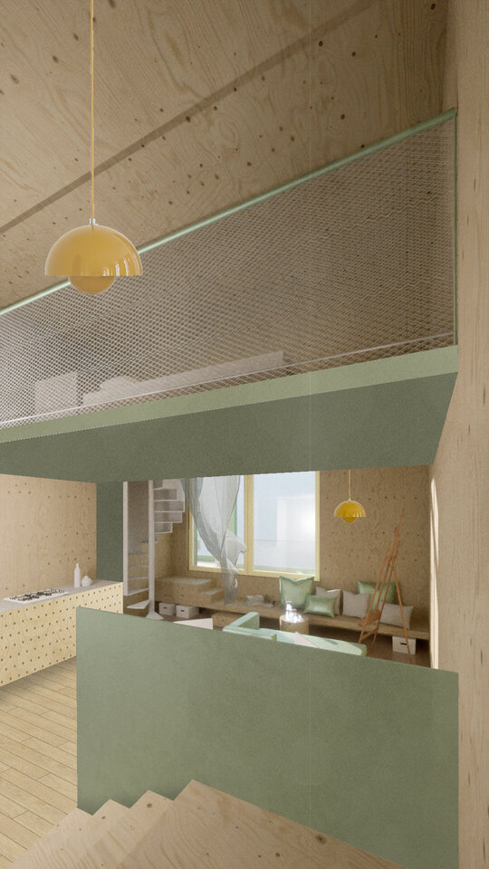 În jurul clădirii de locuințe colective, spațiul public apare ca nevoie a revitalizării zonei. După cum spune și Gehl, viața urbană e limitată atâta timp cât nu există posibilitatea fizică pentru desfașurarea ei. Astfel, intreg parterul este destinat unui public larg, adăpostind funcțiuni diverse pentru a anima zona, urmând ca nivelurile superioare a clădirilor să devină tot mai private, adăpostind locuinte. Diversitatea gamei de tipologii va atrage diferiti locuitori. Tipologiile sunt concepute pentru a oferi calități spațiale diferite de cele existente și se pot chiar permuta pentru a se potrivi diferitelor utilizări în timp. În cazul apartamentelor aflate în structurii existente, un nou strat de spațiu exterior este adăugat: fiecare apartament este prevăzut cu un balcon generos, o extensie a spațiului interior.