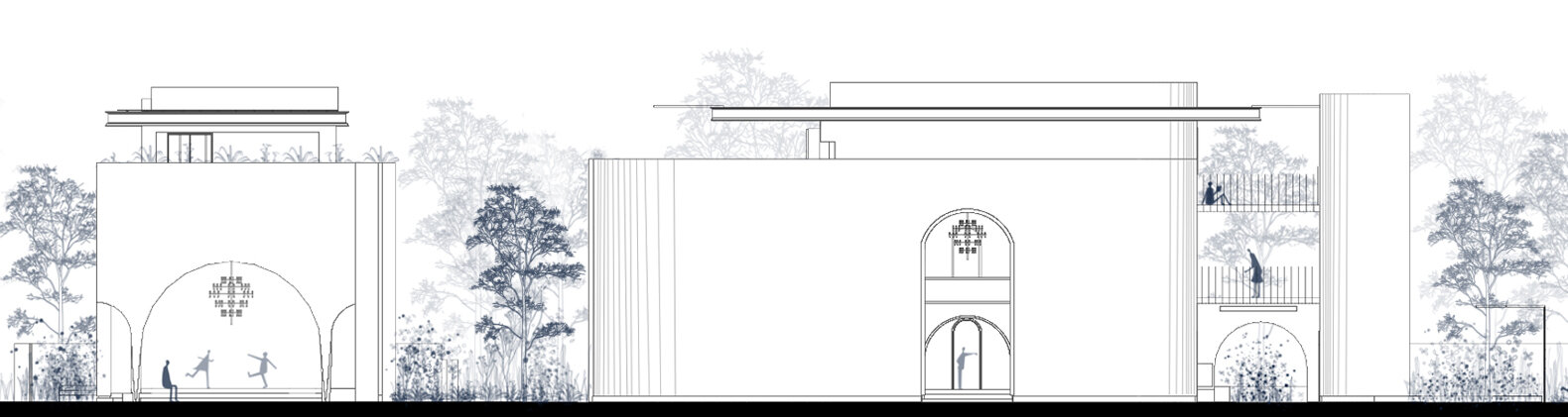 Cel de-al doilea volum care se diferențiază subtil în plastica fațadelor, se caracterizează prin simplitate și verticalitate, integrează latura religioasă și devine un simbol al relației cu divinitatea.