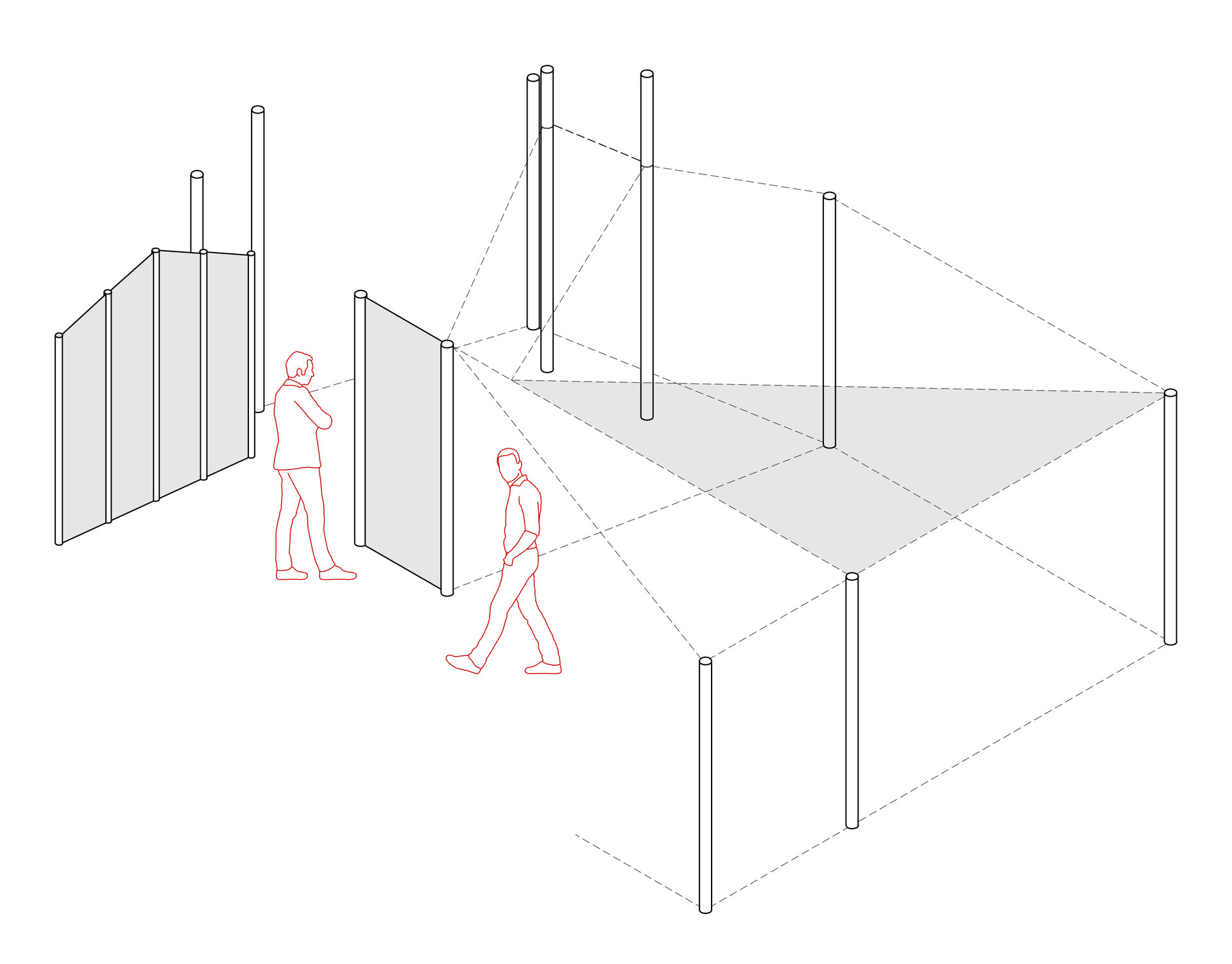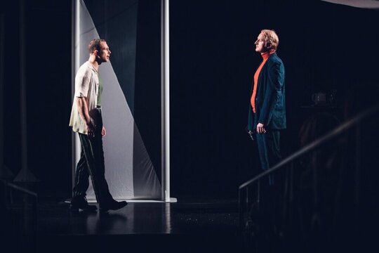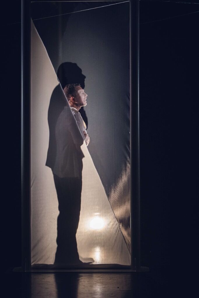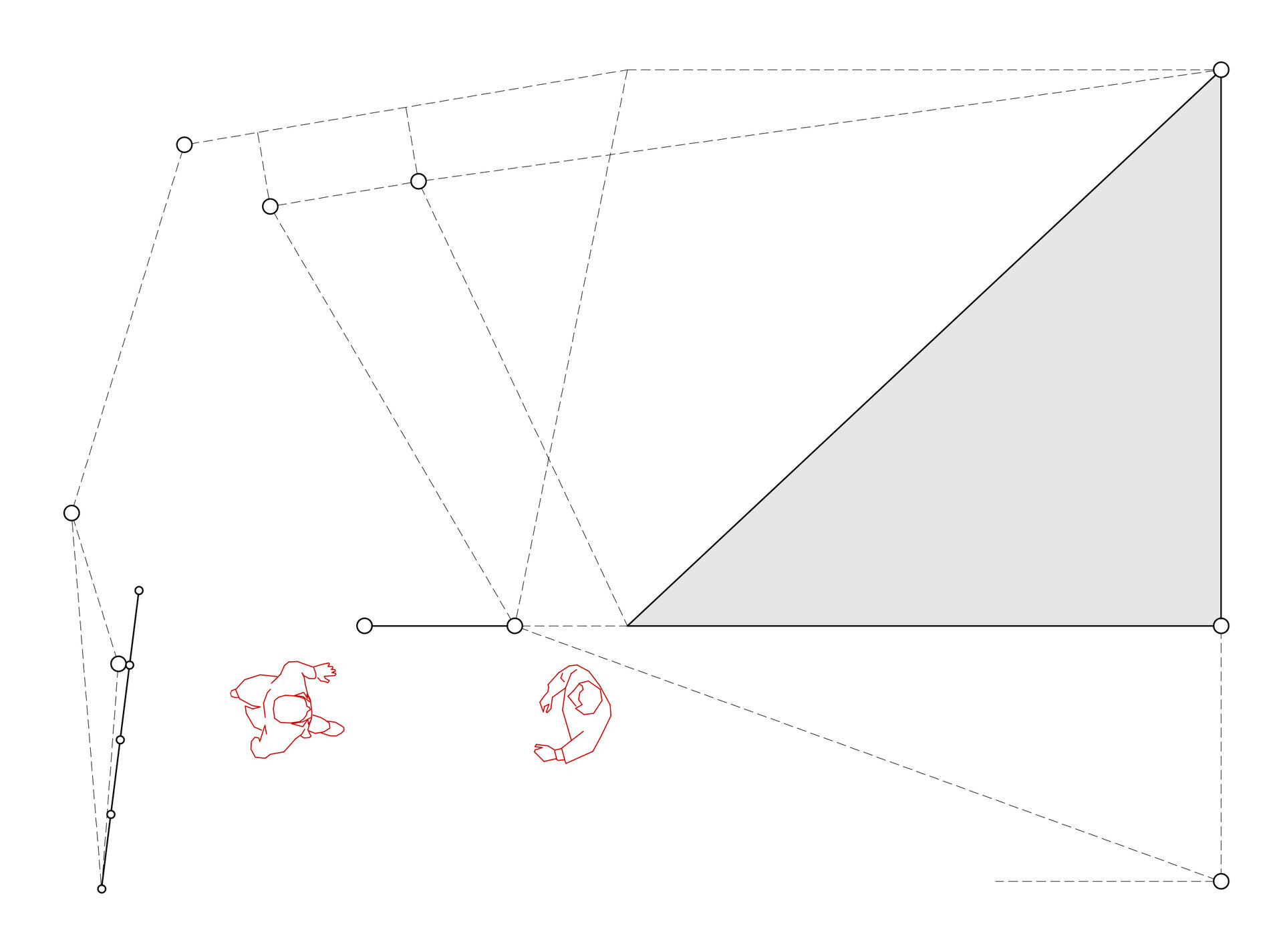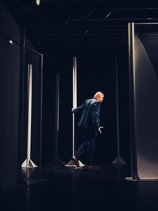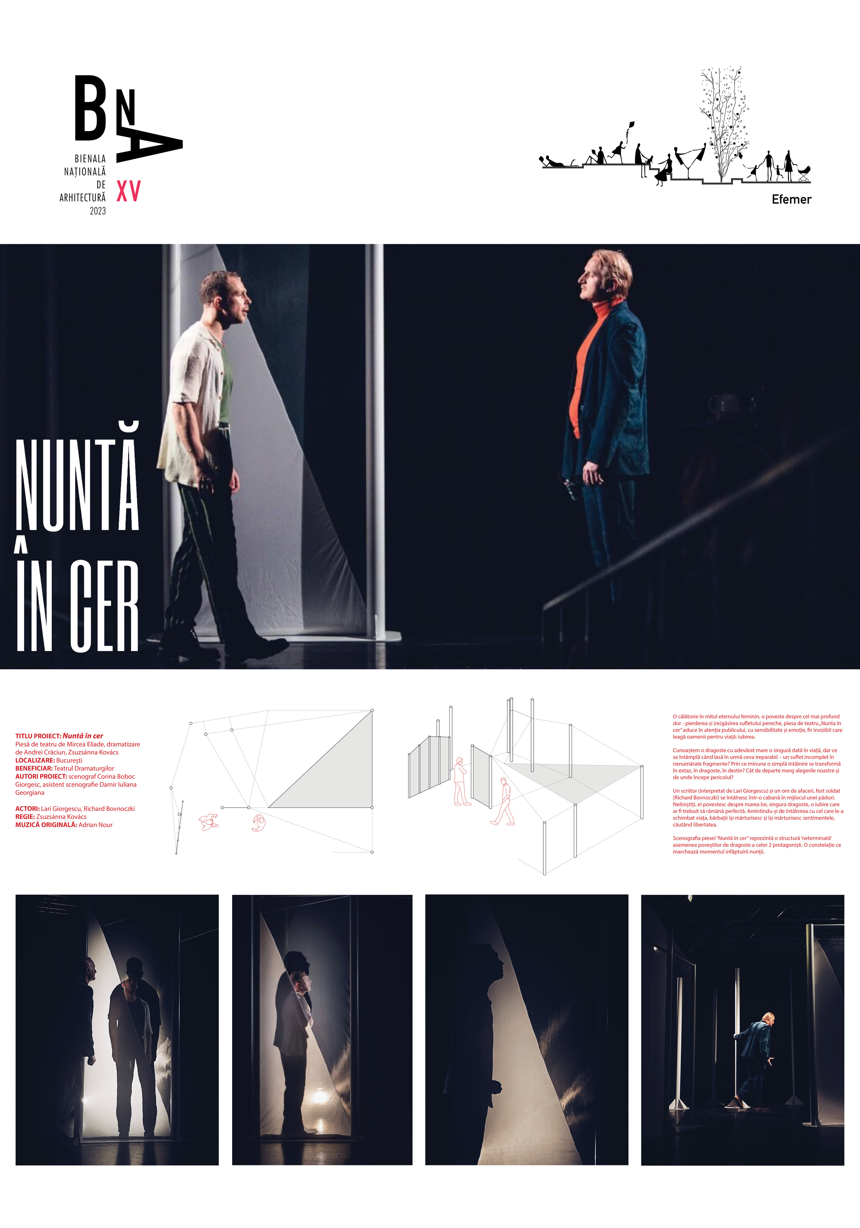 Scenografia piesei „Nuntă în cer” o structură ‘neterminată’ asemenea poveștilor de dragoste a celor 2 protagoniști. O constelație ce marchează momentul înfăptuirii nunții.