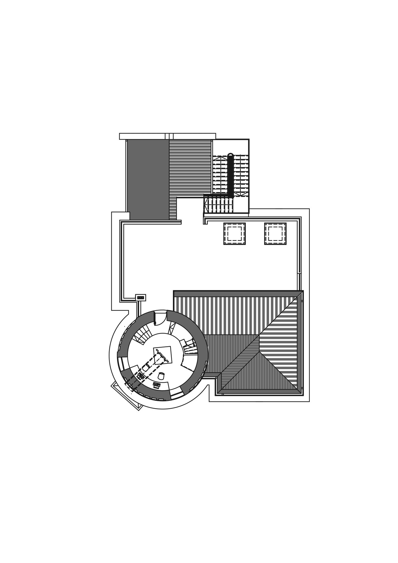 Planimetria originală era compusă din turnul de intrare, cu turelă pentru lunetă, care conţinea şi scara de acces la etajul I și nivelul turelei, precum şi două aripi echivalente ca formă şi dimensiuni, în regim demisol – parter şi etaj, ale căror axe de compoziţie se intersectau la un unghi de 90 de grade chiar în centrul cercului care marca planul turnului. Pe latura de Vest imobilul a fost prevăzut cu o atenansă alipită - casa observatorului - respectiv o mică locuință parter cu acces direct din holul cu scara elicoidală. După finalizarea completă a acestei prime etape de existență a clădirii, din necesitatea extinderii spațiului, s-a decis ca pe zona de Nord – Vest, între cele două aripi inițială, să se construiască o aripă suplimentară, în acelaşi regim de înălţime, respectiv demisol parter şi etaj, cu acces din holul principal de decomandare a tuturor spaţiilor. Tot atunci s-a realizat și o supraetajare a casei observatorului, însă din cauza imposibilității accesului direct din clădirea principală dată fiind diferența de cote, aceasta a fost prevăzută cu o scara exterioară pe fațada de Vest, extrem de abruptă și cu trepte defectuos dimensionate.