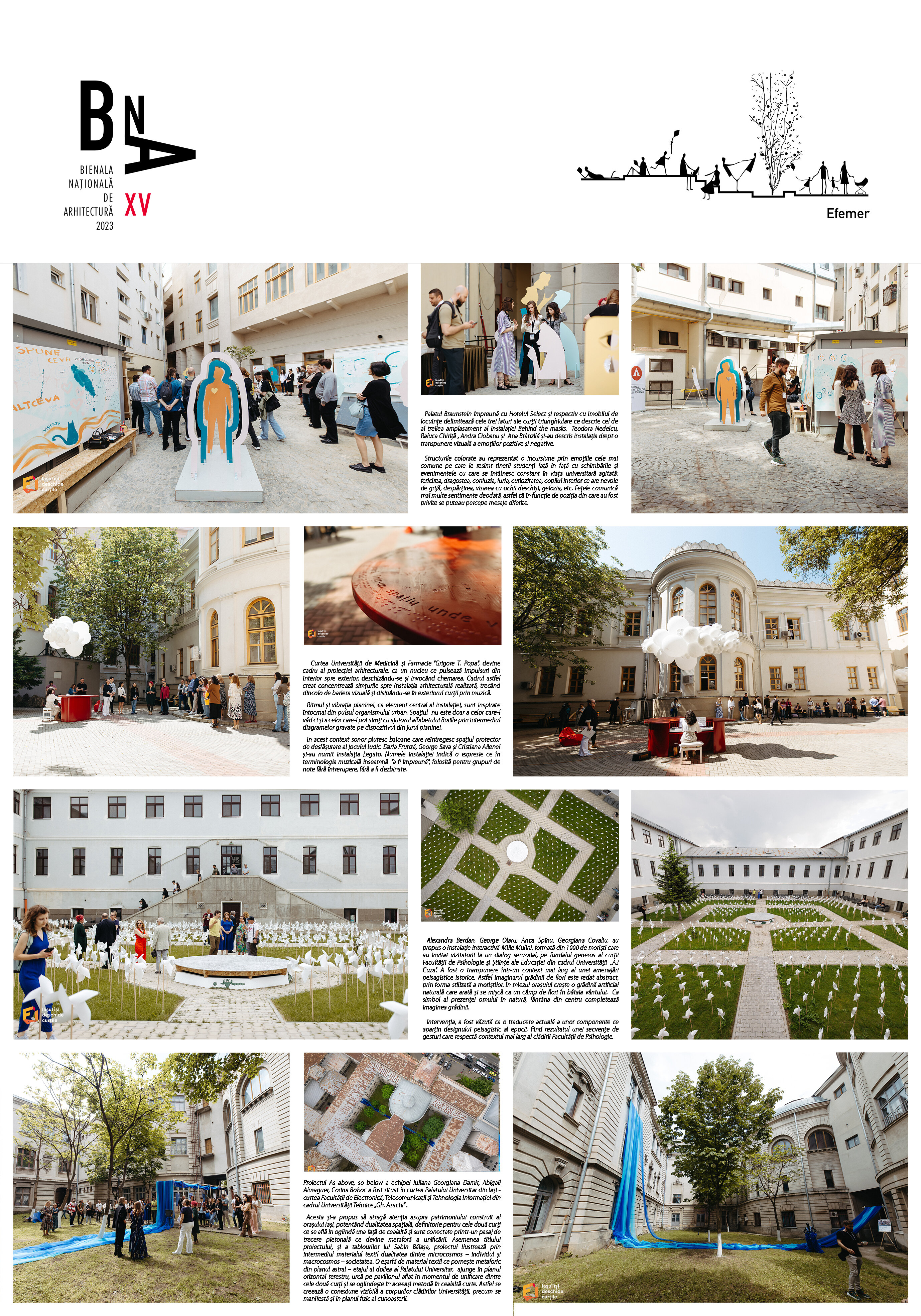 Proiectul As above, so below a echipei mixte Iuliana Georgiana Damir – arhitect, Abigail Almaguer – un designer de interior, Corina Boboc - designer de modă și scenaristă fost situat în curtea Palatului Universitar din Iași curtea Facultatea de Electronică, Telecomunicații și Tehnologia Informației din cadrul Universității Tehnice „Gh. Asachi”, clădire reper arhitectural încă din 1897 și important spațiu al memoriei. Aceasta este edificiul în care s-a înființat prima universitate modernă a României, iar astăzi cuprinde 15 facultăți și numeroase centre de cercetare și este situat într-unul dintre cartierele istorice ale orașului – Copou. De asemenea, adăpostește Sala Pașilor Pierduți care conține 19 picturi murale realizate de pictorul Sabin Bălașa, gândite ca o reprezentare a spiritualității românești. Cele două curți, conturate precum două cortine de teatru, ce delimitează Aula Magna „Carmen Sylva” au devenit cadrul pentru dezvoltarea proiectului As above, so below. Acesta și-a propus să atragă atenția asupra patrimoniului construit al orașului Iași, potentând dualitatea spațială, metaforele conceptuale date de istoria locului și povestea picturilor lui Sabin Bălașa