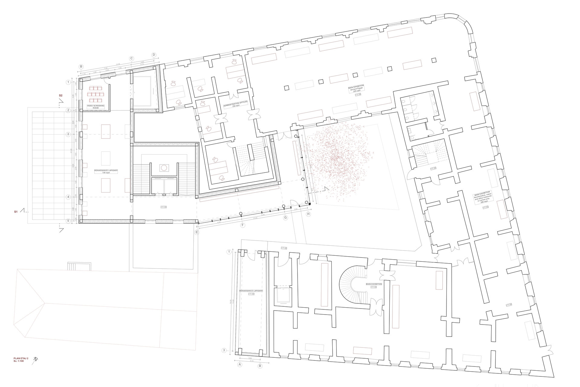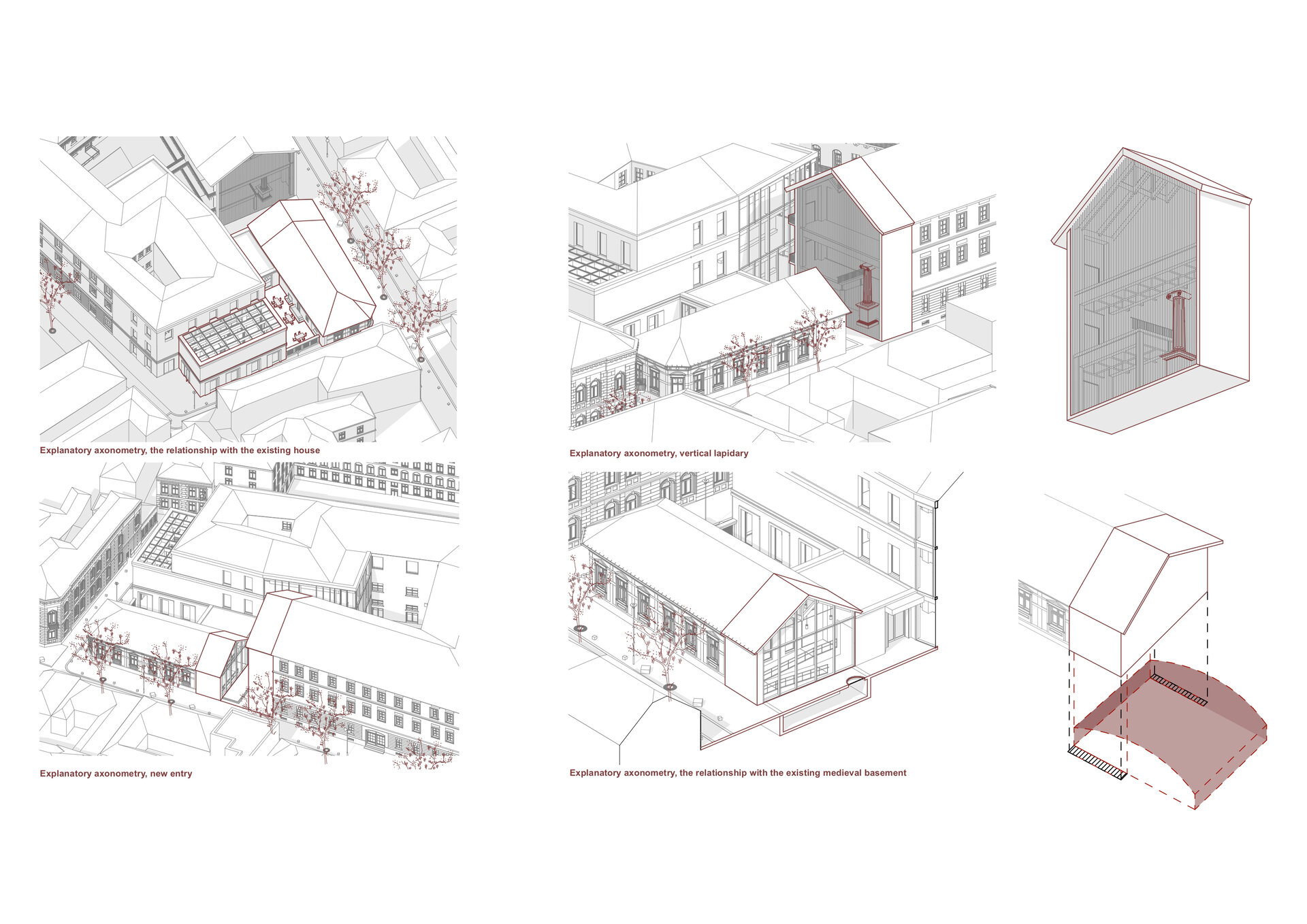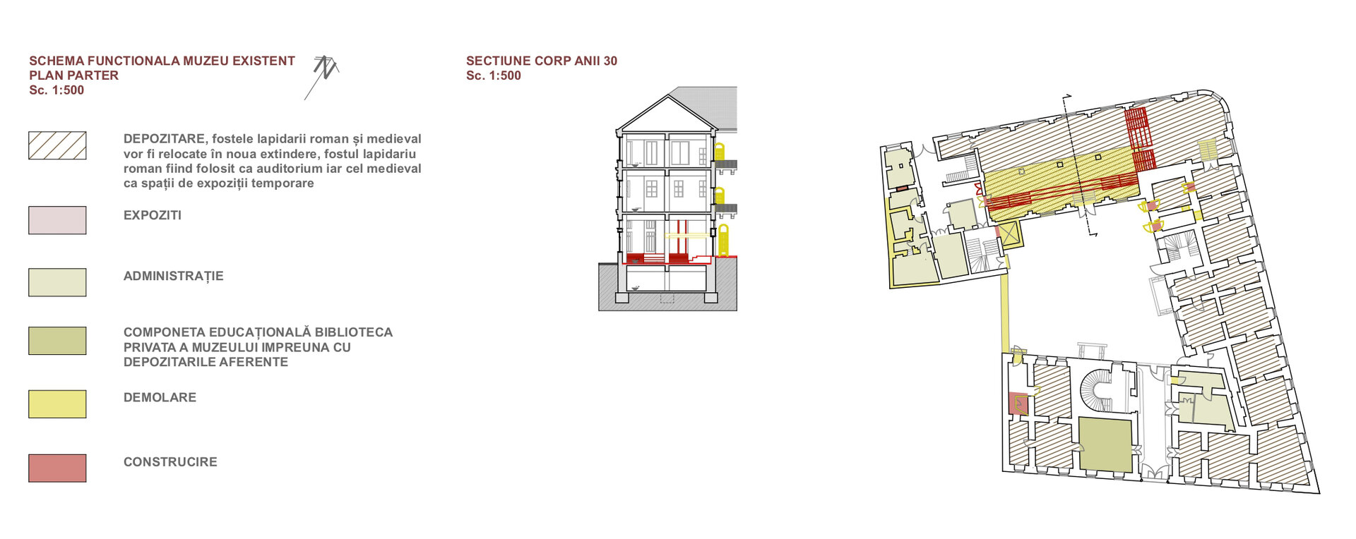 Astfel tema, propune, extinderea muzeului actual cu o nouă secție, cea de lapidariu, care se dorește să includă o parte din vastele colecții ale muzeului, romană, medievală, renascentistă, barocă, toate cele 4 într-o expoziție permanenta care să le arate valoarea si de care publicul din Transilvania și România sa se bucure. Acest nou lapidariu își propune atât o expoziție permanentă cât și o expoziție temporară care prin flexibilitate să poată coabita dar în același timp să poată funcționa și distinct. Astfel odată cu noua secție și clădirea actuală a muzeului să poată să-și reorganizeze schema funcțională pentru a putea dezvolta noi expoziții. Prin extindere dorindu-se totodată si eliberarea spațiilor captive de depozite din acest moment și construirea la nivelul subsolului noului lapidariu de secții de conservare și restaurare pentru ca muzeul să poată întreprinde propriile cercetări și restaurări la fața locului.