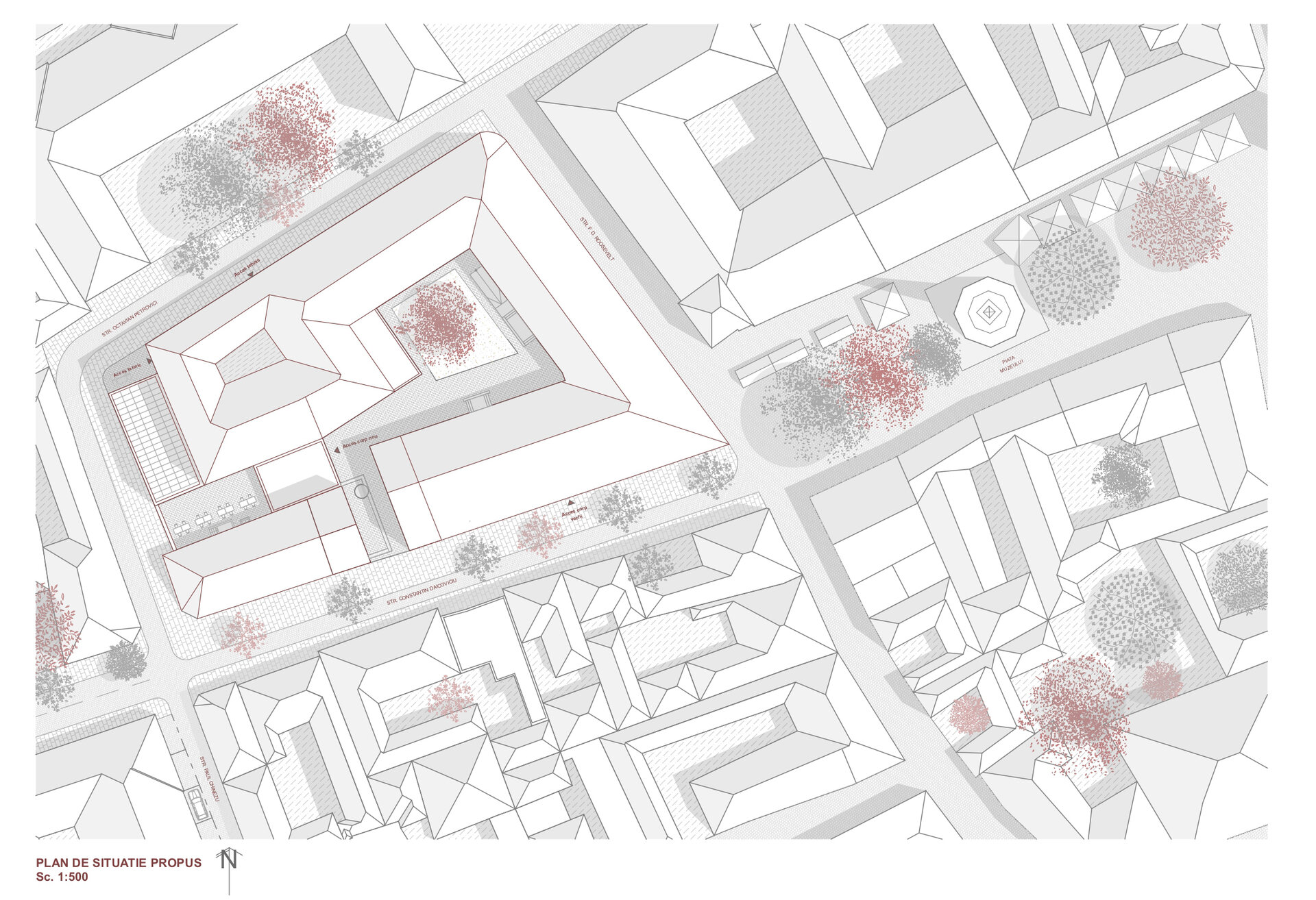 Particularul programului propus este acela că își propune să reutilizeze ceea ce se găsește pe amplasamentul propus, în primul caz având o casă de secol XIX cu specific burghez care se dorește a fi reabilitată și de a fi integrată în circuitul muzeal ca fiind cafenea si magazin de suveniruri, două funcțiuni de care
