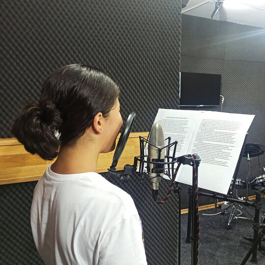 Atelierul de interpretare, a pregătit înregistrările în studio, prin aprofundarea textelor prin exerciții de citire, frazare, dicție, intonație dar și alte exerciții libere specifice teatrului de improvizație. Un audioghid expresiv depinde de narator, implicit de emoția acestuia și relaționarea cu textul transmis. La finalul Școlii de vară, adolescenții acumulaseră experiențe, cunoștințe și emoție pe parcursul atelierelor și întâlnirilor, când au venit în fața microfonului și au devenit naratori, lucru care credem noi s-a simțit în citirea lor.