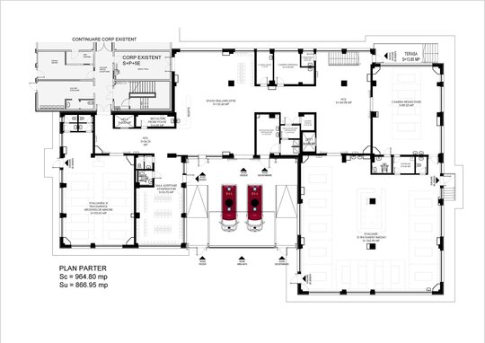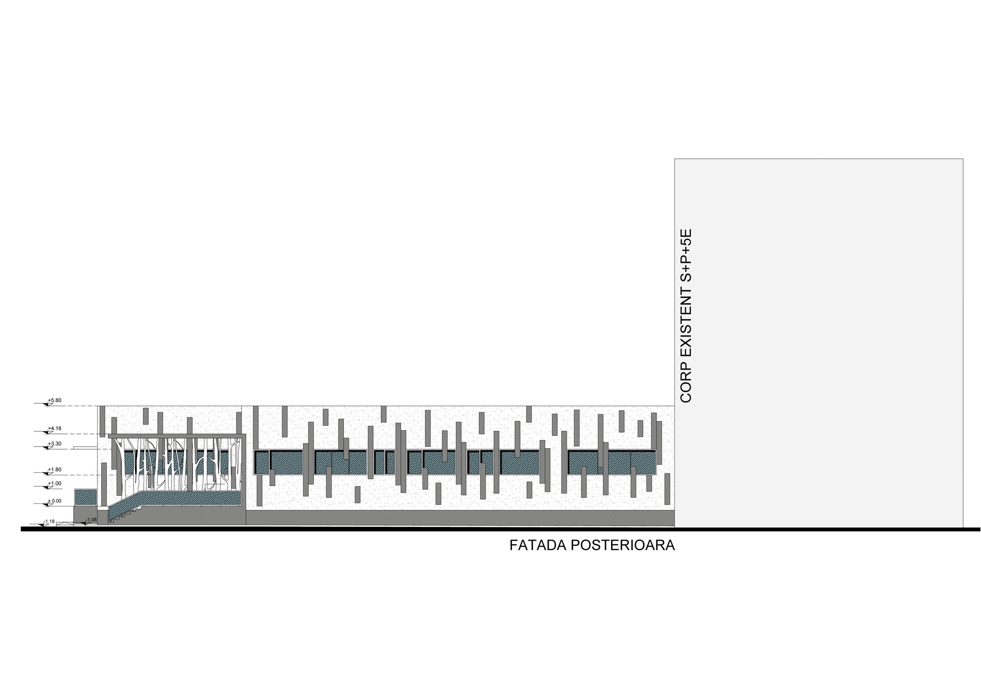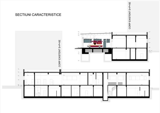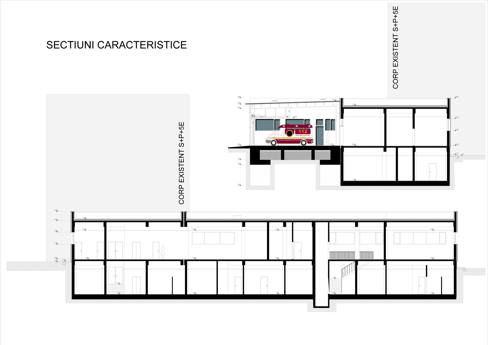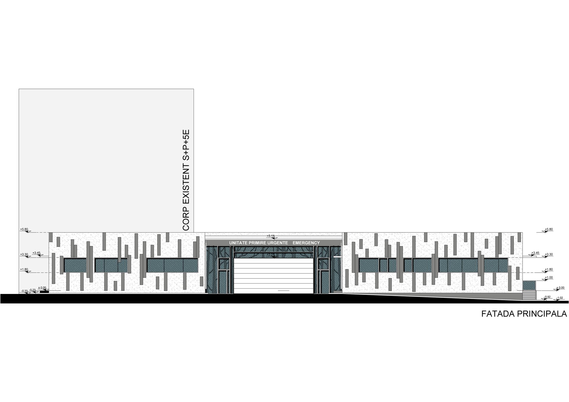 Noul corp de cladire se va construi peste vechiul corp existent C2 care a fost demolat - ce a adapostit spatii pentru cantina si spalatorie, ce va fi demolat – si, va adaposti functiunile pentru Unitatea de Primire Urgente, si va fi structurat pe doua nivele: subsol si parter.
