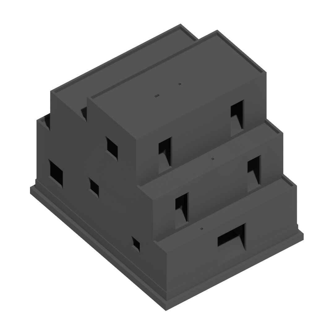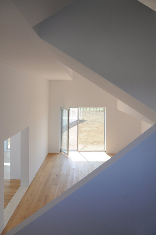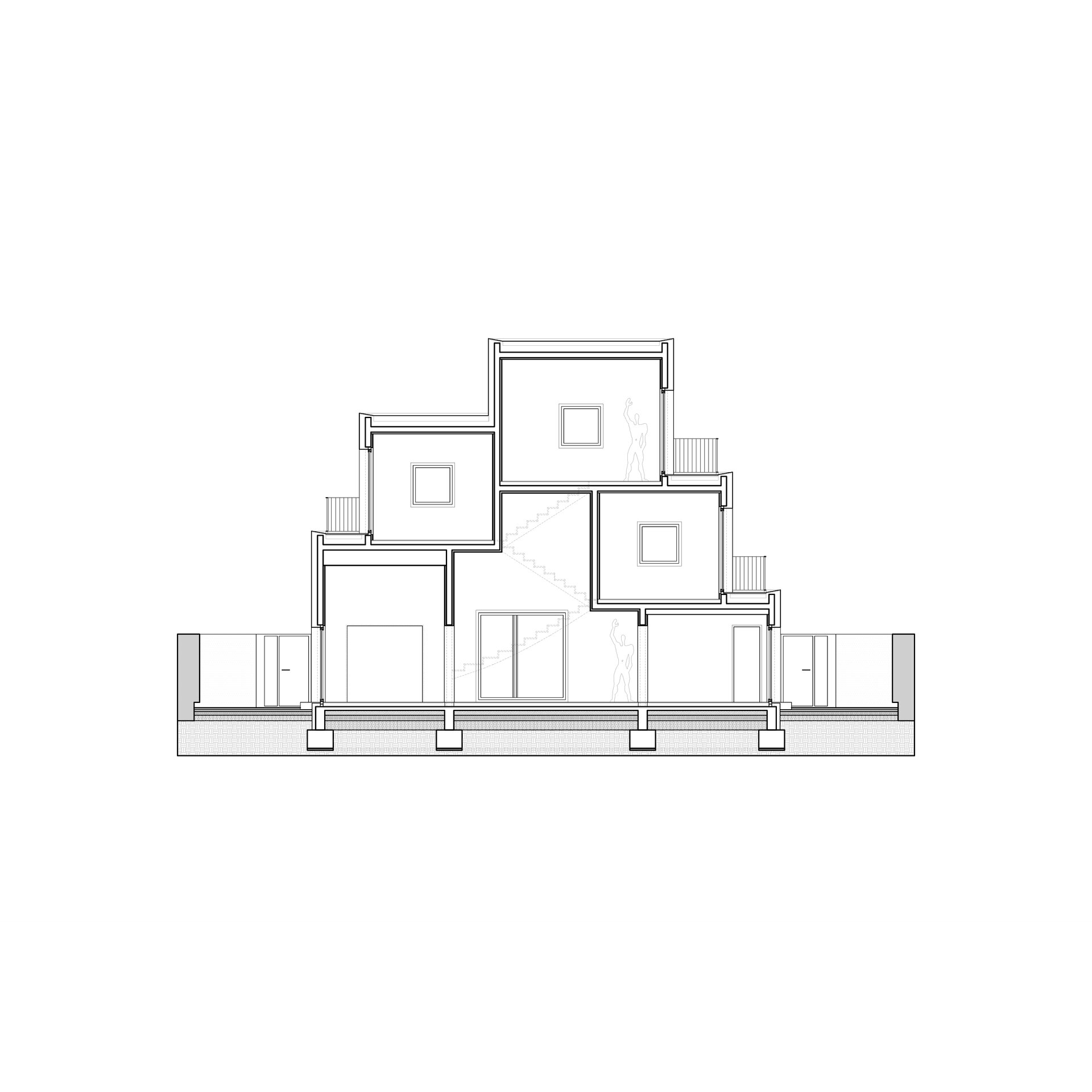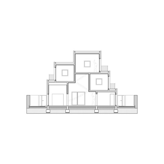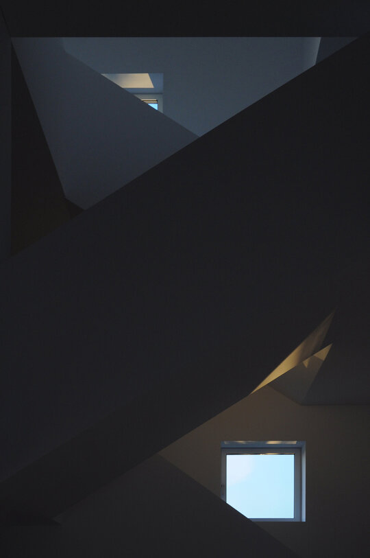 Această „simplă restrângere a locuinței” avea să dicteze o anumită ordine a construcției, gruparea tuturor încăperilor pe o porțiune cât mai restrânsă din suprafața parcelei declanșând o operațiune de stivuire/zidire a lor pe verticală. Suprapunerea dormitoarelor deasupra camerelor amplasate la cota grădinii și elevațiile-zigurat rezultate către Nord și Sud, au fost, astfel, determinate într-un mod cât se poate de direct de circumscrierea casei în silueta triunghiulară (virtuală) condiționată matematic de retragerea „h/2” față de margini. În consecință, livingul devine o cavitate interioară rezultată din limitările exterioare ale casei, iar scara un element-contrafort de sprijinire pentru umerii săi inegali.