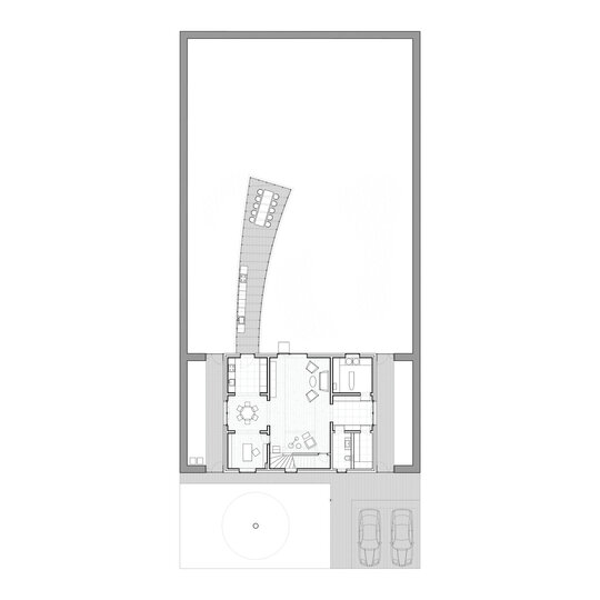 În aceste condiții, locuirea a putut fi redusă la două piese esențiale, camera/camerele și grădina, iar proiectul s-a bazat pe simpla restrângere a locuinței, care să elibereze cât de mult terenul, lăsând loc pentru ceea ce, la momentul concursului, am numit „Grădina cu camere”.