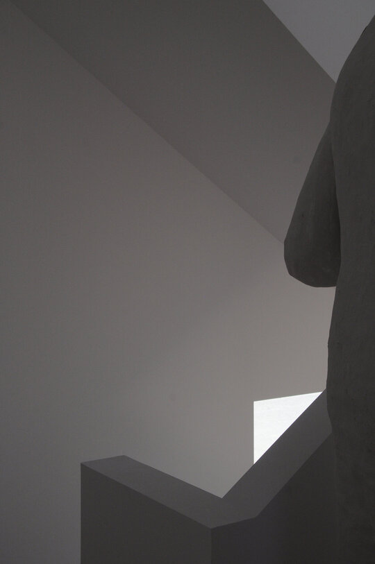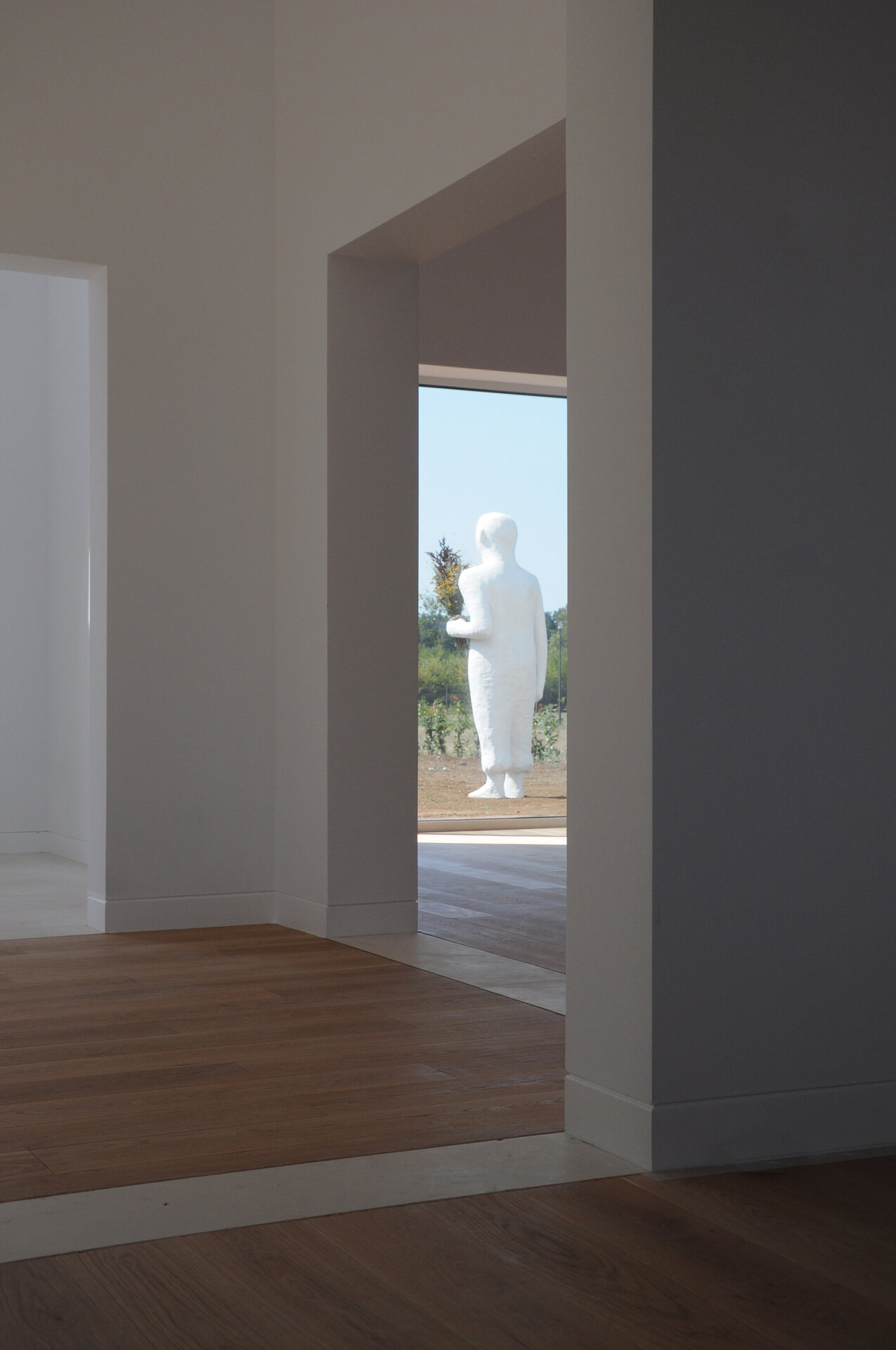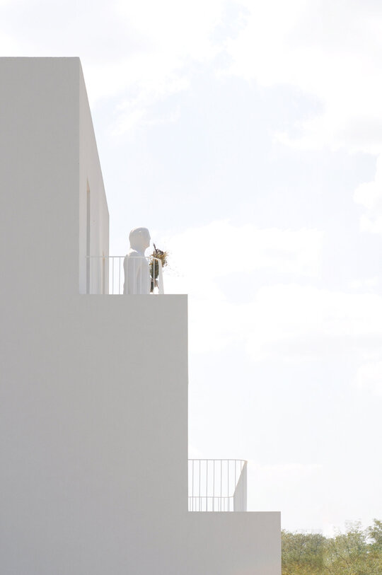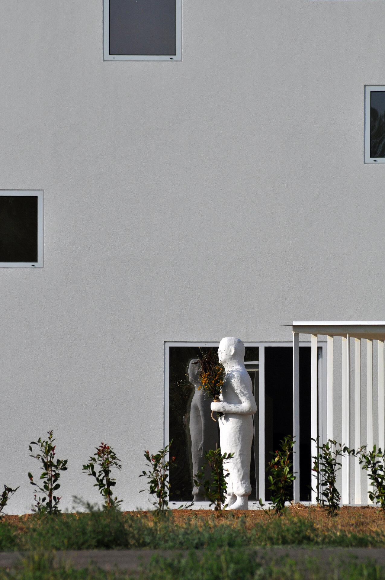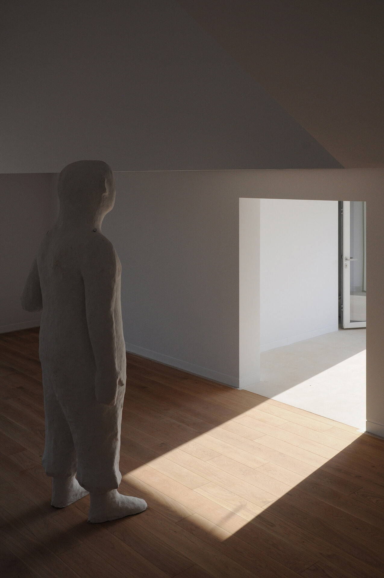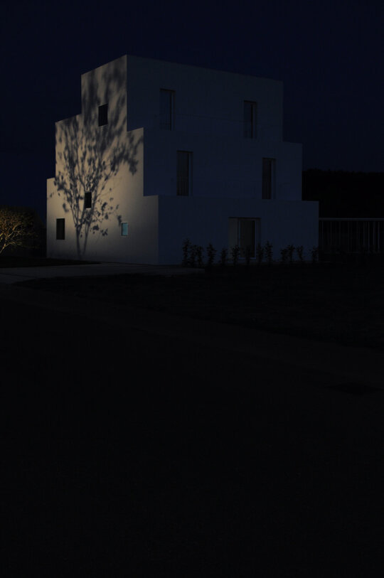 Casa, așa cum o vedem acum, nu pare sa aibă ceea ce numim “funcțiune”, fiind mai degrabă o alcătuire de spații fără dedicație, iar o astfel de punere în lumină, în sensul depersonalizării impuse de absența celor de mai sus, devine oportunitatea de a o descrie fără a avea un instrument de măsură care să îi contorizeze proporțiile. Din acest punct de vedere, fotografiile prezentate încearcă să expună o posibilă idealizare în raport cu scara obiectului, construcția fiind „locuită”/„însoțită” de un personaj neobișnuit, operă a sculptorului Virgil Scripcariu. Silueta îmbrăcată în ipsos se suprapune peste albul obsesiv al casei, amestecându-se cu imaginea și, în definitiv, cu situația ei abstractă.
