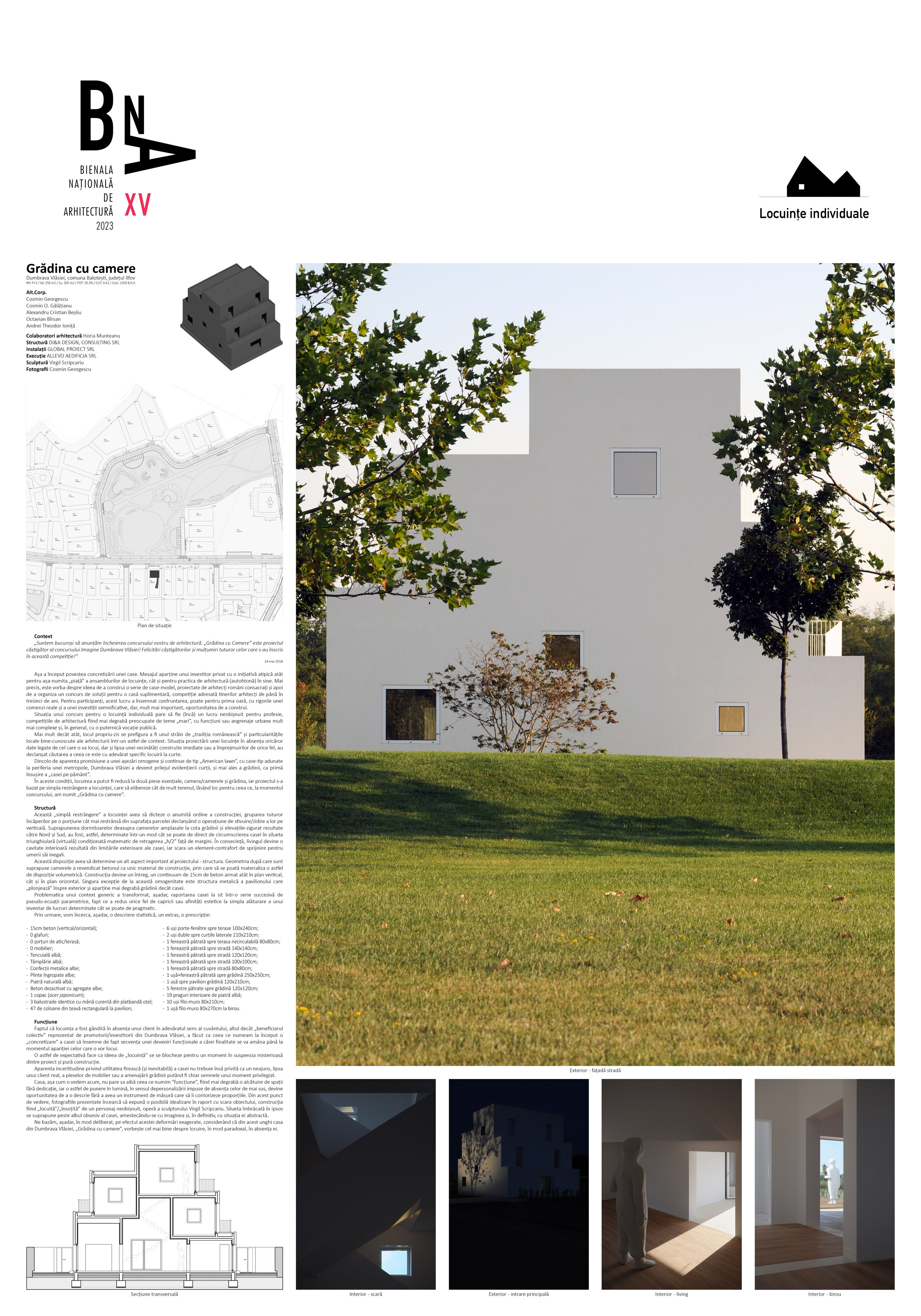 Situația unui concurs pentru o locuință individuală pare să fie (încă) un lucru neobișnuit pentru profesie, competițiile de arhitectură fiind mai degrabă preocupate de teme „mari”, cu funcțiuni sau angrenaje urbane mult mai complexe și, în general, cu o puternică vocație publică.