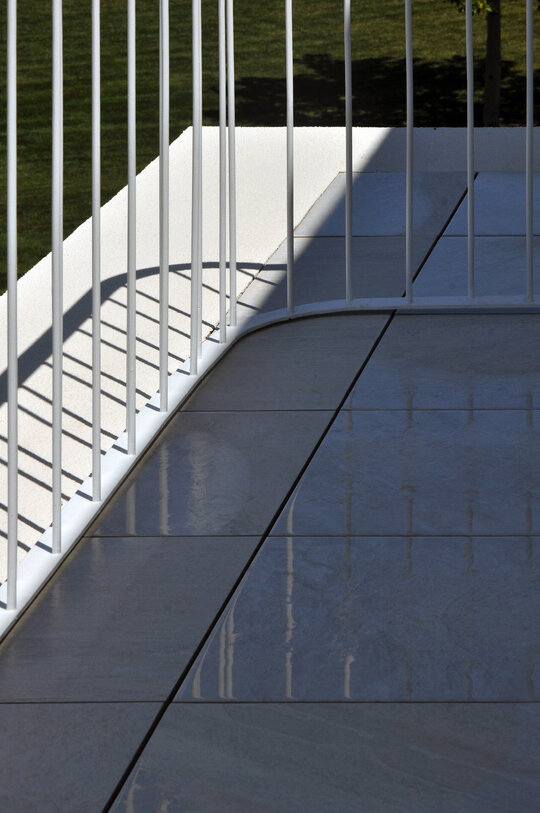 Această dispoziție avea să determine un alt aspect important al proiectului – structura. Geometria după care sunt suprapuse camerele a revendicat betonul ca unic material de construcție, prin care să se poată materializa o astfel de dispoziție volumetrică. Construcția devine un întreg, un continuum de 15cm de beton armat atât în plan vertical, cât și în plan orizontal. Singura excepție de la această omogenitate este structura metalică a pavilionului care „plonjează” înspre exterior și aparține mai degrabă grădinii decât casei.