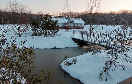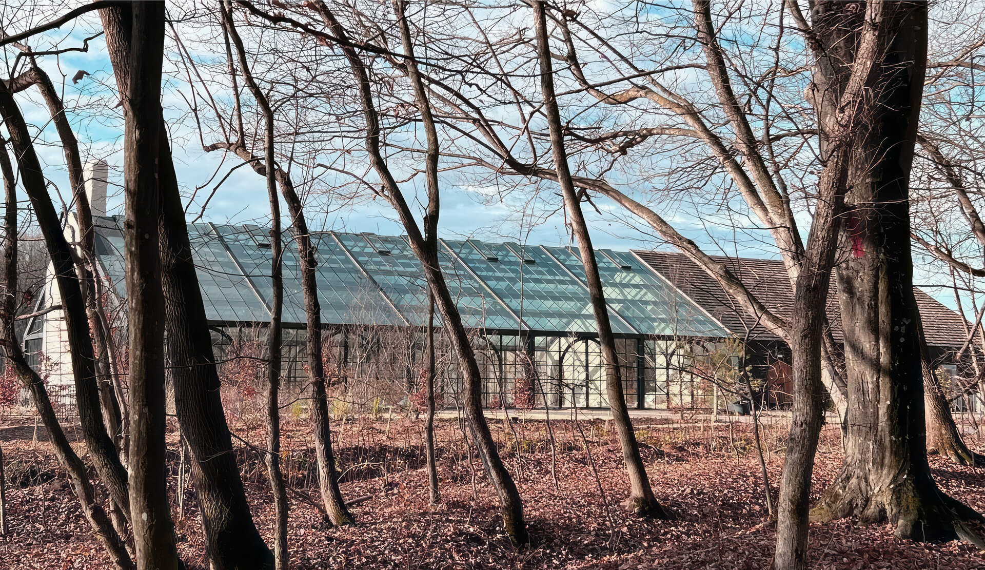 Locul, un fost lan de porumb traversat de căprioare și înconjurat de pădurea Snagov, avea să dicteze amplasarea pavilioanelor în cotloanele create de pădure, astfel încât, de pe drum, aproape să nu se vadă: Orangeria (sera principală), un corp minimal de cazare și o seră secundară.