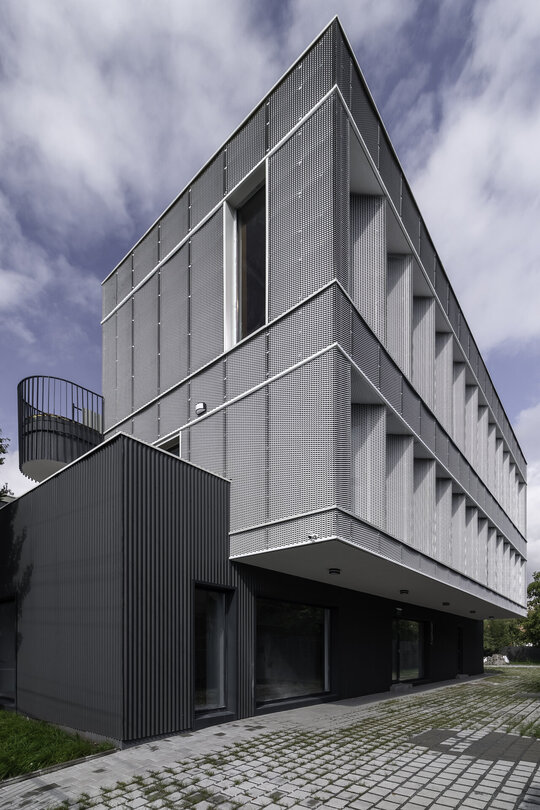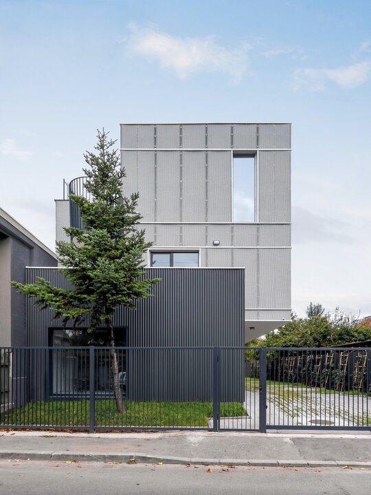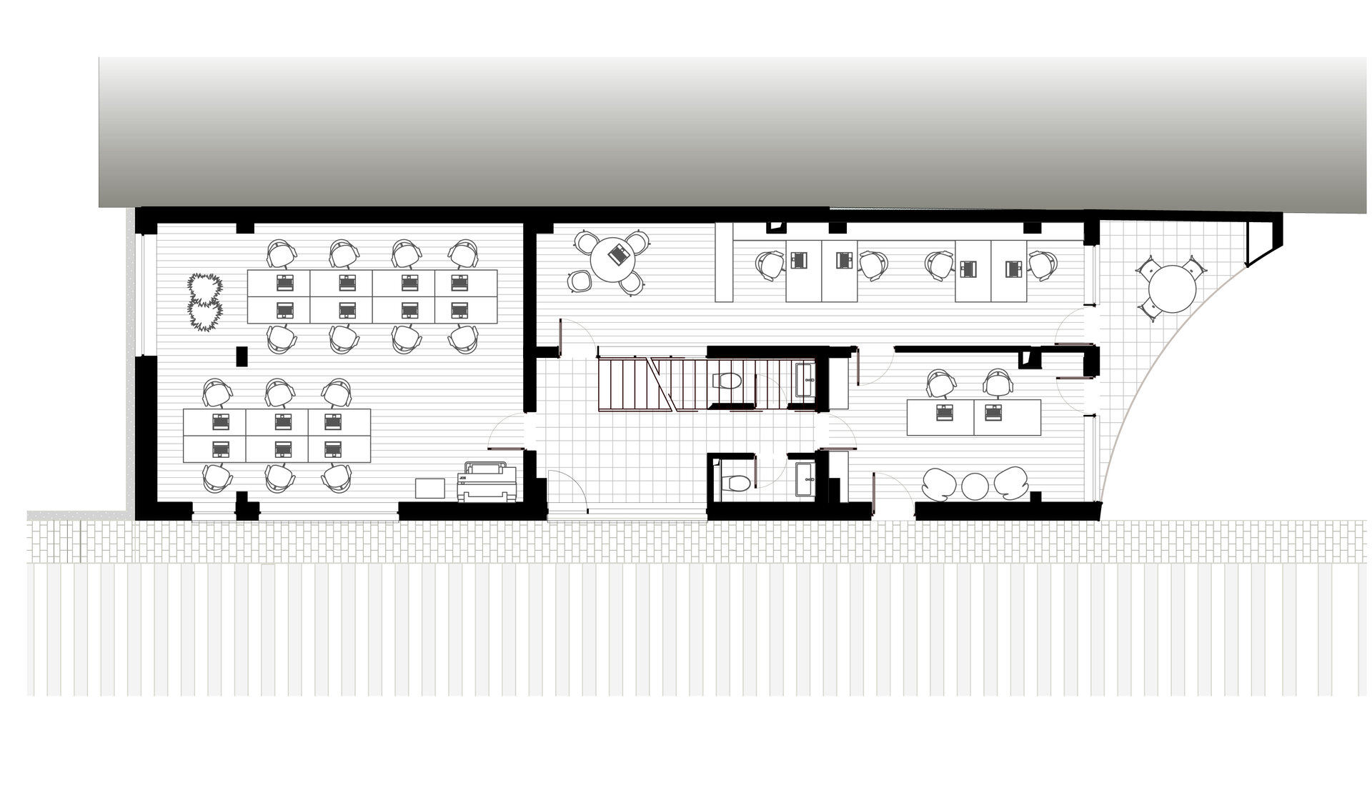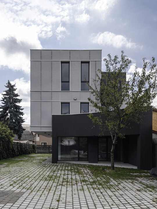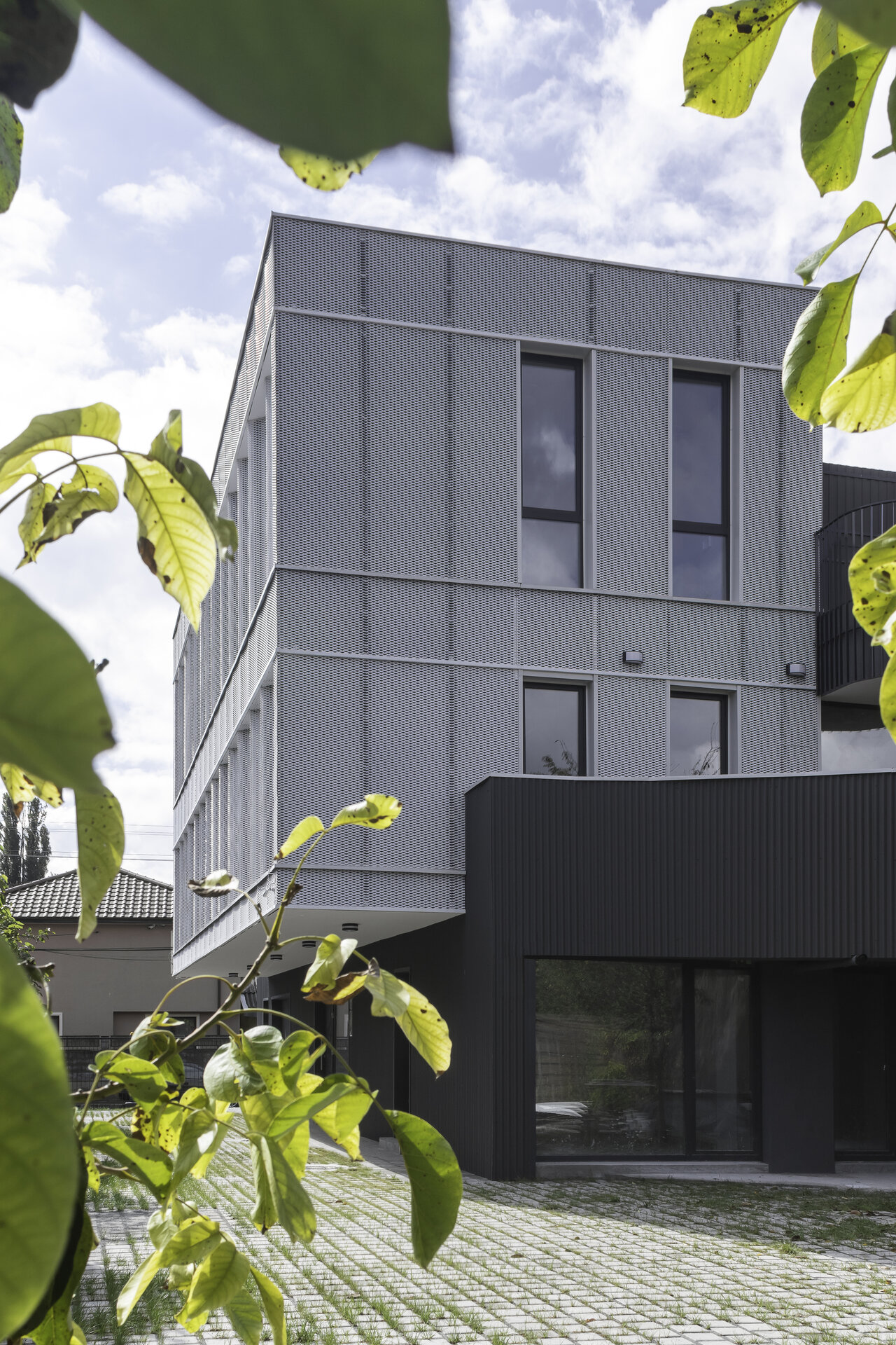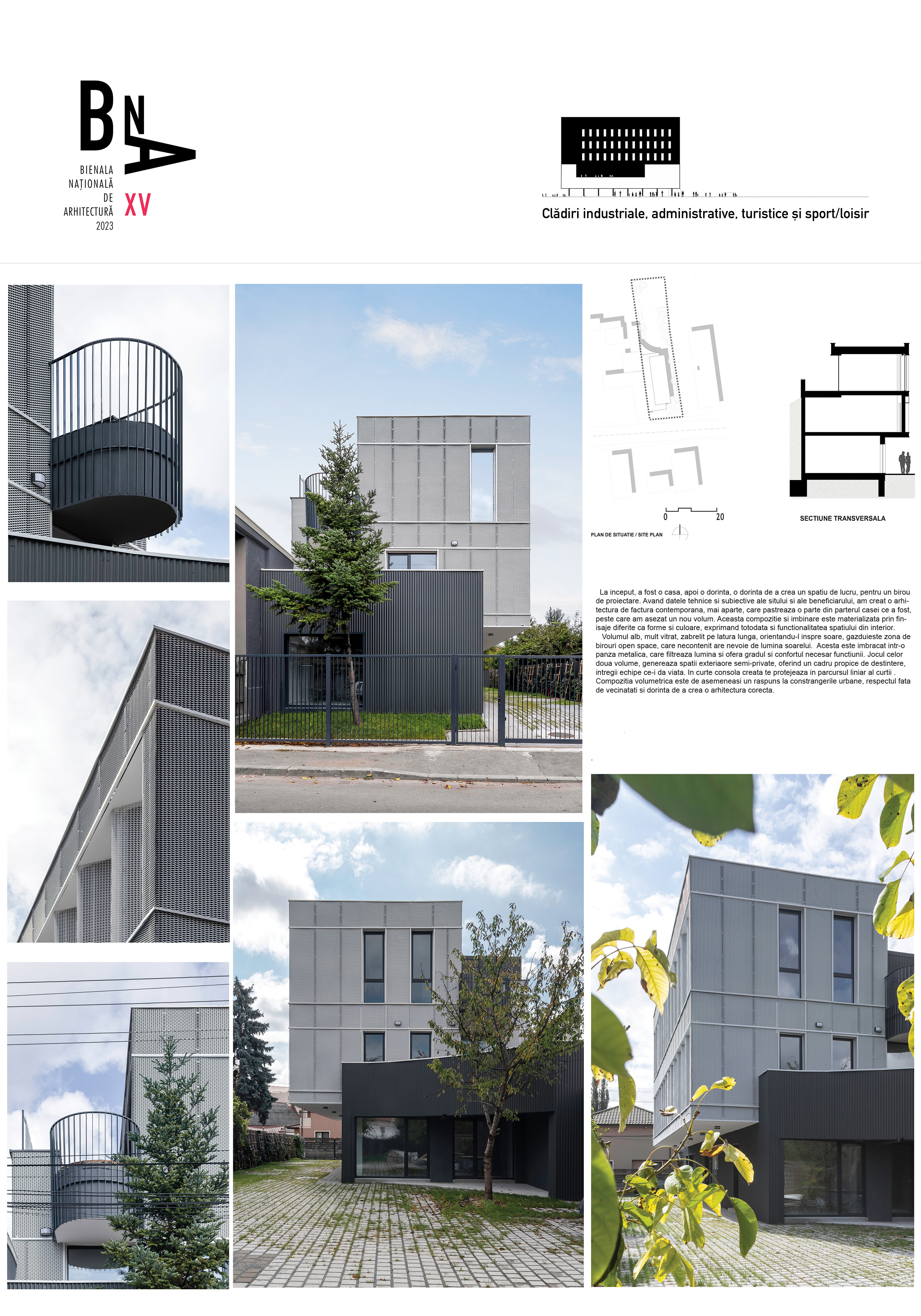 La inceput, a fost o casa, apoi o dorinta, o dorinta de a crea un spatiu de lucru, pentru un birou de proiectare. Avand datele tehnice si subiective ale sitului si ale beneficiarului, am creat o arhitectura de factura contemporana, mai aparte, care pastreaza o parte din parterul casei ce a fost, peste care am asezat un nou volum. Aceasta compozitie si imbinare este materializata prin finisaje diferite ca forme si culoare, exprimand totodata si functionalitatea spatiului din interior. Volumul alb, mult vitrat, zabrelit pe latura lunga, orientandu-l inspre soare, gazduieste zona de birouri open space, care necontenit are nevoie de lumina soarelui. Acesta este imbracat intr-o panza metalica, care filtreaza lumina si ofera gradul si confortul necesar functiunii. Jocul celor doua volume, genereaza spatii exteriaore semi-private, oferind un cadru propice de destintere, intregii echipe ce-i da viata. In curte consola creata te protejeaza in parcursul liniar al curtii . Compozitia volumetrica este de asemeneasi un raspuns la constrangerile urbane, respectul fata de vecinatati si dorinta de a crea o arhitectura corecta.