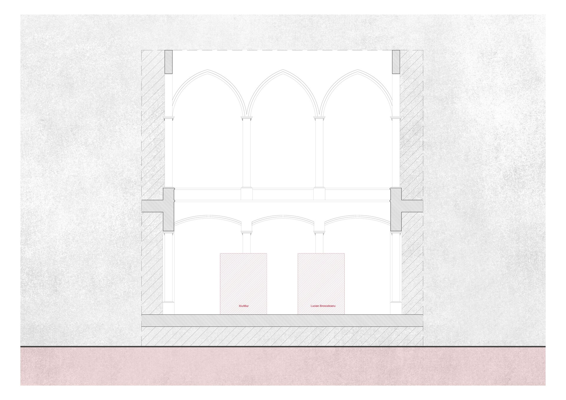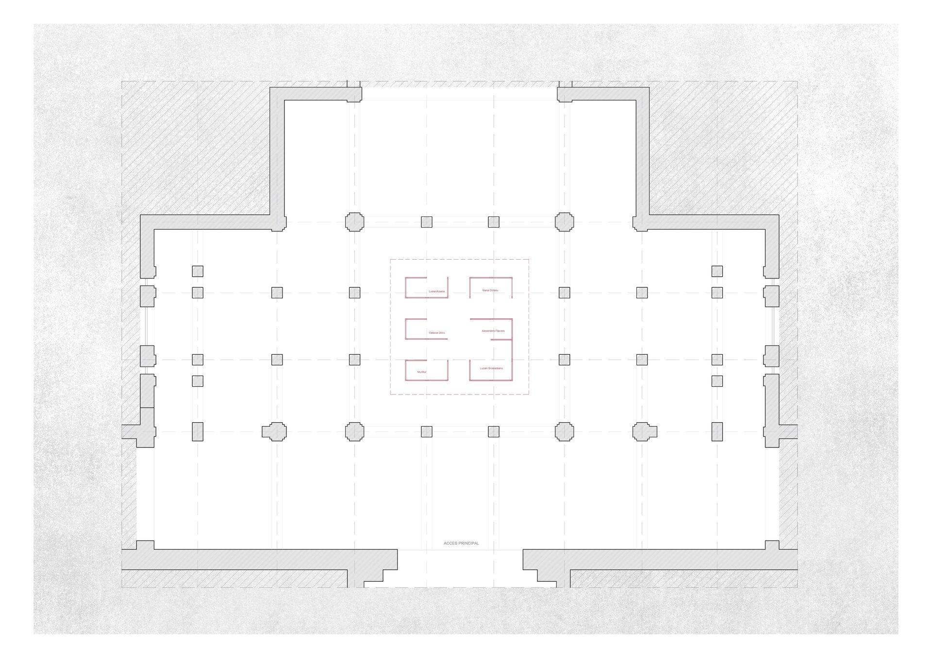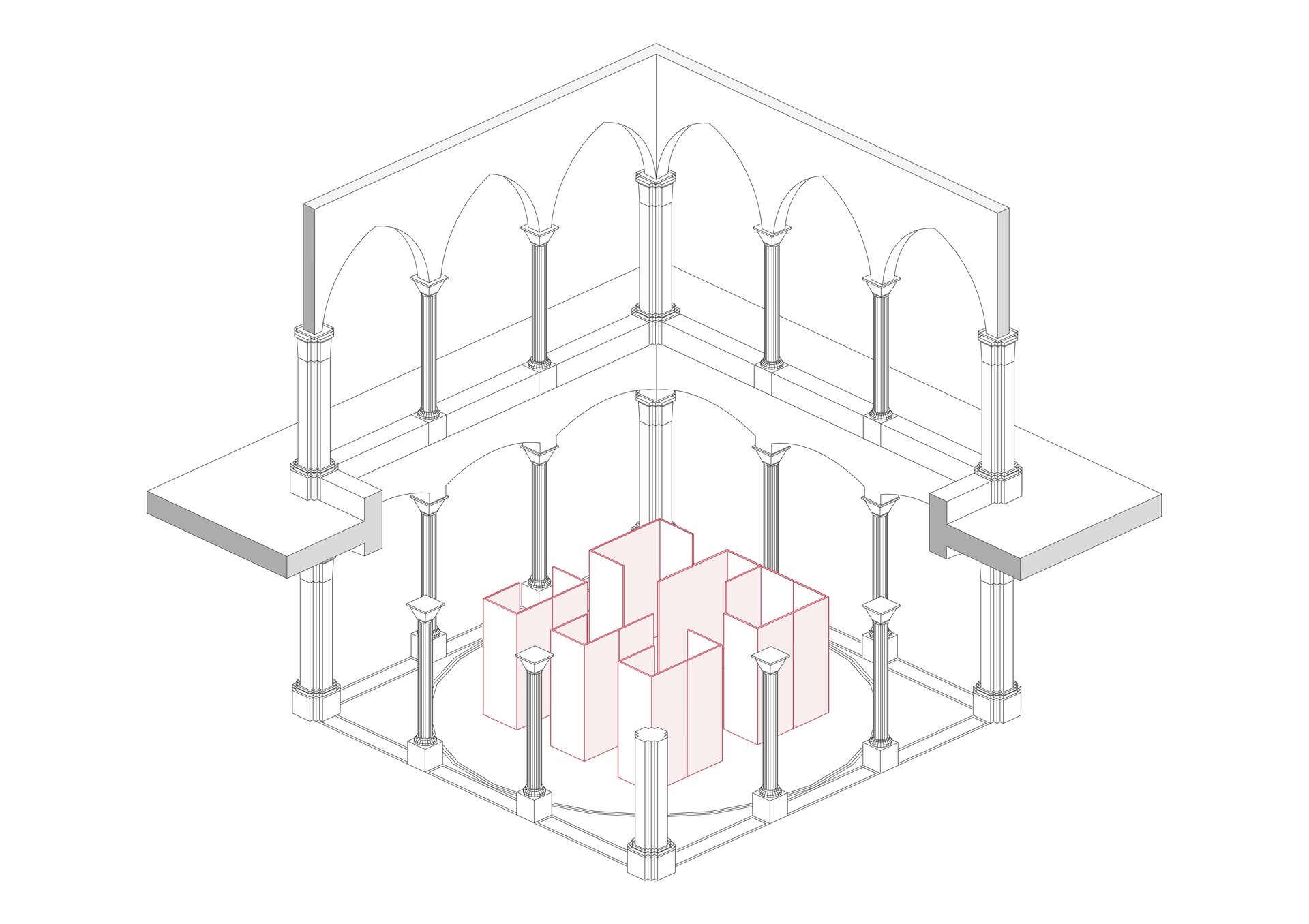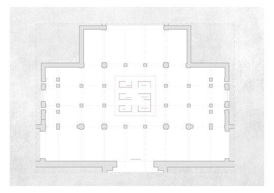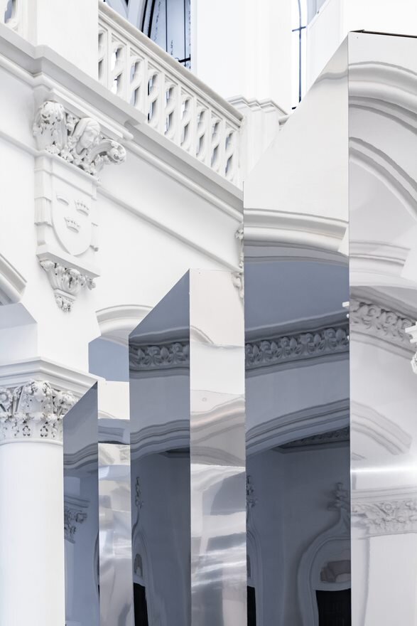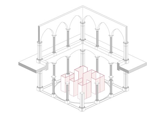 Clădirea în interiorul căreia a fost amplasat pavilionul are o puternică încărcătură istorică. Palatul Culturii din Iași a fost construit în 1925 în stil neogotic, infuzat cu ornamentație orientală și elemente heraldice. Ca un ecou direct al împrejurărilor istorice, pavilionul este format dintr-un labirint cu planimetrie perfect pătrată ce devine în manieră intenționată un obiect înșelător, care rezonează cu contextul în care este amplasat. Deopotrivă vizibil și invizibil, solid și eteric, pavilionul reflectă interiorul majestic al holului Palatului și încapsulează în cele șase capsule o reprezentare fizică și abstractă a spiritului creativ al fiecăruia din cei șase protagoniști. Plăci metalice cu suprafețe oglindite îmbracă structura subțire de lemn care formează labirintul, devenind o ciudată cutie magică deschisă. Simplitatea sa radicală contrastează cu împrejurimile, transformând pavilionul într-un vid cu prezență imaterială.