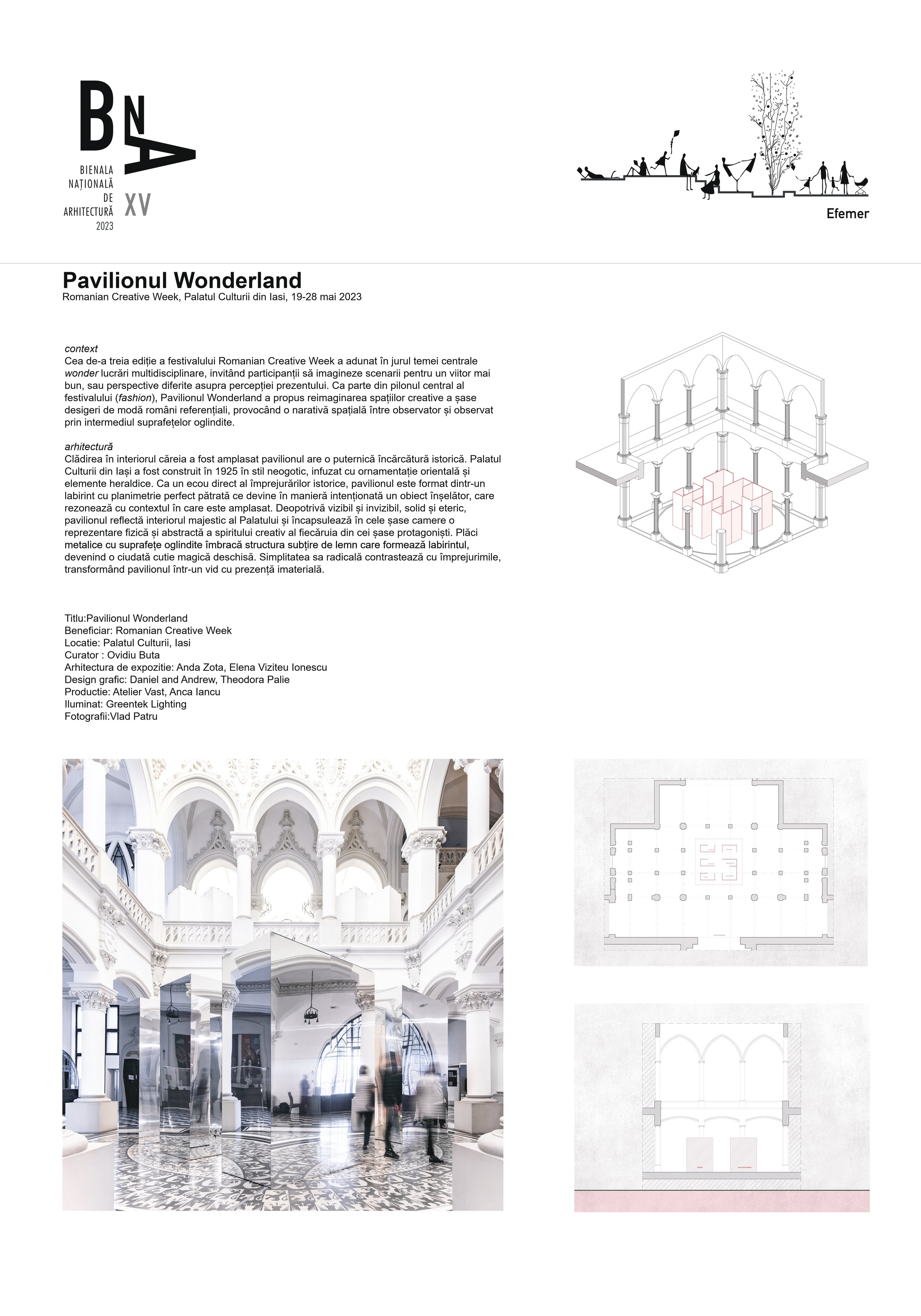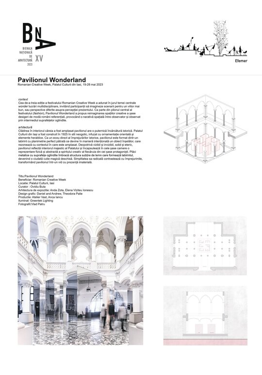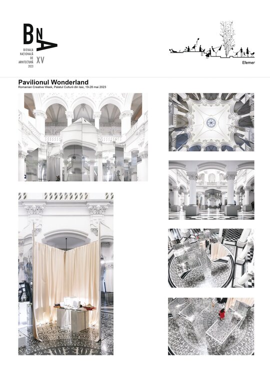Cea de-a treia ediție a festivalului Romanian Creative Week a adunat în jurul temei centrale wonder lucrări multidisciplinare, invitând participanții să imagineze scenarii pentru un viitor mai bun, sau perspective diferite asupra percepției prezentului. Ca parte din pilonul central al festivalului (fashion), Pavilionul Wonderland a propus reimaginarea spațiilor creative a șase desigeri de modă români referențiali, provocând o narativă spațială între observator și observat prin intermediul suprafețelor oglindite.