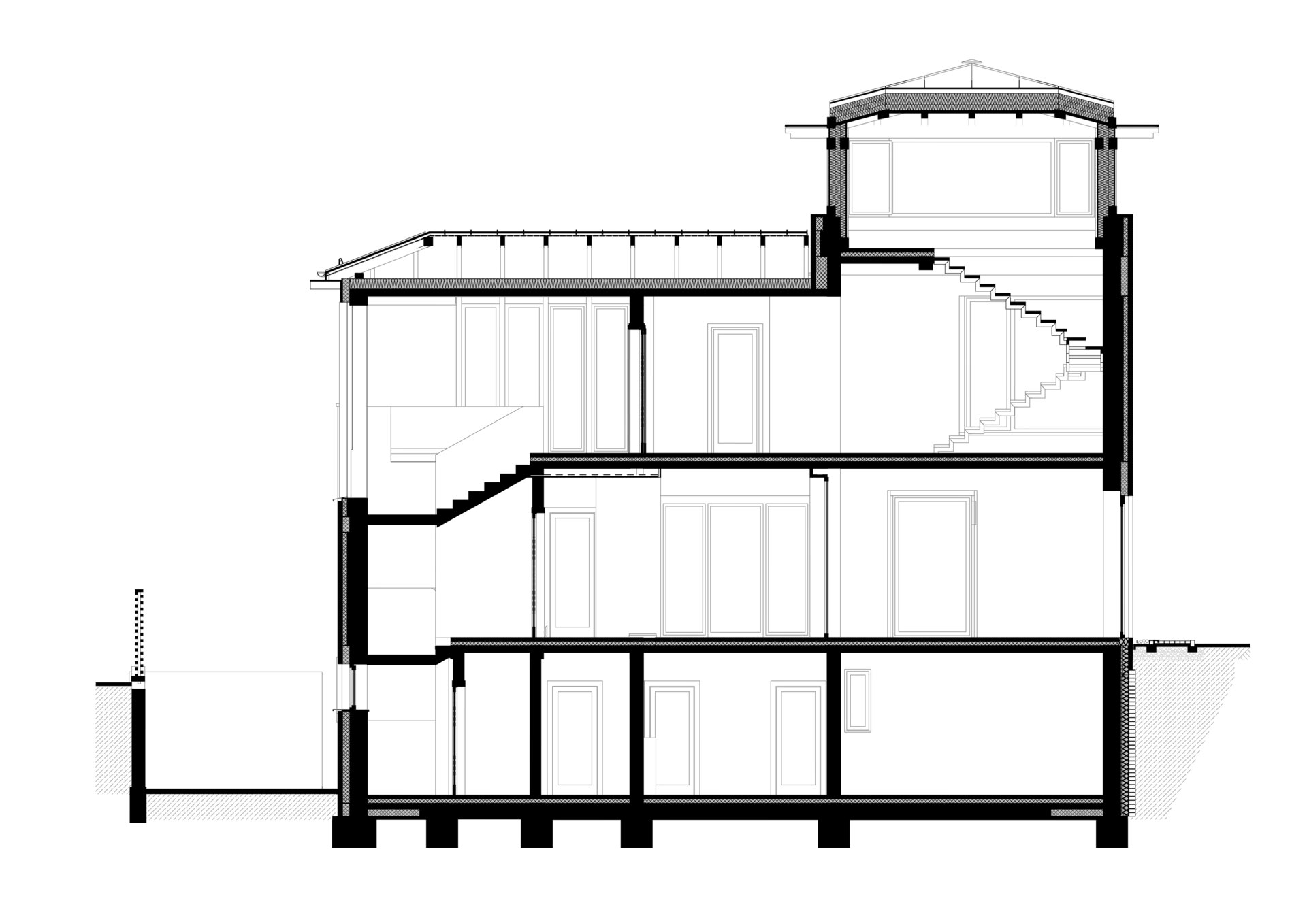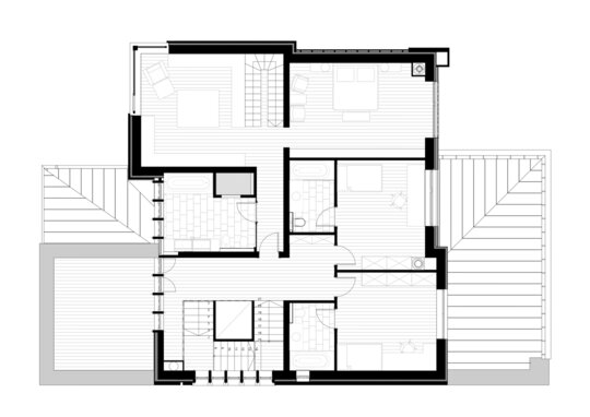 Proiectul Casei H a fost pus în operă pentru o familie cu patru membri. Casa se structurează pe patru niveluri: subsol, parter, etaj și mansardă. În timp ce la subsol sunt adăpostite ca funcțiuni doar garajul și spațiile tehnice, planul parter - ocupat predominant de funcțiunile de zi - este impărțit în jurul unul hol generos de acces, cu dormitorul oaspeților și zona de luat masa orientate spre stradă. Bucătăria și camera de zi sunt poziționate spre curte în legătură directă cu terasa acoperită. Terasa acoperită din spatele casei poate fi folosită atât ca loc de luat masa cât și ca zonă de relaxare în zilele calduroase de vară. Conform celor scrise mai sus, terasa funcționează ca o prelungire a camerei de zi și a bucătariei și având în vedere că este ridicată cu șase trepte față de cota terenului natural, aceasta oferă o perspectivă aparte asupra curții. În același timp, terasa oferă intimitate și liniște. Etajul găzduiește zona de noapte și este alcatuit din trei dormitoare cu baie proprie orientate toate spre curte pentru a beneficia de liniștea grădinii. La acest etaj se regăseste și o terasă deschisă și neacoperită spre stradă, așezată deasupra corpului de lângă accesul principal din casă. Terasa poate fi accesată de toți membrii familiei direct din holul de la etaj. Tot din același hol de la etaj se poate accede pe o scară placată cu lemn stejar spre mansarda parțială situată în elementul de tip turn. În mansardă este înglobat un spațiu cu destinație de birou, dar care poate fi folosit și ca o zonă de relaxare, având în vedere deschiderea acestuia spre peisajul urban prin suprafețele mari vitrate.