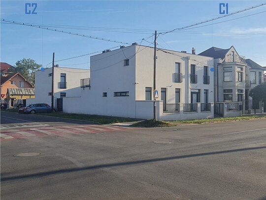Conservarea aliniamentului existent a plasat constructia cu functiune mixta – C1 – destinata serviciilor (sanatate) si locuirii in retragere fata de str. Vladeasa (front 1, principal), respectiv in aliniament raportat la str. Abatorului (front 2, secundar), acoperind calcanul existent edificat pe proprietatea invecinata.