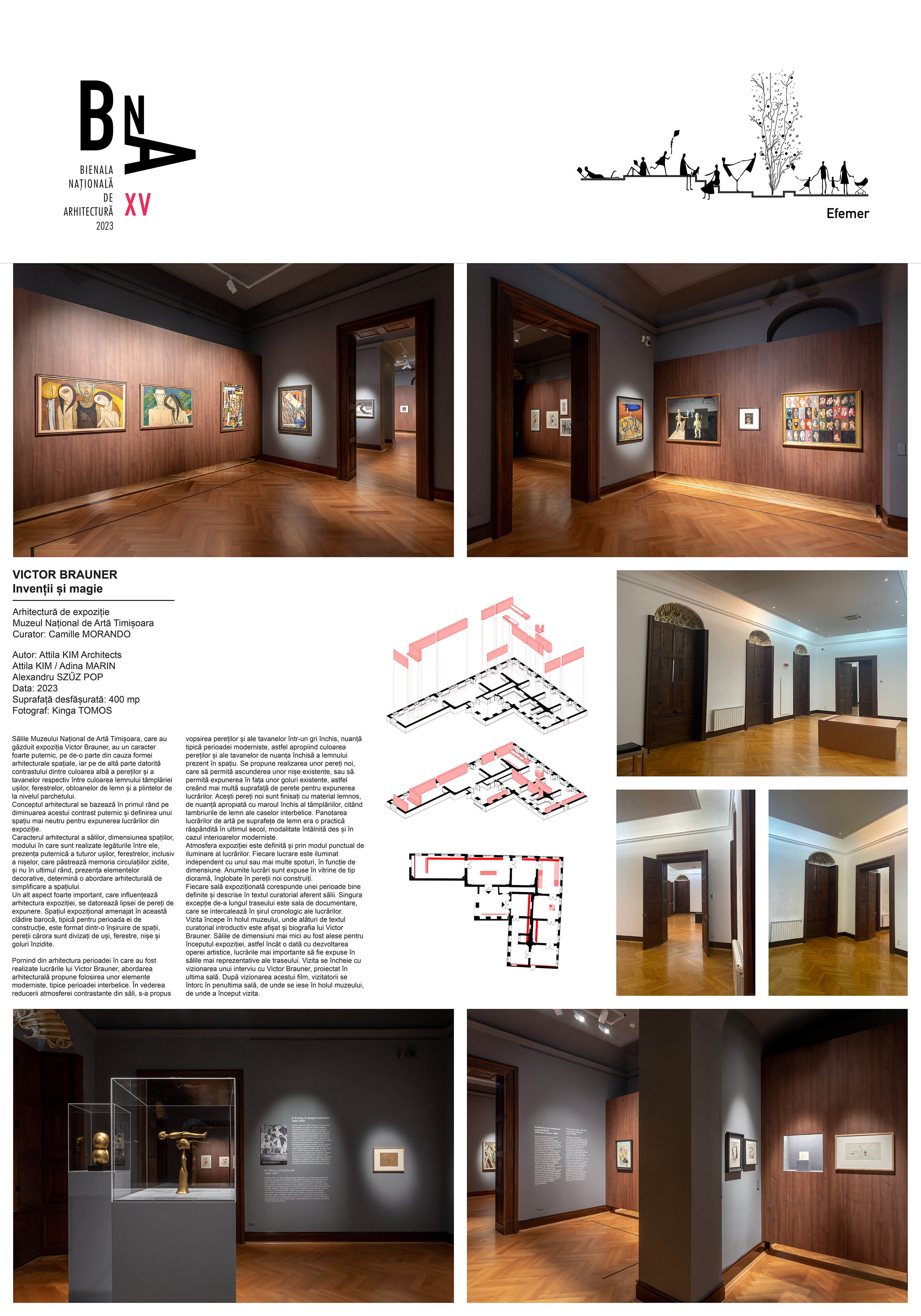 Sălile Muzeului Național de Artă Timișoara, care au găzduit expoziția Victor Brauner, au un caracter foarte puternic, pe de-o parte din cauza formei arhitecturale spațiale, iar pe de altă parte datorită contrastului dintre culoarea albă a pereților și a tavanelor respectiv între culoarea lemnului tâmplăriei ușilor, ferestrelor, obloanelor de lemn și a plintelor de la nivelul parchetului.