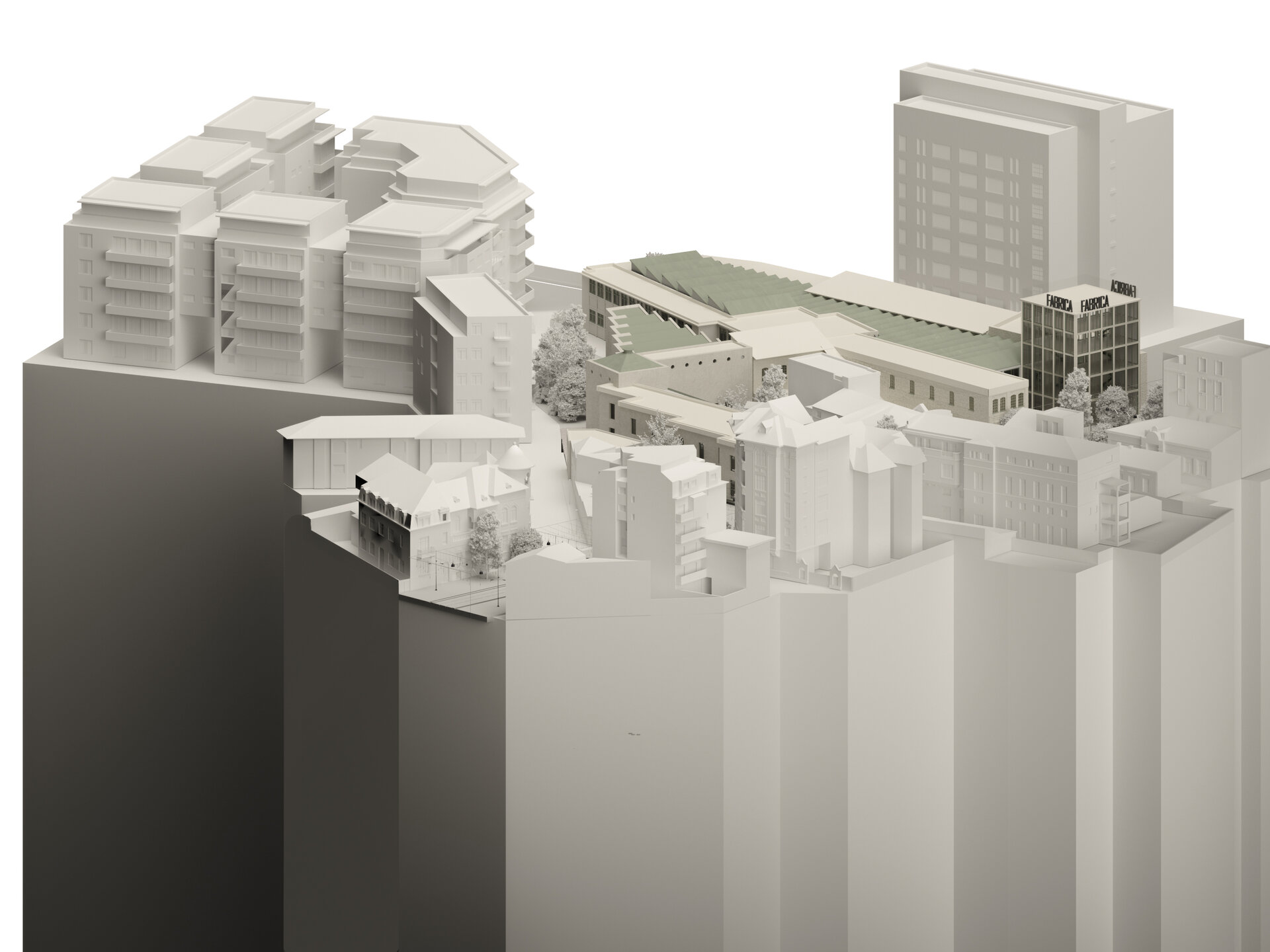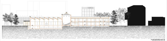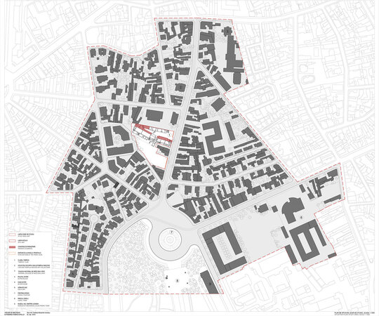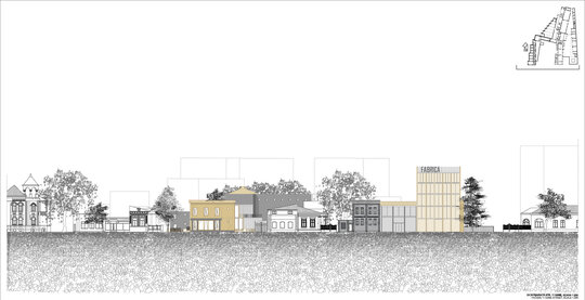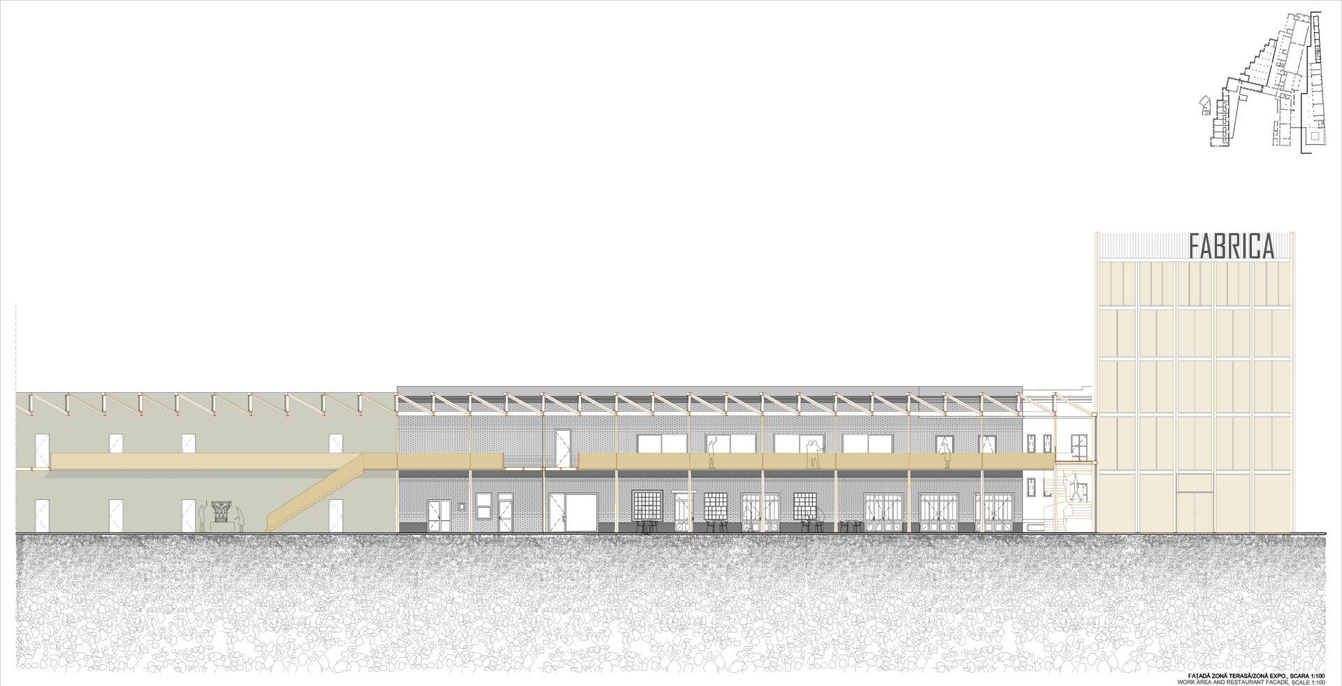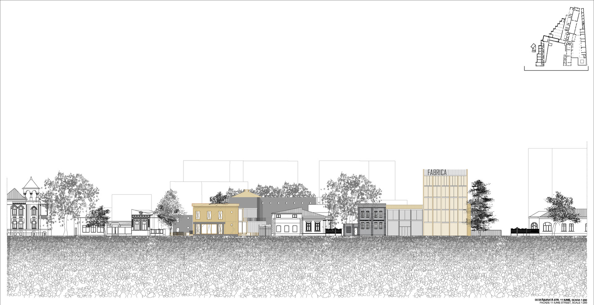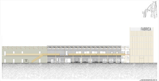 Propunerea se concentrează pe respectarea măsurii locului pentru a lucra cu existentul pregnant. Pentru întregirea imaginii trecute a fabricii, proiectul contopește terenul pe care se află acum cele două construcții de căramidă cu situl vecin, gol, rănit de intervențiile intruzive. În acest moment frontul este știrbit, plin de goluri pe care proiectul intenționează să le rectifice.
