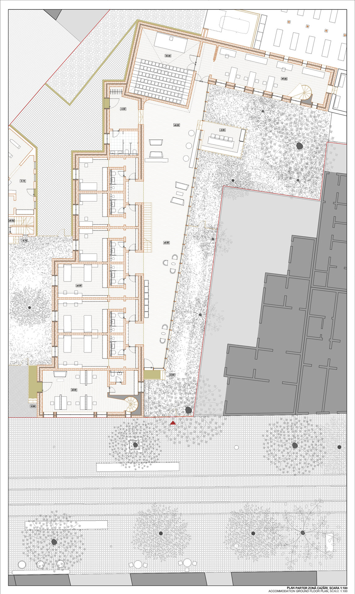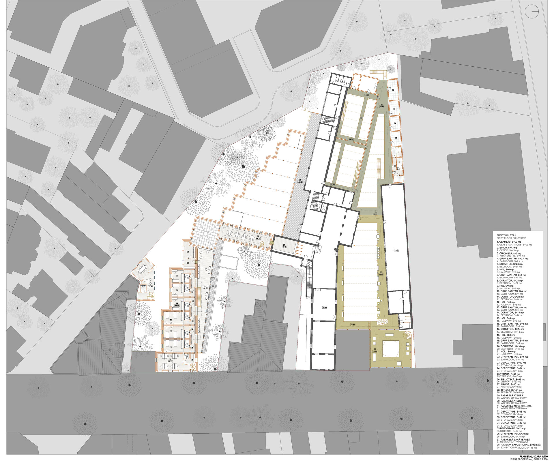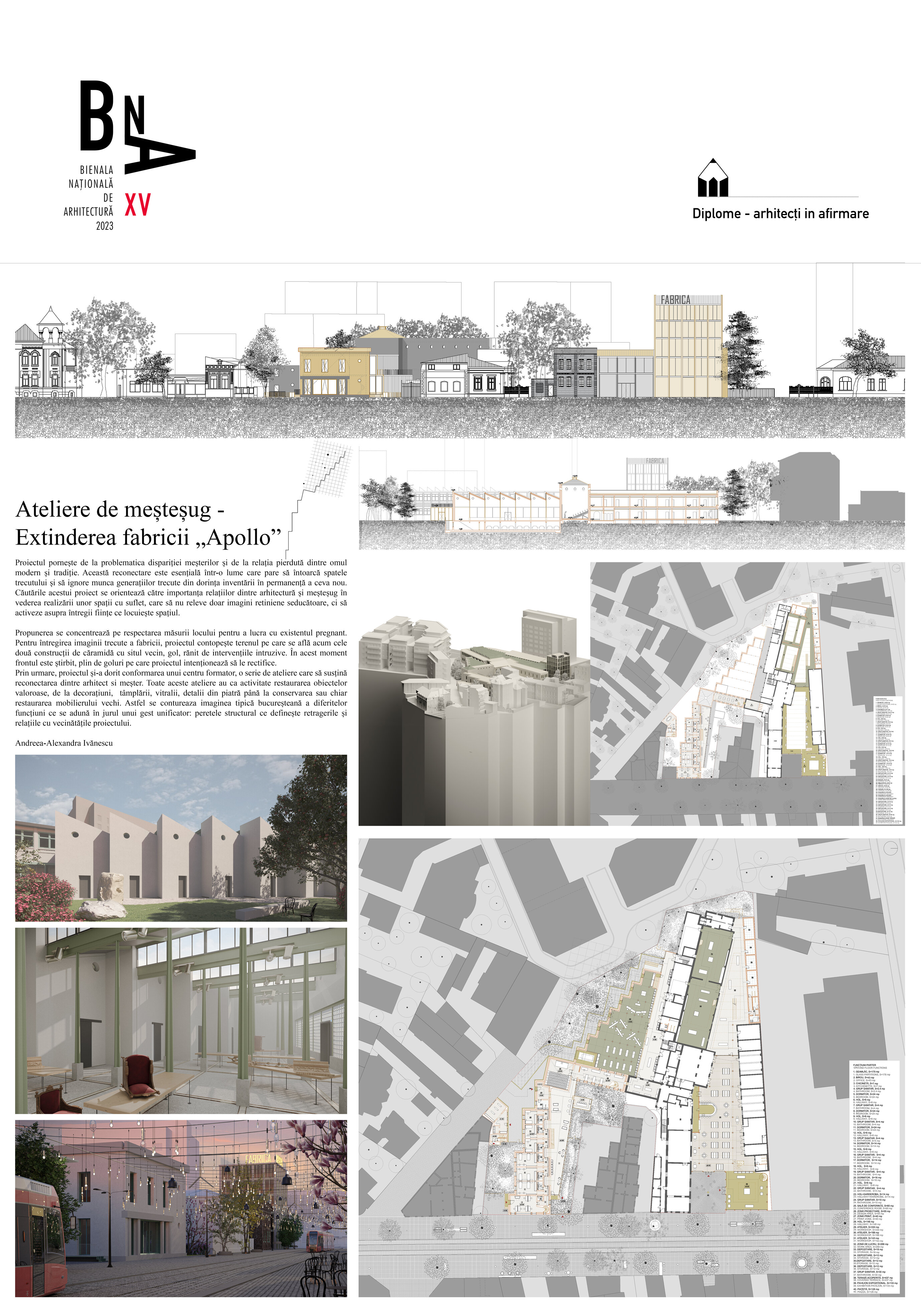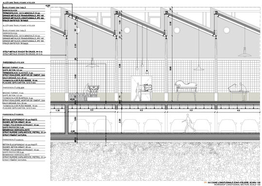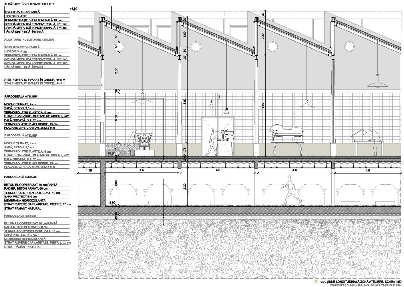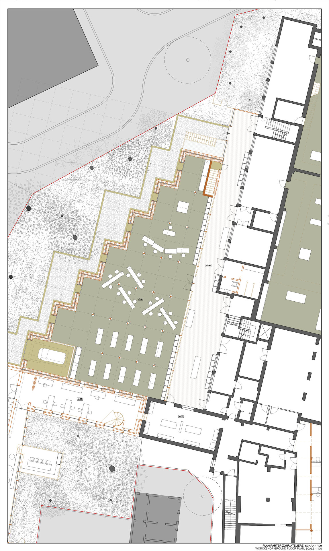 Prin urmare, proiectul și-a dorit conformarea unui centru formator, o serie de ateliere care să susțină reconectarea dintre arhitect si meșter. Toate aceste ateliere au ca activitate restaurarea obiectelor valoroase, de la decorațiuni, tâmplării, vitralii, detalii din piatră până la conservarea sau chiar restaurarea mobilierului vechi. Astfel se contureaza imaginea tipică bucureșteană a diferitelor funcțiuni ce se adună în jurul unui gest unificator: peretele structural ce definește retragerile și relațiile cu vecinătățile proiectului.