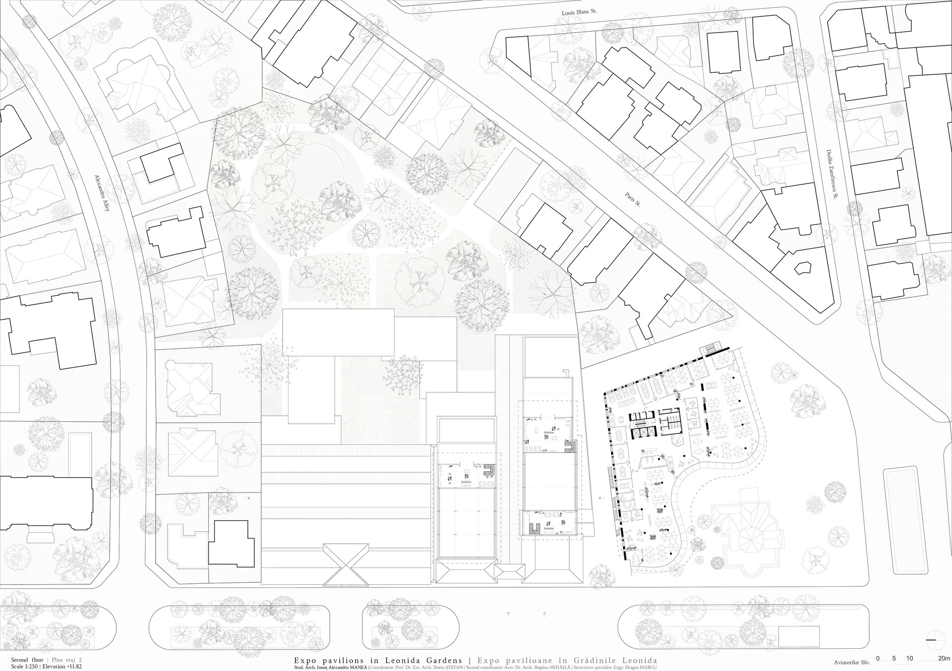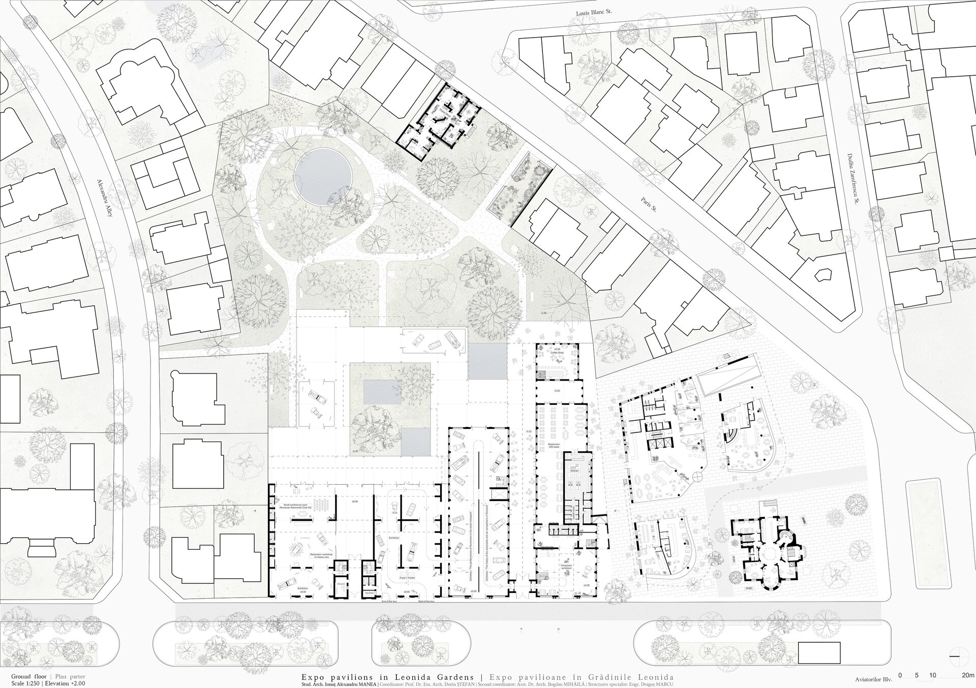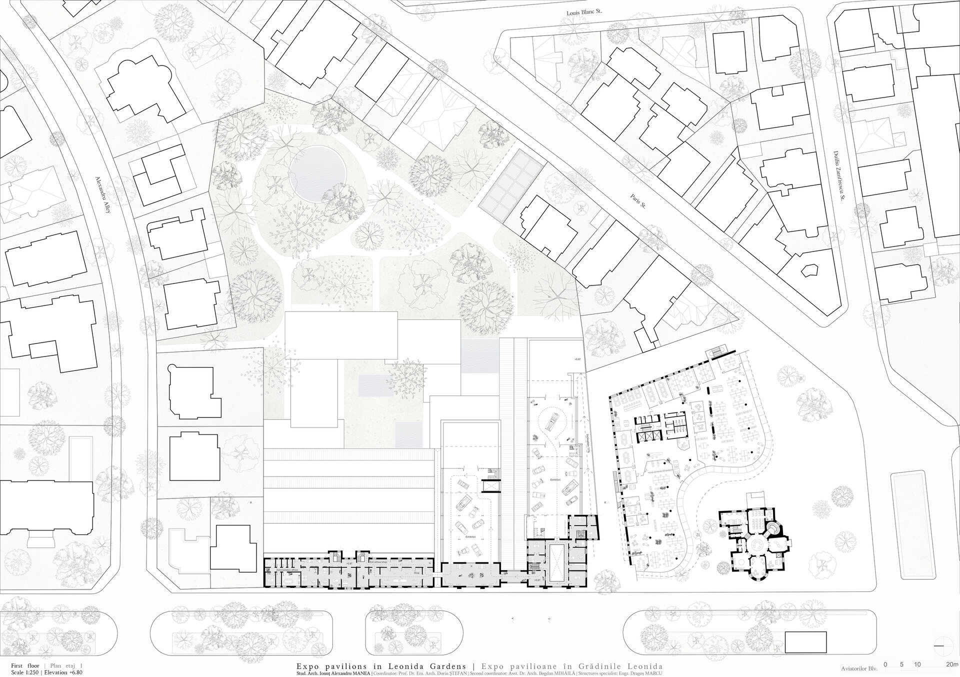 Bucureşti, Piaţa Victoriei, un pol de atracţie major al capitalei. Viaţa fierbe în jurul pieţei, dar nu în interiorul său. Dacă în alte oraşe Europene golul atrage oamenii în mijloc, aici îi adună în jurul său, în centru trăind doar maşina. Din vremea când piaţa era doar un maidan, în jurul său au apărut clădiri publice impozante, şcoli, muzee, palate publice, sedii de instituţii şi o serie de spaţii comerciale în care oamenii să îşi petreacă timpul liber. În toată această efervescenţă creată în jurul pieţei un singur spaţiu a fost lăsat în urmă într-o stare de latenţă ce poate deveni oricând efervescentă printr-un gest arhitectural de reconectare la spaţiul public şi de topire a limitelor pe care cu timpul, spaţiul şi le-a construit. Garajele Leonida, un loc născut în urmă cu un secol din pasiunea şi ambiţia unui singur om, Leon Leonida. Un buzoian venit în Bucureşti la vârsta de 20 de ani să îşi înfiinţeze propria companie în jurul pasiunii pentru automobil. Pe lângă spiritul antreprenorial pe care îl avea, acesta era şi un pilot de excepţie, concurând cu nume mari din acea vreme la competiţii auto locale şi fondând, împreună cu aceştia, o cultură auto în România. Compania sa a ridicat trei garaje în Bucureşti, însă perla companiei erau Garajele Leonida de lângă Piaţa Victoriei. Aici cele mai noi modele auto apărute în Occident erau aduse şi vândute publicului Bucureştean, dar funcţiona şi ca un muzeu pentru cei ce nu îşi permiteau să cumpere, dar doreau să privească noile inovaţii în domeniul auto. Totodată aici erau şi ateliere de reparaţii pentru maşinile scumpe ale burghezilor, era probabil cel mai cosmopolit hub auto din ţară în acel moment. Pornind de la istoria locului, am investigat cât de prezentă a fost cultura auto în societatea românească. Probabil cea mai relevantă perioadă a fost cea de înainte de instaurarea regimului comunist. În acest interval de timp românii au obţinut titluri remarcabile la competiţiile auto internaţionale precum LeMans 24h, Monte Carlo Grand Prix, Raliul de la San Remo sau Indianapolis 500. Inspiraţi de aceste competiţii, românii au creat Bucureşti Grand Prix şi Cursa în coastă de la Sinaia. Pe lângă performanţele în competiţiile internaţionale şi locale, inginerii români au început să experimenteze cu motoare şi design-uri aerodinamice ale maşinilor. Totodată o istorie a fabricării automobilelor s-a dezvoltat în România, mai întâi la fabrica MARTA, urmând ca în timpul regimului comunist alte fabrici să fie înfiinţate. În final, conceptul de spaţiu latent, istoria garajelor şi cultura auto în România, nevoia contextului de a-şi extinde spaţiile publice şi poziţionarea sitului lângă alte trei muzee importante la nivel urban au împins proiectul în direcţia unui spatiu public cultural, un muzeu al automobilului. Eliberarea sitului de clădirile ce îl parazitau a fost primul şi cel mai important pas, în urma unui studiu istoric şi de degradări am stabilit ce clădiri merită păstrate şi valorificate. După demolarea celor parazitare am obţinut un spaţiu vast liber ce aducea situl la un nivel de ocupare potrivit pentru zona în care se află şi astfel a apărut grădina publică, inspirat fiind de cele două grădini publice istorice din proximitate, Parcul Kiseleff şi Parcul Filipescu. Cele două organisme, parcul şi muzeul relaţionează prin intermedierea unui portic ce conţine două pavilioane expoziţionale, astfel apare acest organism de mediere ce scoate exponatul în grădină, dar şi grădina pătrunde prin spaţiile sale libere. Pentru ca parcul şi muzeul să devină efervescente a fost nevoie de topirea limitelor faţă de spaţiile publice vecine, astfel eliberând situl de limitările ce îl conservau într-o formă latentă. Muzeul are scopul de a aduce maşina din stradă în interior pentru a putea fi prezentată ca o piesă de artă şi tehnică, redând totodată oamenilor spaţiul public pierdut în ultimul secol. Garajele Leonida au încă şansa de a redeveni acel loc din oraş cu un caracter cultural şi cosmopolit pe care Bucureştenii obişnuiau să-l cunoască.