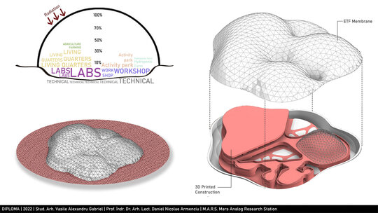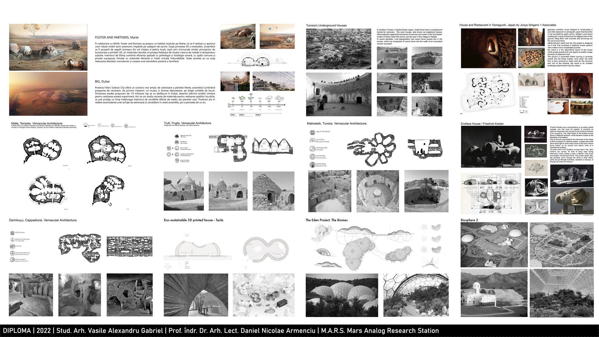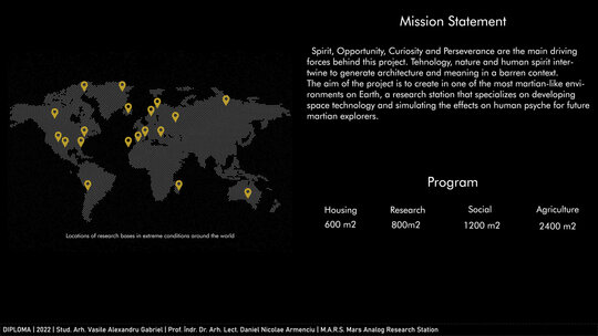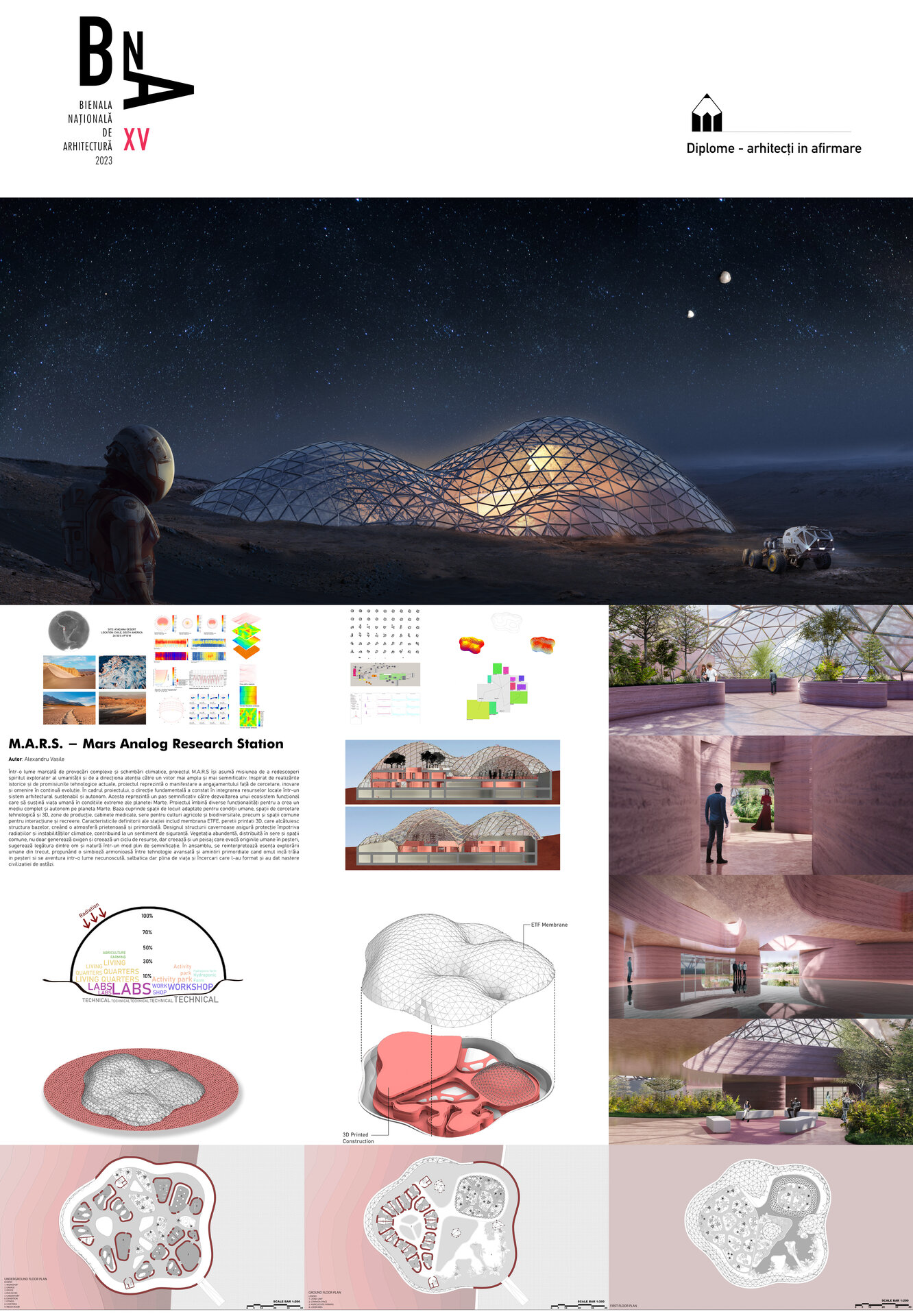 În era explorării spațiale continue, proiectul de diplomă "M.A.R.S: Mars Analog Research Station" propune o viziune îndrăzneață și inovatoare pentru viitorul cercetărilor și dezvoltării tehnologice în vederea colonizării planetei Marte. Inspirat de cuvintele celebre ale președintelui american John F. Kennedy și de dorința constantă a umanității de a atinge noi frontiere, proiectul are ca scop crearea unei baze de cercetare inovatoare ce își propune să simuleze condițiile extrem de dificile cu care viitorii exploratori ai planetei Marte se vor confrunta.