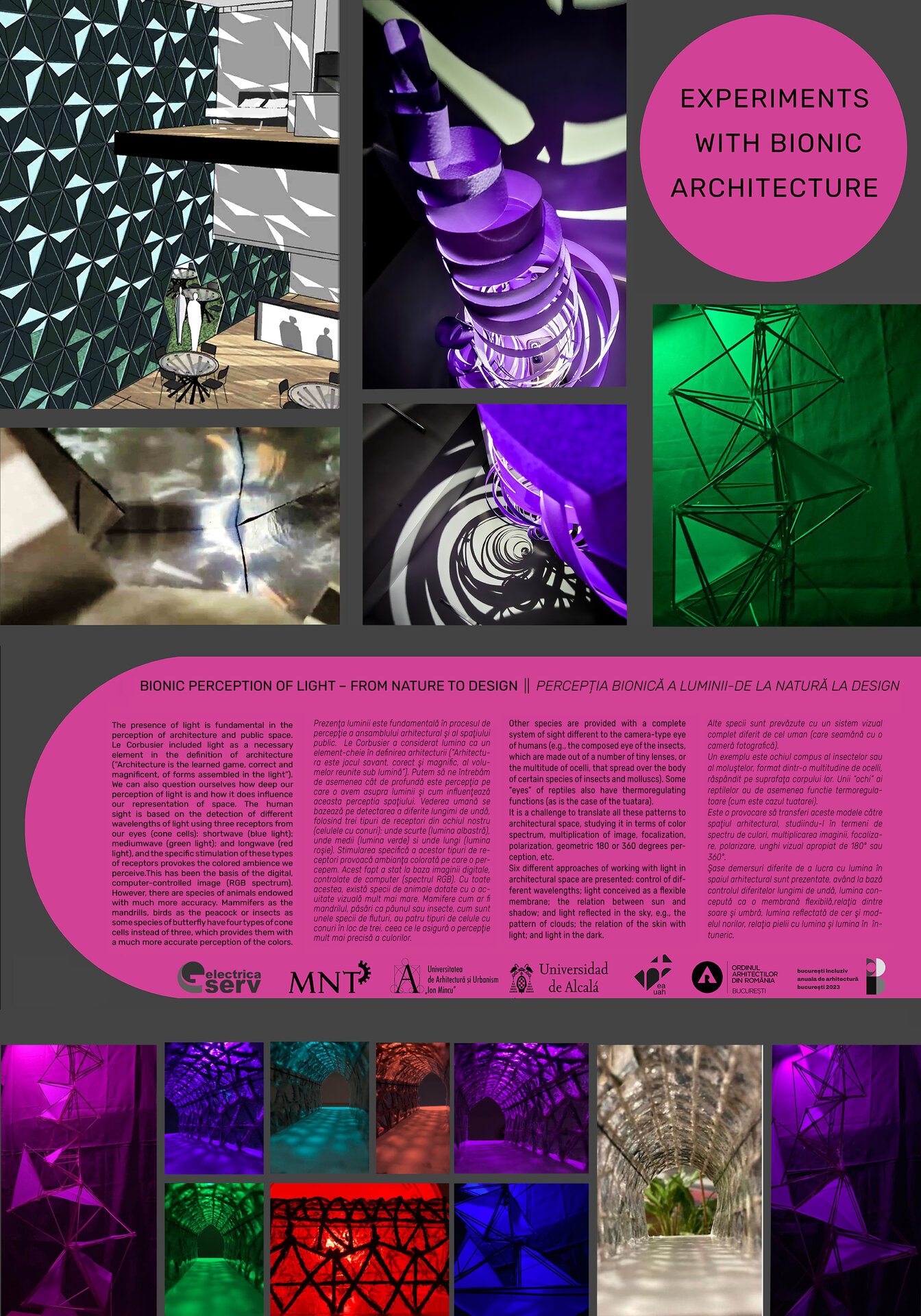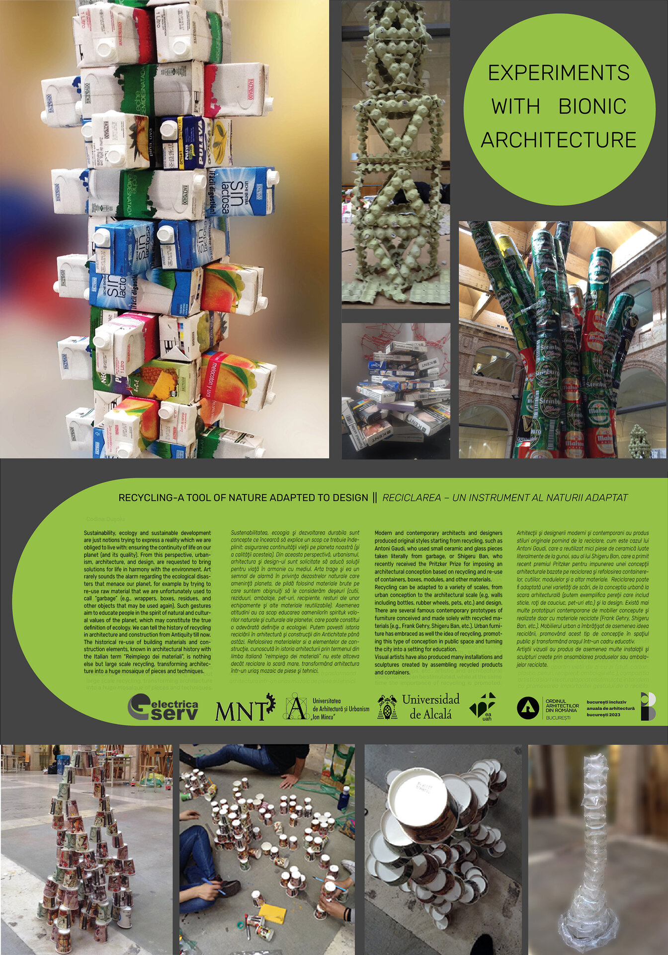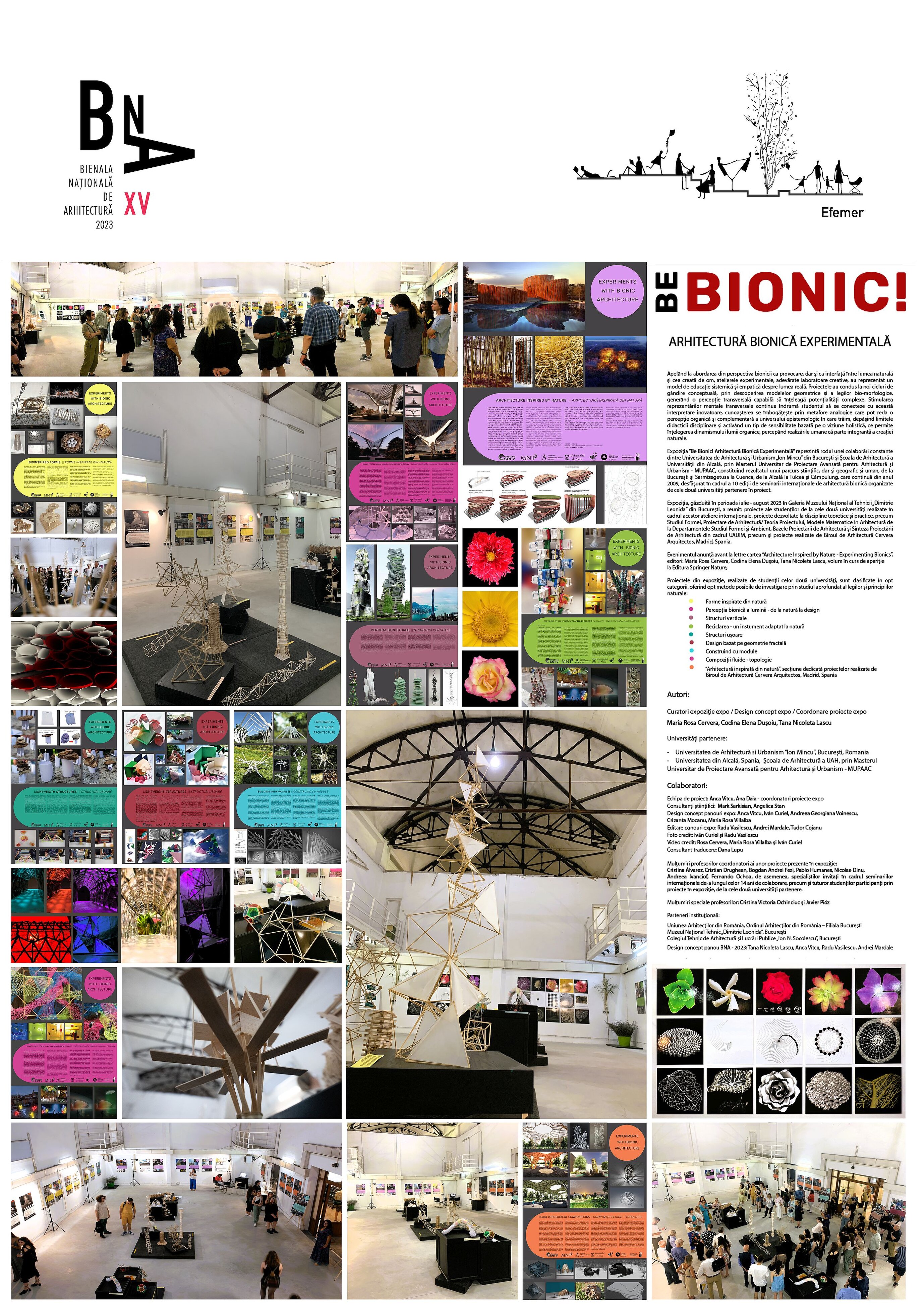 Expoziția "Be Bionic! Arhitectură Bionică Experimentală" este rodul unei colaborări constante între Universitatea de Arhitectură și Urbanism "Ion Mincu" din București și Şcoala de Arhitectură a Universității din Alcalá de Henares, prin intermediul Masterului Universitar de Proiectare Avansată de Arhitectură și Oraș - MUPAAC, constituind rezultatul unui parcurs științific, dar și geografic și uman, de la București și Sarmizegetusa la Cuenca, de la Alcalá la Tulcea şi Câmpulung, care continuă din anul 2009, desfăşurat în cadrul a 10 ediţii de seminarii internaţionale de bionică, organizate de cele două universităţi partenere în proiect.