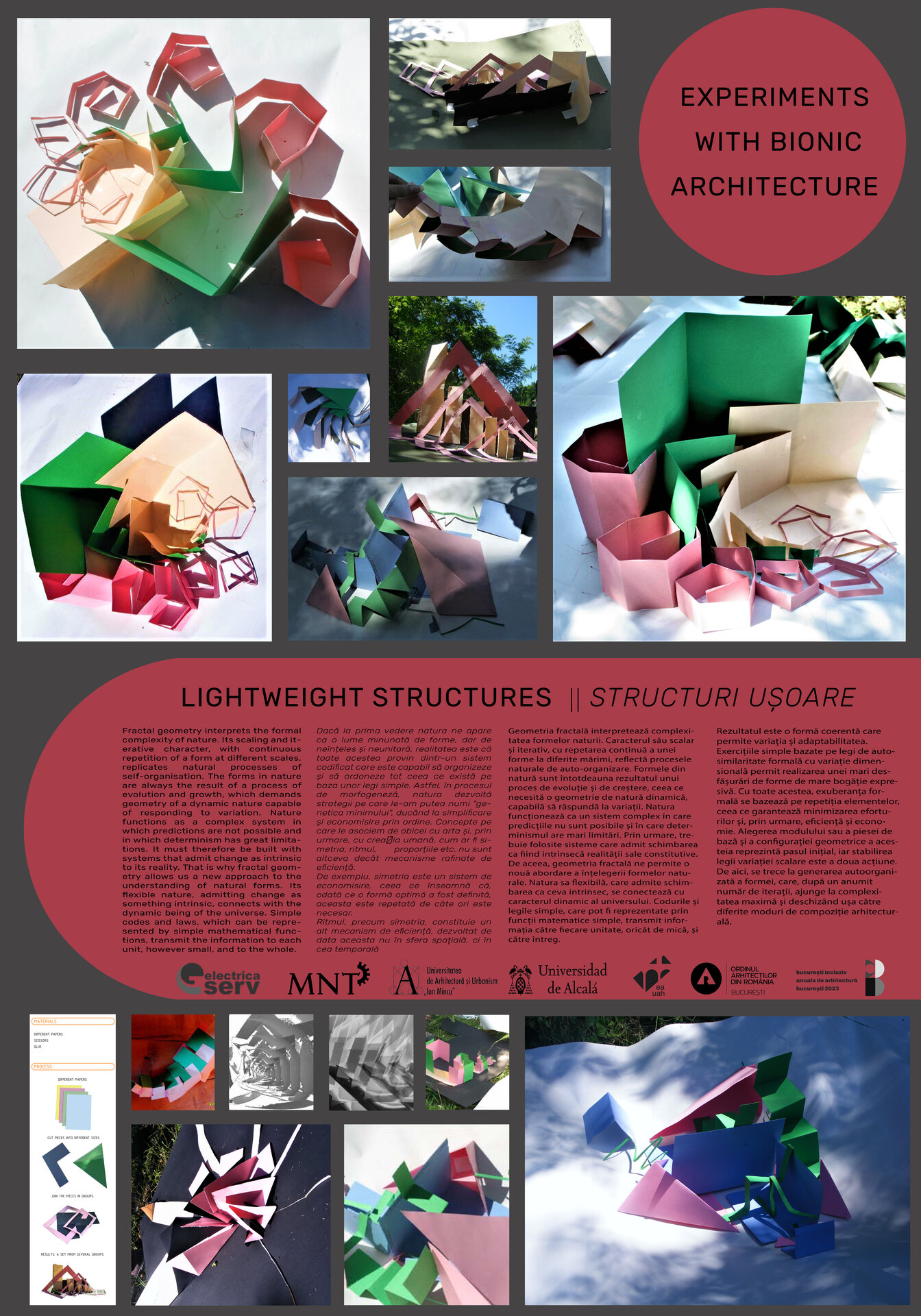 Expoziţia, găzduită în perioada iulie - august 2023 de Galeria Muzeului Naţional al Tehnicii "Dimitrie Leonida" din Bucureşti, a reunit: proiecte ale studenţilor de la cele două universităţi realizate în cadrul acestor ateliere internaţionale, proiecte dezvoltate la discipline teoretice şi practice, precum Studiul Formei, Proiectare de Arhitectură / Teoria Proiectului, Modele Matematice în Arhitectură, de la Departamentele Studiul Formei şi ambient, Bazele Proiectării de Arhitectură, Sinteza Proiectării de Arhitectură, din cadrul UAUIM, precum şi proiecte realizate de Biroul de Arhitectură Cervera Arquitectos, Madrid, Spania.