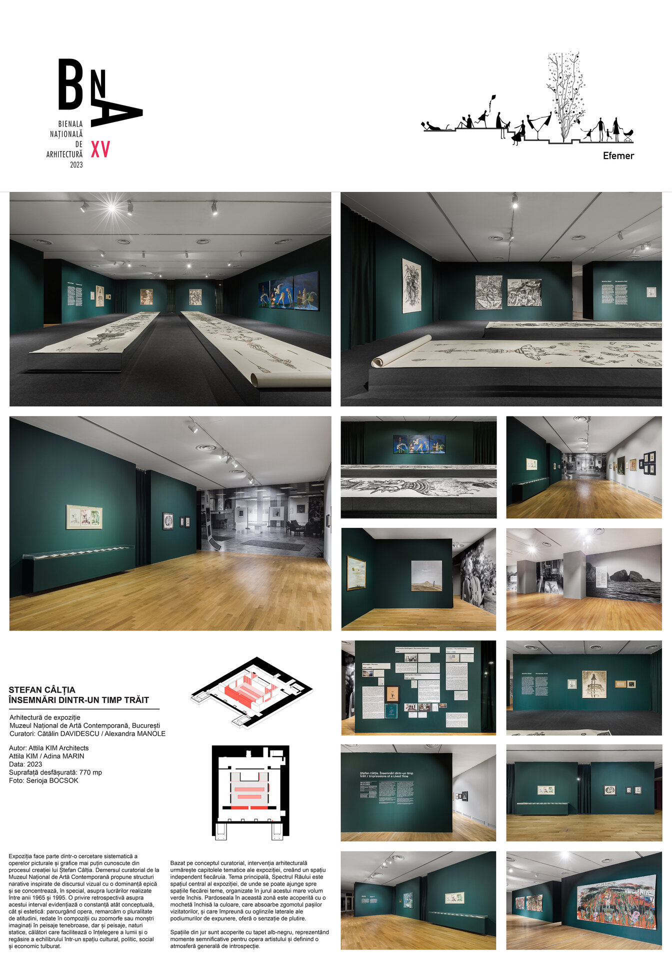 Expoziția face parte dintr-o cercetare sistematică a operelor picturale și grafice mai puțin cunoscute din procesul creației lui Ștefan Câlția. Demersul curatorial de la Muzeul Național de Artă Contemporană propune structuri narative inspirate de discursul vizual cu o dominanță epică și se concentrează, în special, asupra lucrărilor realizate între anii 1965 și 1995. O privire retrospectivă asupra acestui interval evidențiază o constanță atât conceptuală, cât și estetică: parcurgând opera, remarcăm o pluralitate de atitudini, redate în compoziții cu zoomorfe sau monștri imaginați în peisaje tenebroase, dar și peisaje, naturi statice, călători care facilitează o înțelegere a lumii și o regăsire a echilibrului într-un spațiu cultural, politic, social și economic tulburat.