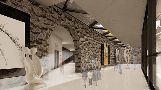 Casa monument istoric este pusă în valoare prin reabilitarea ei, acordându-i importanță prin funcțiunile pe care le găzduiește, iar zidul istoric este încorporat în zona de expoziție, fiind prezent atât în parcursul interior, cât și în cel exterior, păstrând inclusiv arcadele sale și incorporându-le în circuitul expozițional.