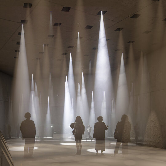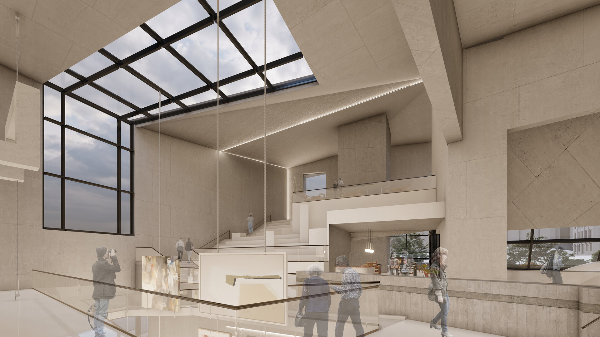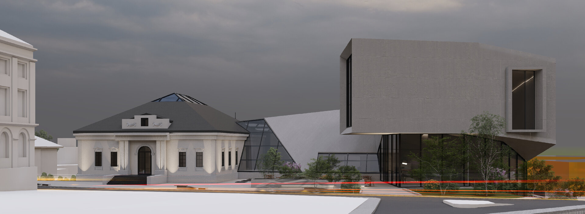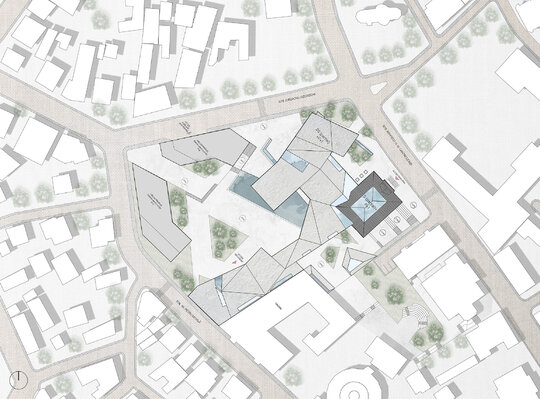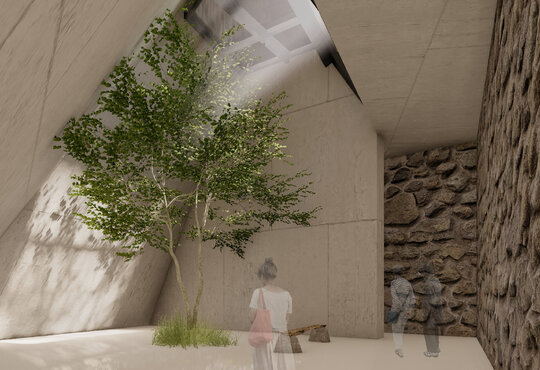 Am creat de asemenea și un parcurs exterior memorabil: fie că treci pe sub pasarelă și pe lângă clădirile cu caracter istoric, fie că treci pe sub volumul în consolă, pe lângă zidul vechi, parcursul este presărat cu zone vitrate atent amplasate pentru a putea privi în interiorul muzeului.