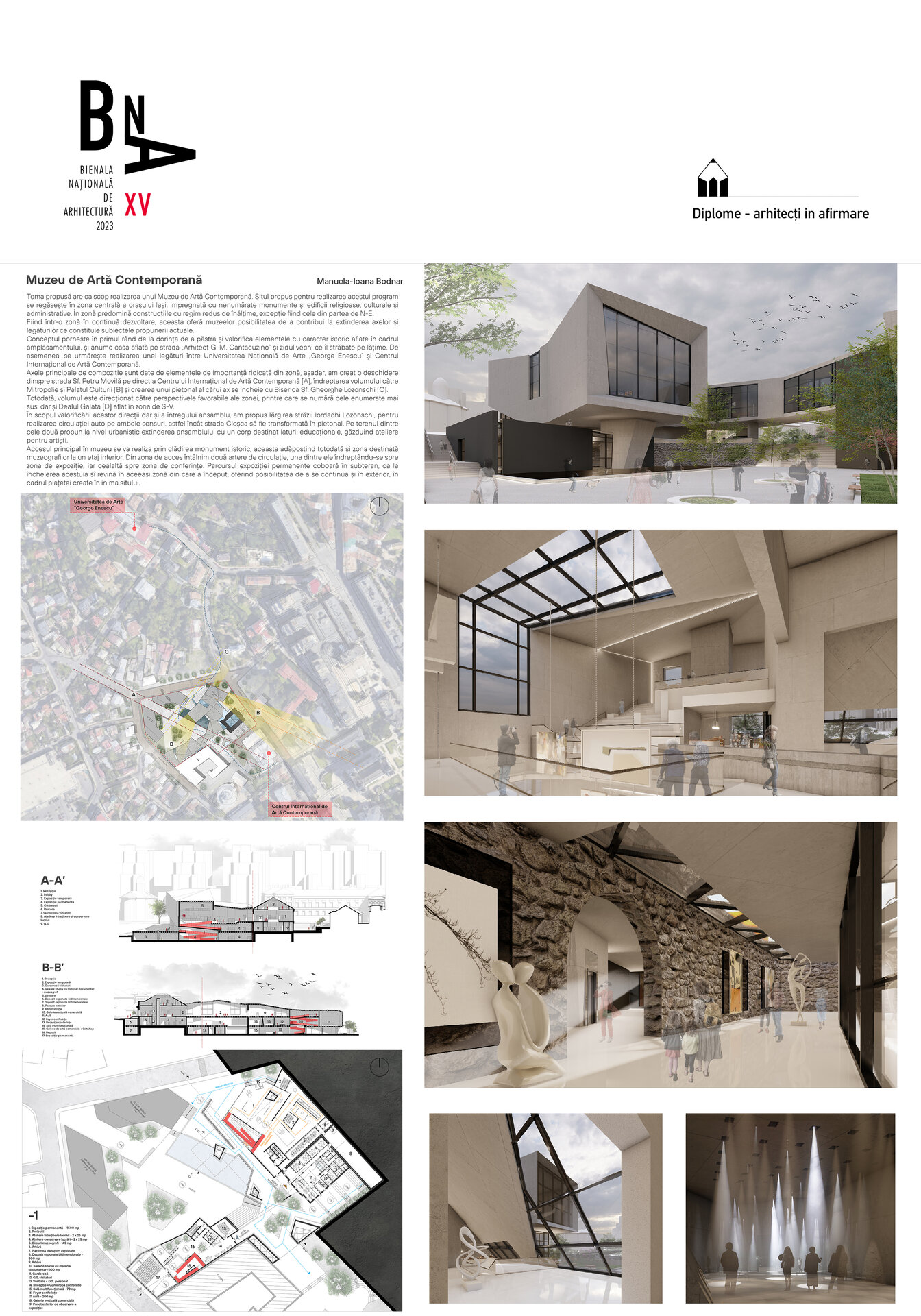 Tema propusă are ca scop realizarea unui Muzeu de Artă Contemporană. Situl propus pentru realizarea acestui program se regăsește în zona centrală a orașului Iași, impregnată cu nenumărate monumente și edificii religioase, culturale și administrative. În zonă predomină construcțiile cu regim redus de înălțime, excepție fiind cele din partea de N-E.