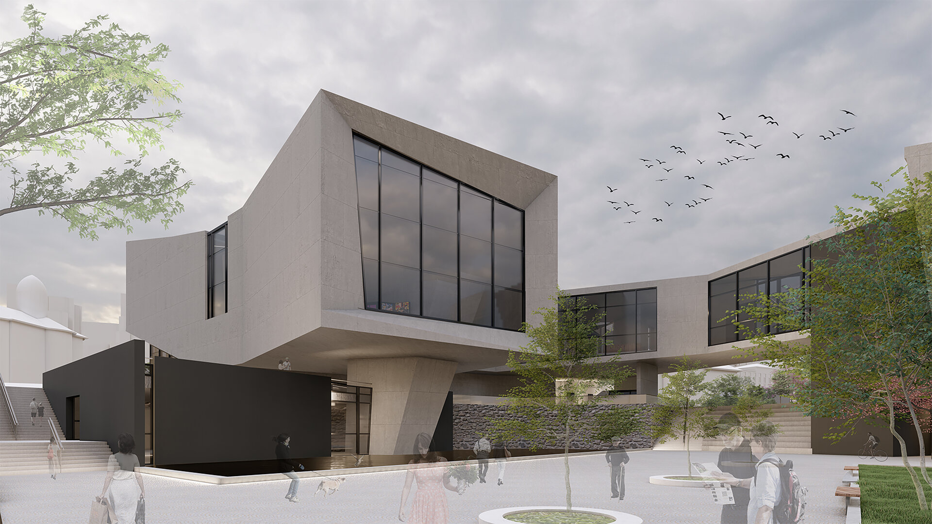 Conceptul pornește în primul rând de la dorința de a păstra și valorifica elementele cu caracter istoric aflate în cadrul amplasamentului, și anume casa aflată pe strada „Arhitect G. M. Cantacuzino” și zidul vechi ce îl străbate pe lățime. De asemenea, se urmărește realizarea unei legături între Universitatea Națională de Arte „George Enescu” și Centrul Internațional de Artă Contemporană.