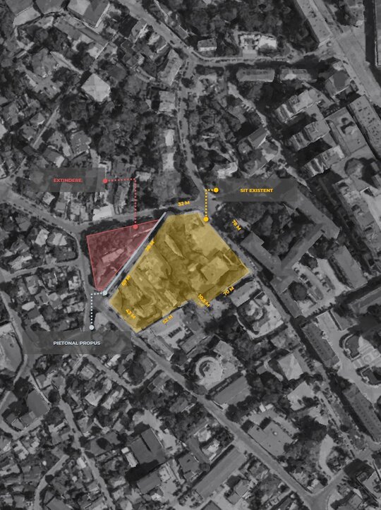 În scopul valorificării acestor direcții dar și a întregului ansamblu, am propus lărgirea străzii Iordachi Lozonschi, pentru realizarea circulației auto pe ambele sensuri, astfel încât strada Cloșca să fie transformată în pietonal. Pe terenul dintre cele două propun la nivel urbanistic extinderea ansamblului cu o zonă destinată laturii educaționale, găzduind ateliere pentru artiști.