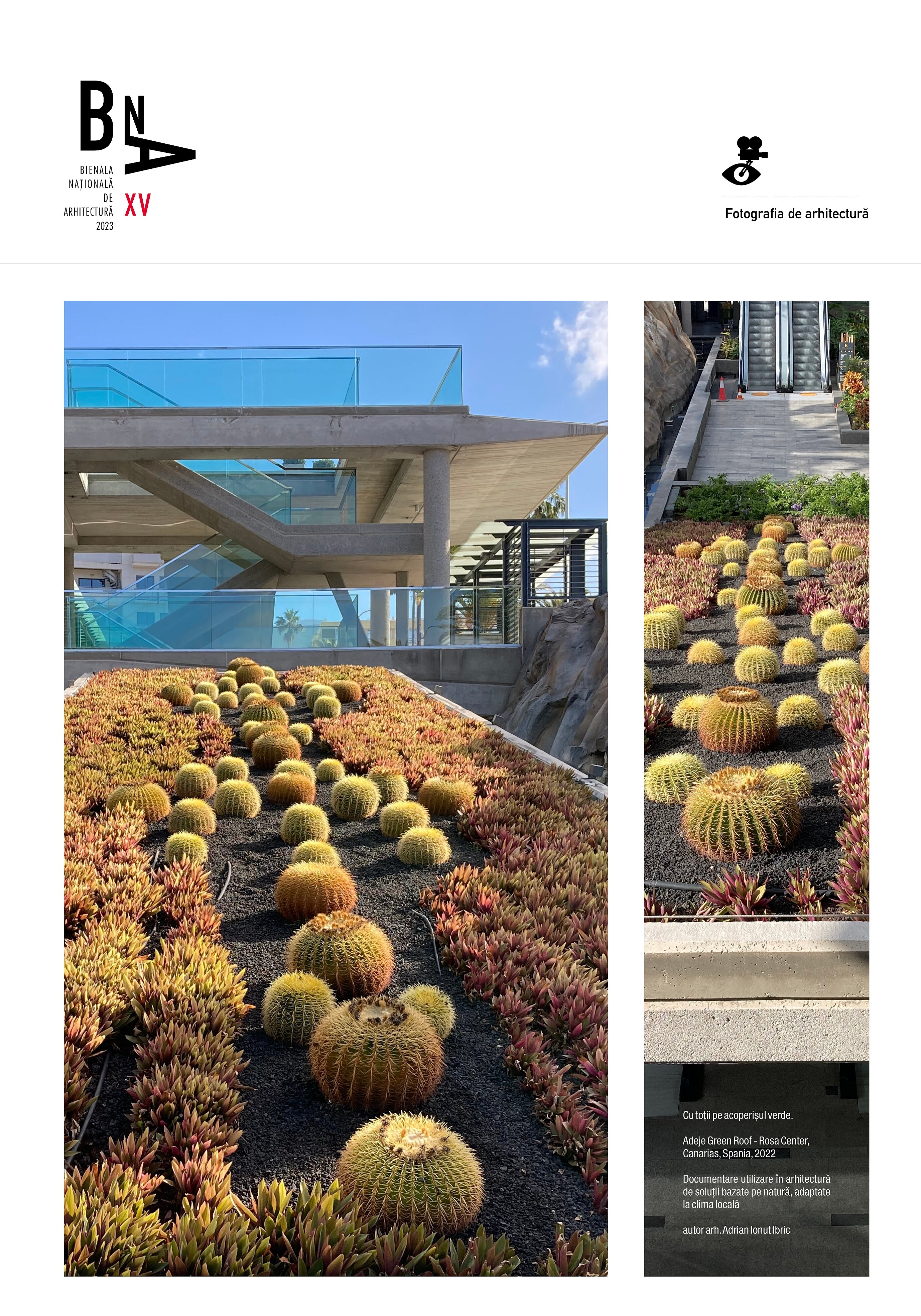 Cu toții pe acoperișul verde.Adeje Green Roof - Rosa Center,Canarias, Spania, 2022Studiu fotografic - Documentare utilizare în arhitectură de soluții bazate pe natură, adaptate la clima locală.autor arh. Adrian Ionut Ibric