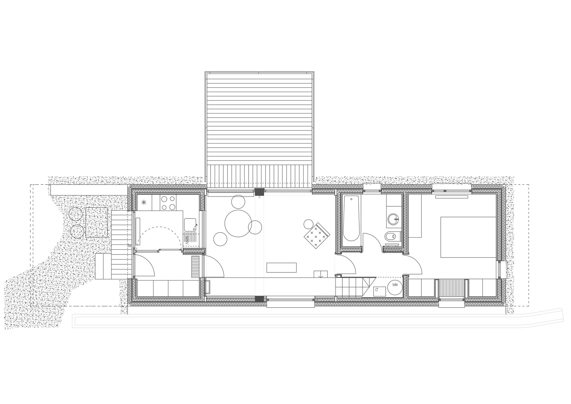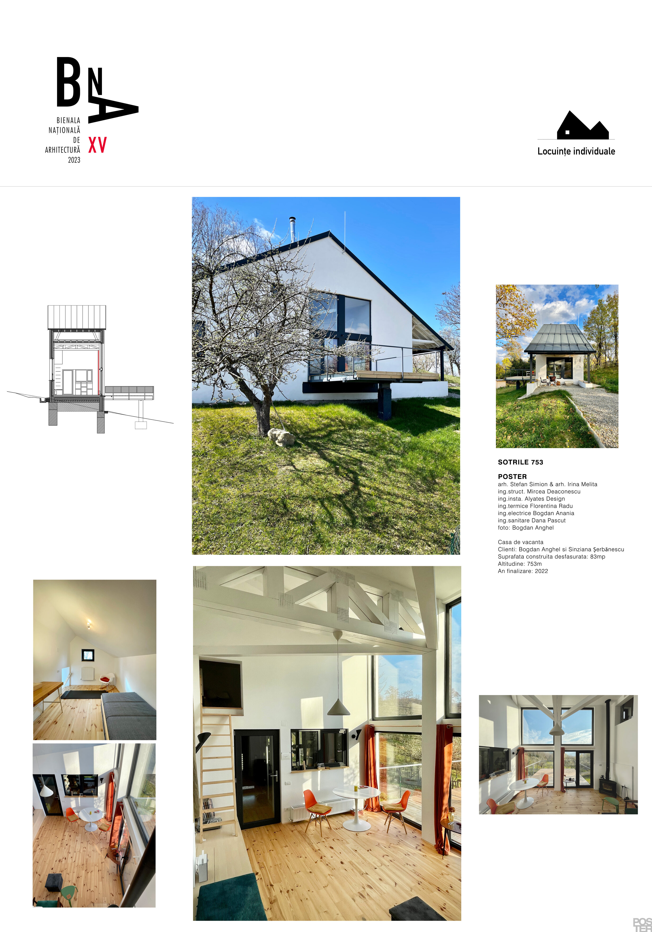 Sotrile753 este o casă mică, de vacanță, la munte. Schimbarea scarii arhitecturale este miza proiectului: spații intime, ascunse, se adună în jurul unei încăperi principale cu două etaje, care are o deschidere generoasa spre priveliștea indepărtată. Secțiunea lungă este desenul care conține intențiile proiectului. Există două locuri exterioare: unul protejat, direct pe pământ, în relație directă cu bucătăria; iar cea extrovertită - terasa suspendată, cu acces din acamera de zi, permițând privirii să ajungă până la Lacul Păltinu (5 km distanță). Cu exceptia dormitorului principal si a baii, toate incaperile sunt in amfilada, in relatie unele cu altele, avand ferestre si goluri unele catre altele si, astfel, producand fatade interioare.