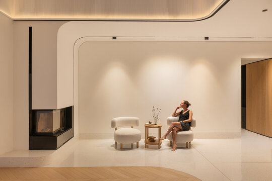 Coaja conferă salonului central un caracter teatral, îi sporește importanța și, împreună cu localizarea și natura locurilor de întâlnire de la parter – locul de foc și cel de luat masa – transformă spațiul în inima casei. Acest loc al întâlnirii unește toate sferele vieții familiale cu cea a invitaților: la parter, se racordează la sfera cuplului adult, ce include zona matrimonială și spațiul de lucru aflat în proximitatea intrării, transferă accesul către sfera comună a familiei – bucătăria și livingul –, iar la etaj, prin intermediu scării se separă sfera adulților de cea a copiilor și prin pasarelă de cea destinată lecturii și a oaspeților.