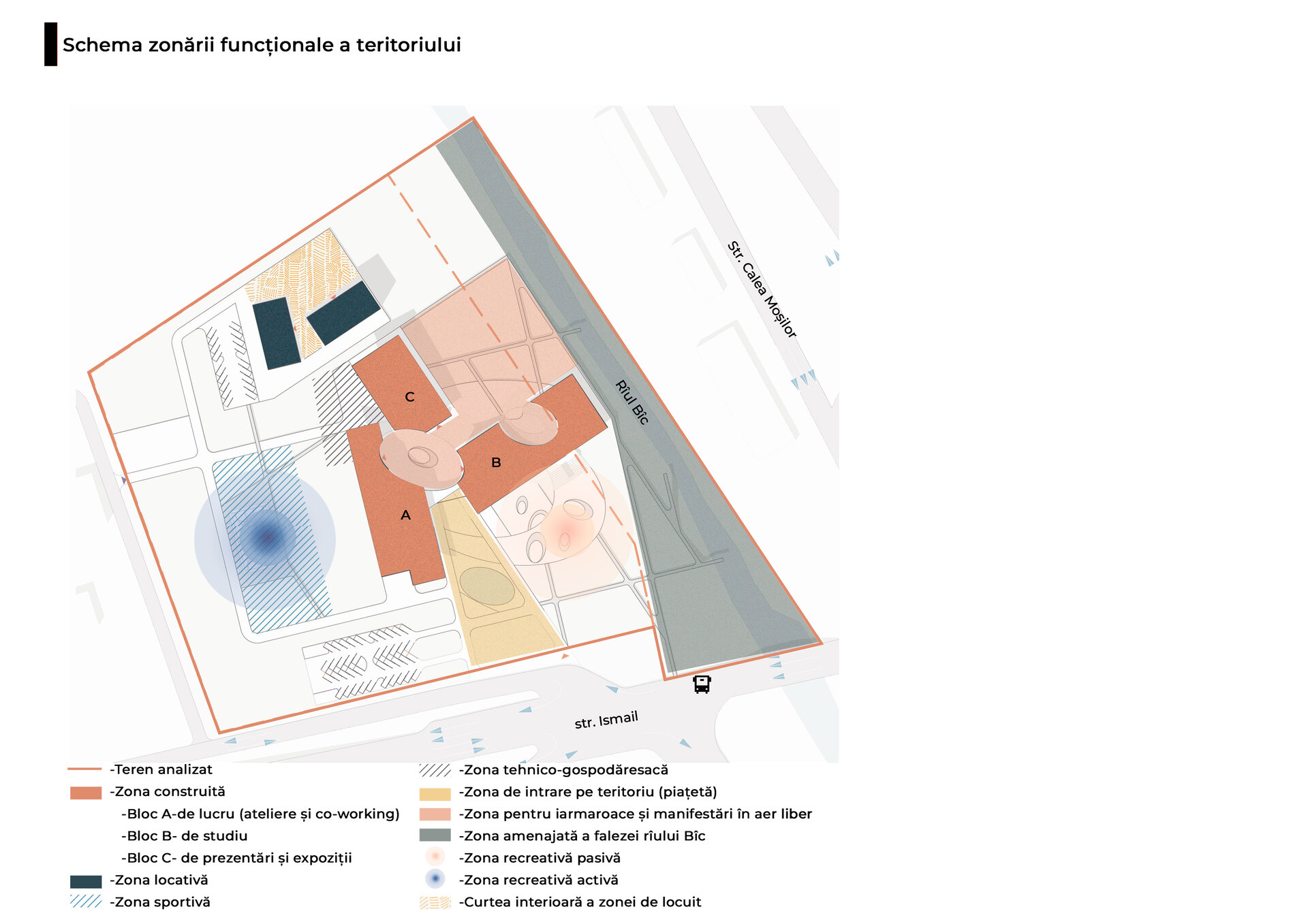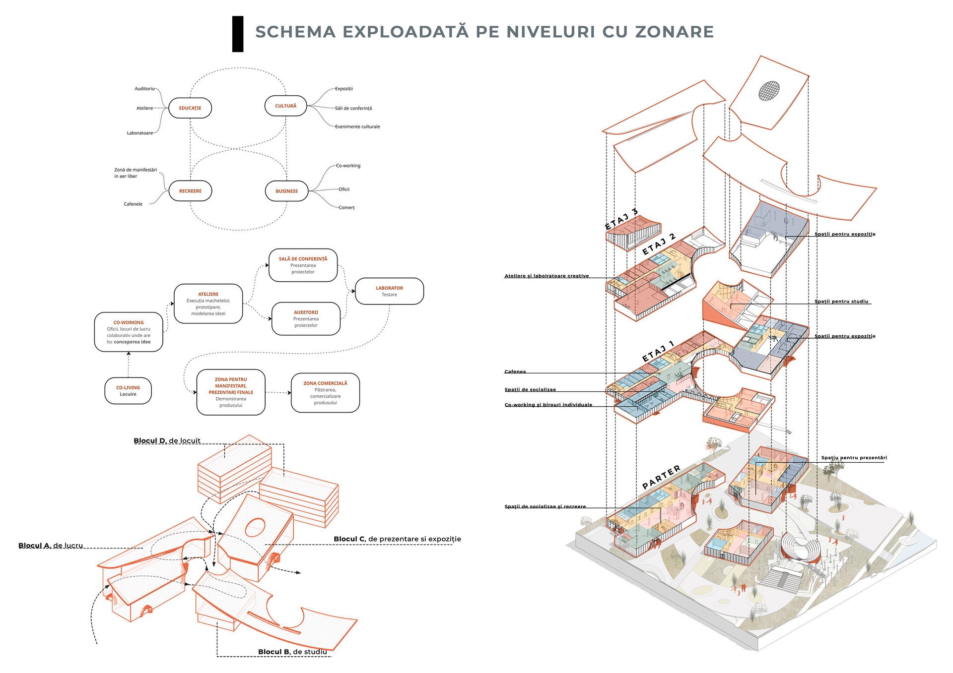 • Interdisciplinaritate – fiecare zonă (creativă, IT, educațională, locativă) este conectată prin noduri comune de socializare, co-working și expoziție. Aceste intersecții devin adevărate „puncte de combustie” pentru idei și colaborări.