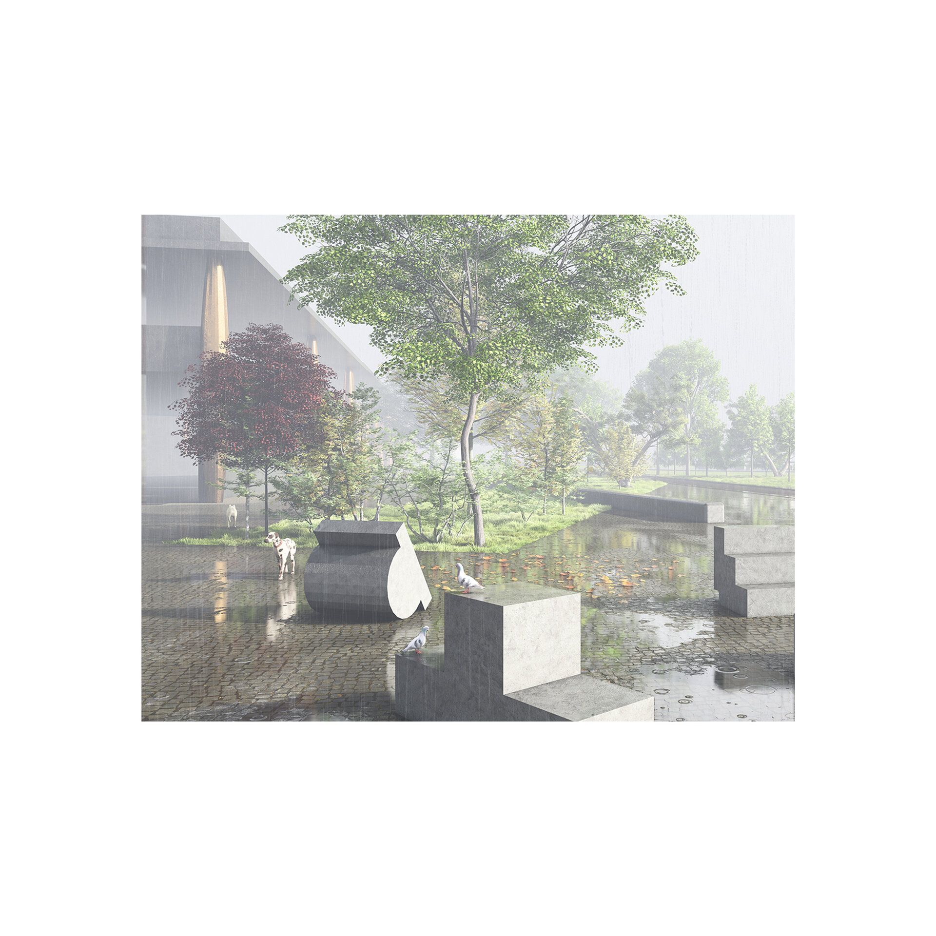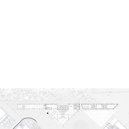 ,,Bara’’ folosește trei corpuri triunghiulare drept unelte de conturare a spațialității, generând trei tipuri de legătură: un pasaj ce dă senzația unei apăsări printr-o acoperire de tip ,,pânză’’, o strâmtoare dată de două muchii ale Centralei și corpului cu funcțiuni flexibile, alăturarea muchiilor configurând 2 posibile scenarii (trecere între două piațete – legătură, punct de atracție – prin deschiderea marginală și transformarea sălii multifuncționale într-un teatru în aer liber) și o deschidere dată de structura pavilionară hipostilă ce se descarcă în structura spațiului muzeal monostil de la subsol, spre ,,Grădina de rezervoare’’.