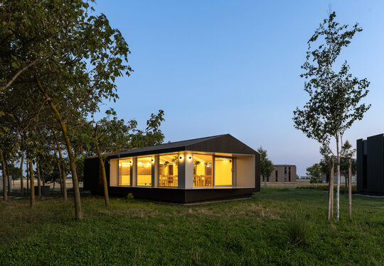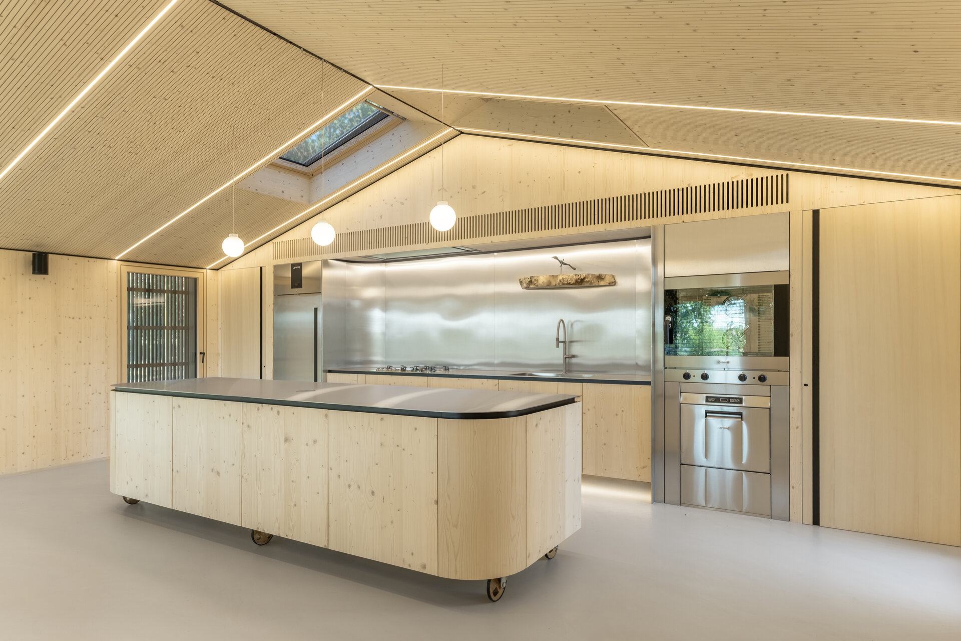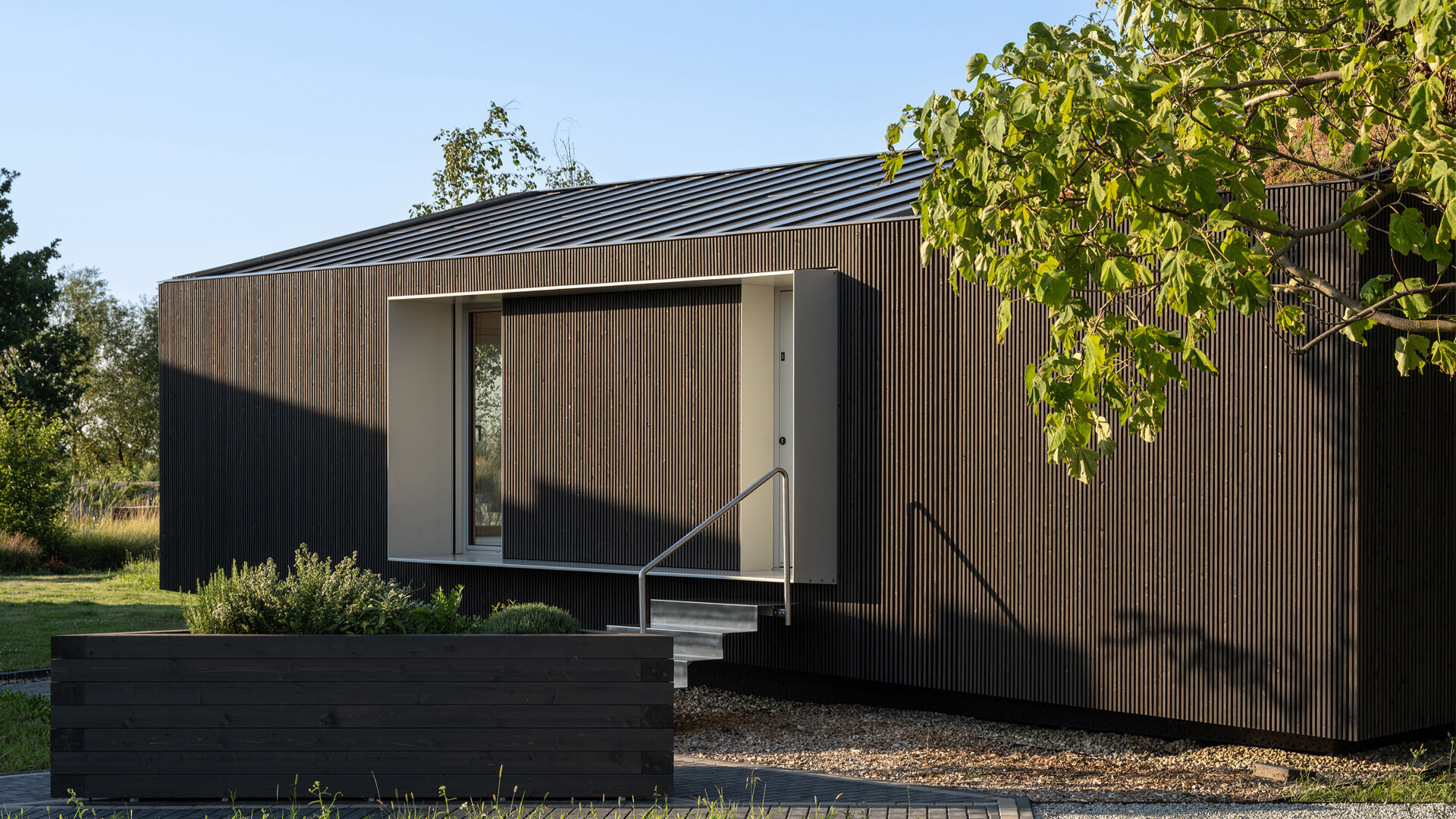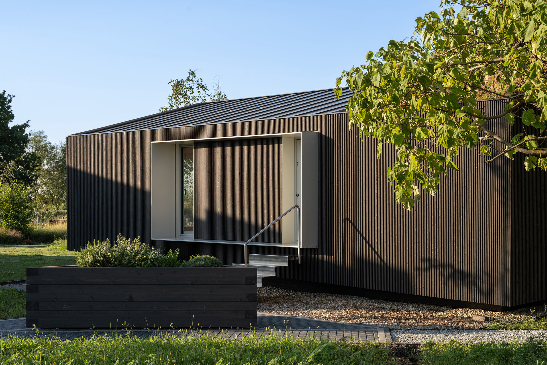 Arhitectura acestei case modulare se bazează pe o compoziție coerentă și durabilă, în care lemnul joacă un rol central, în care toate elementele structurale esențiale - pereții, acoperișul și podeaua — sunt realizate din lemn stratificat și CLT.