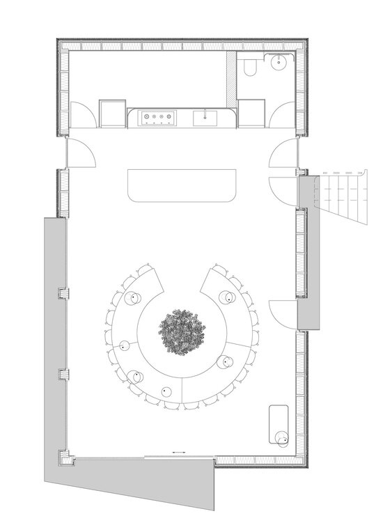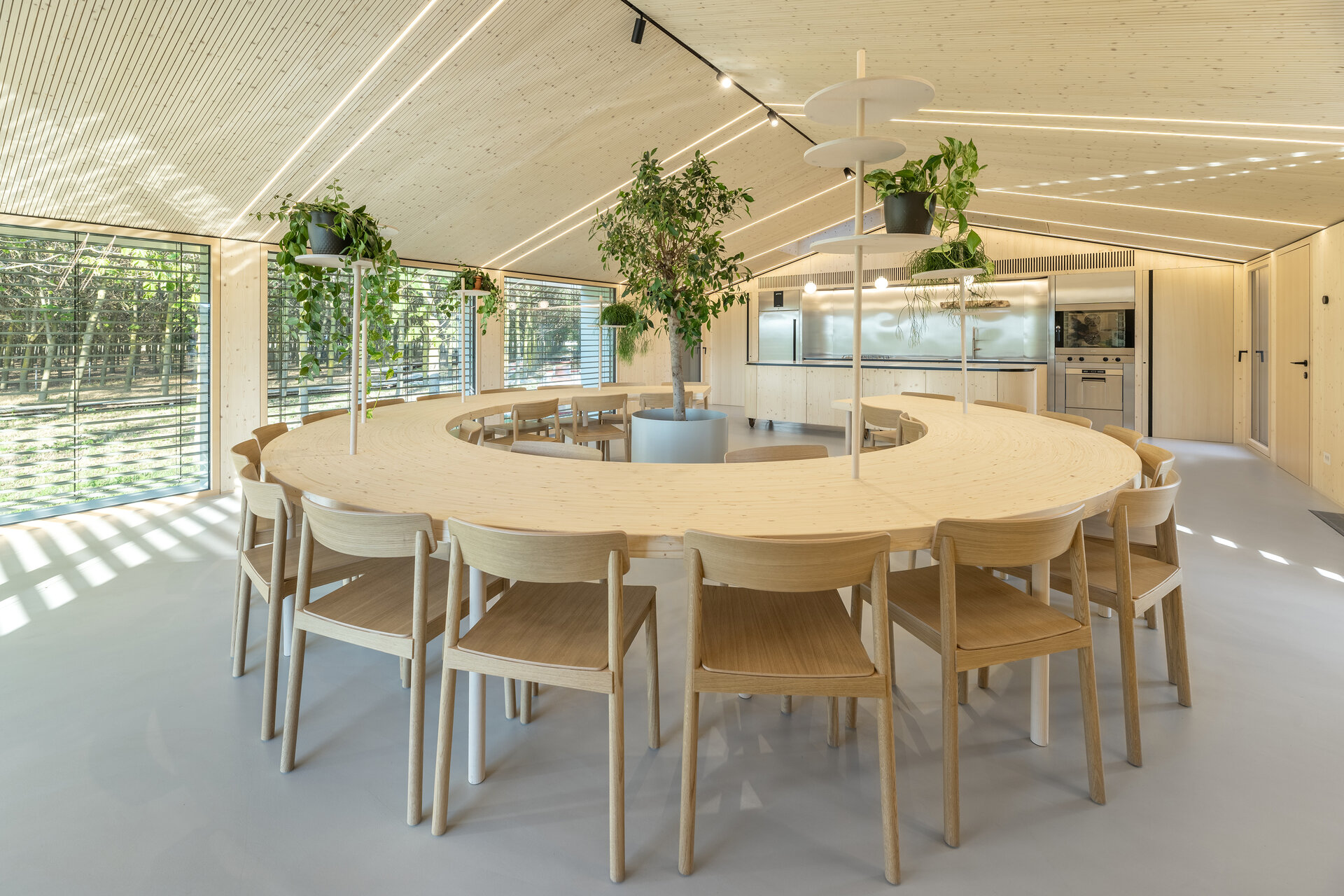 Și precum orice organism care conține viață, în centrul spațiului interior și în centrul mesei rotunde este amplasat un arbore, ca simbol al vieții, care ne sugerează că nu există echilibru fără armonie cu natura.