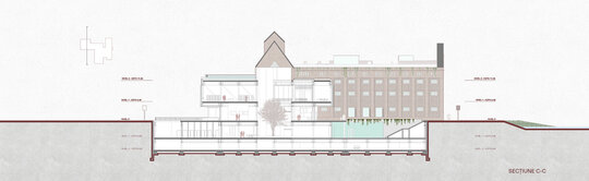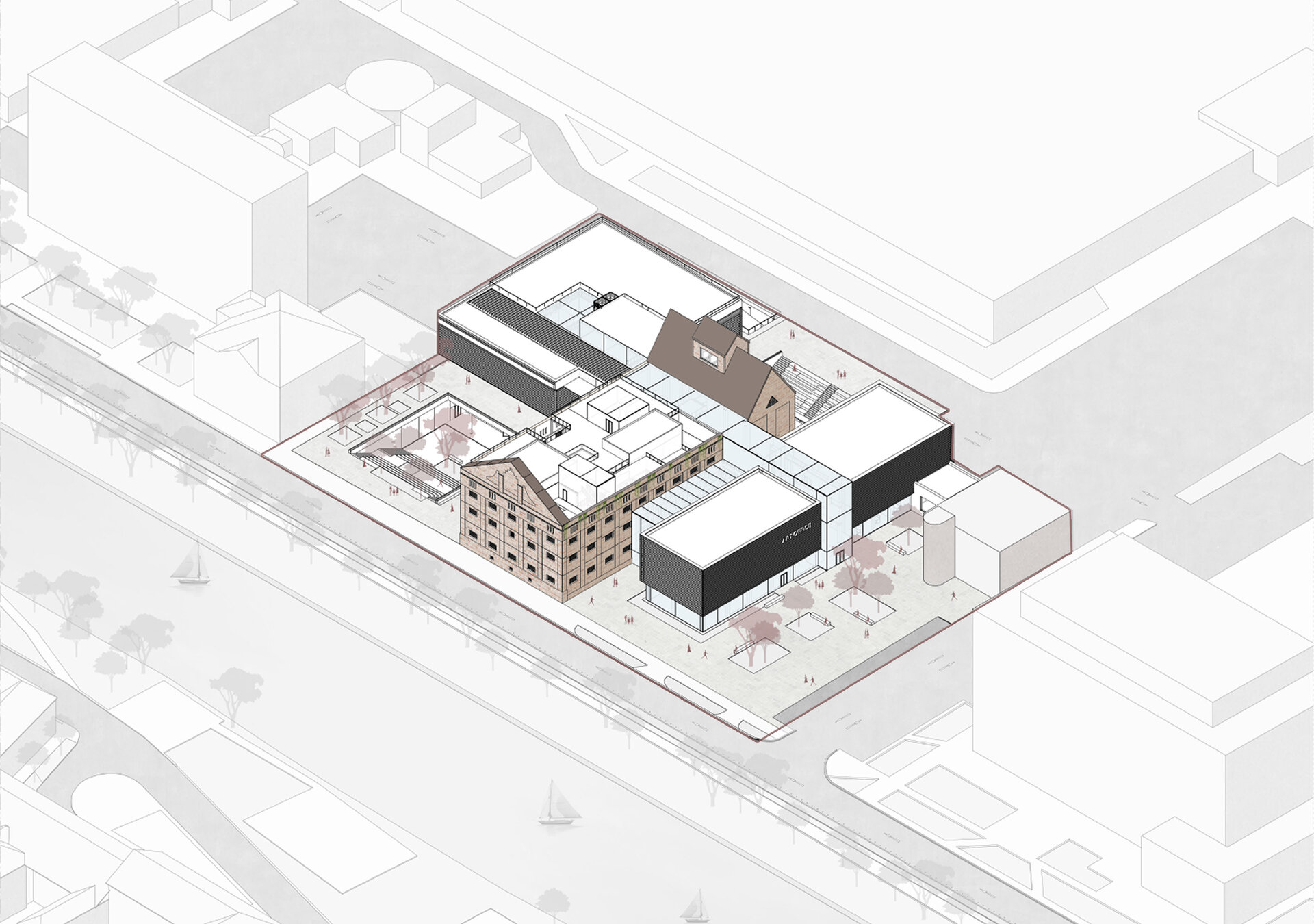 Inspirat din gestul naturii de a pune stăpânire pe clădire momentul în care nu mai este utilizată, rigurozitatea morii este disipată prin fragmentarea spațiilor, astfel încât atelierele de creație și curțile interioare ajung să se întrepătrundă.