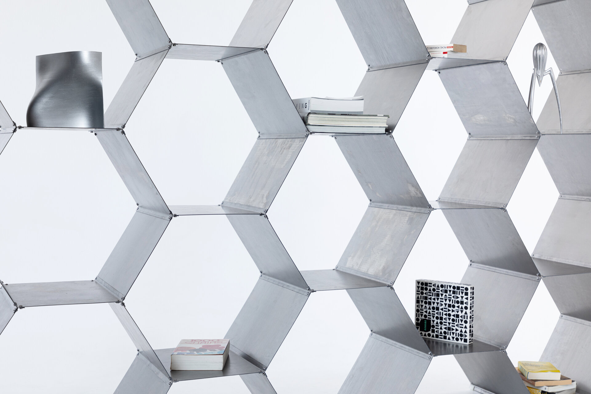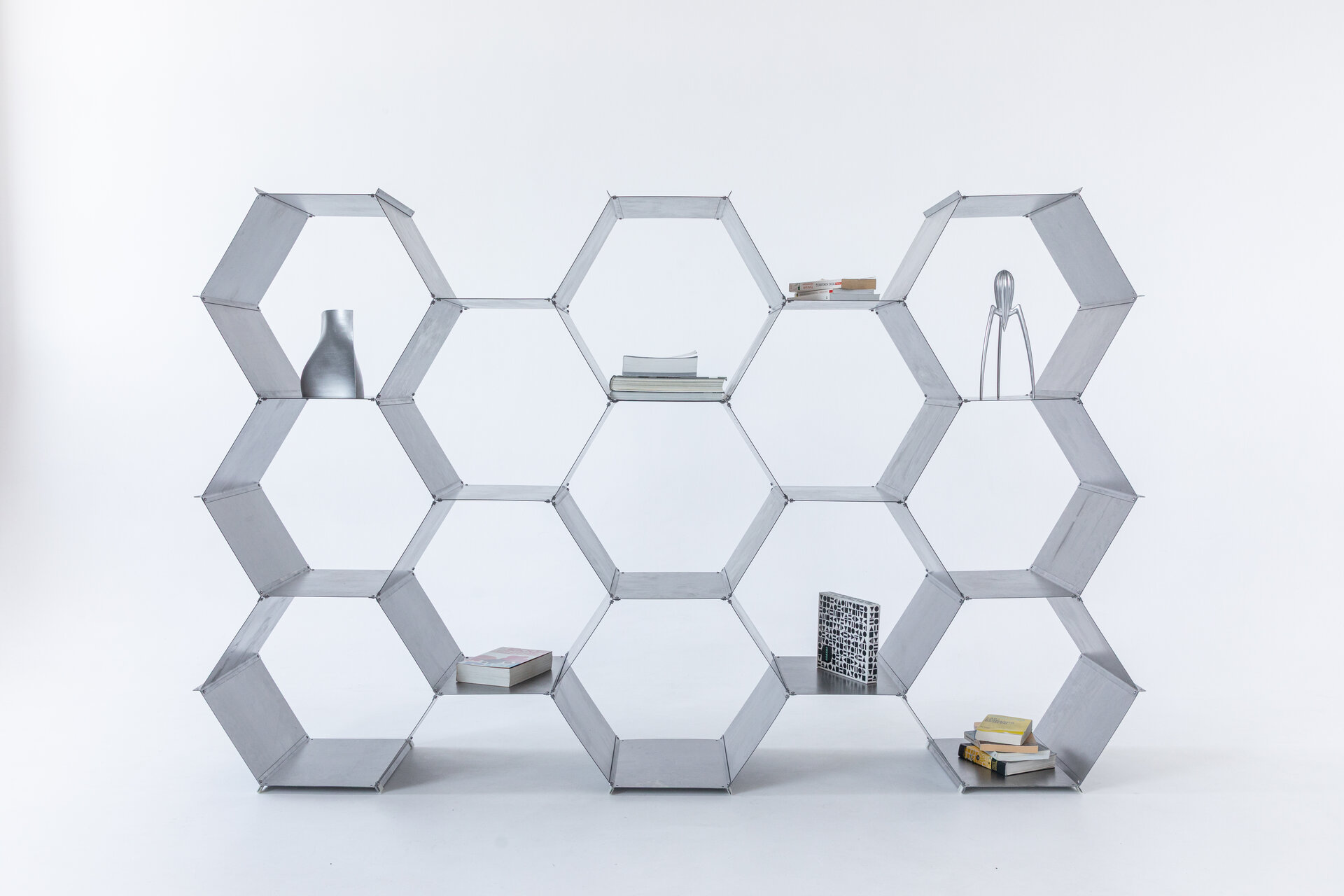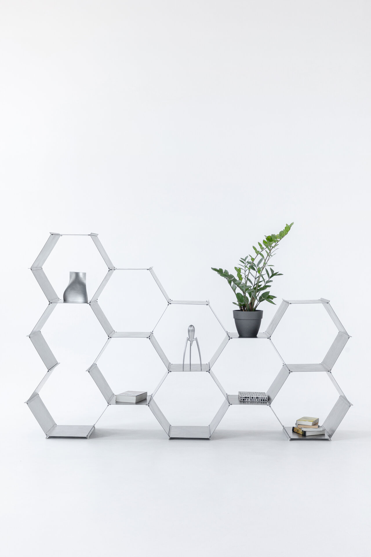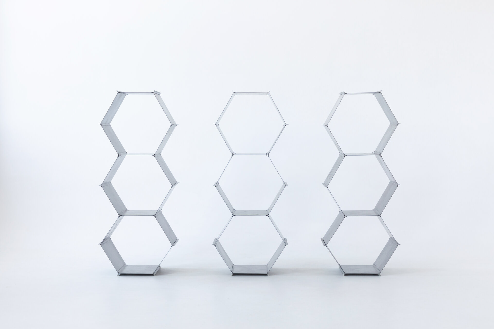 120° este unghiul de generare a unui fagure. Pentru a construi, însă, un obiect spațial, la o scară mai mare, problema s-a rezumat la a găsi forma unui singur segment care să devină 'formula' de multiplicare nelimitată a hexagonului. Astfel, elementul generator este realizat dintr-o bucată de tablă plană ale cărei două laturi opuse sunt îndoite la un unghi de 120°, formându-se două mici 'aripi'. La fiecare capăt îndoit al elementului sunt prevăzute, simetric, față de axul de îndoire, câte 4 găuri, facilitând, permanent, prinderea mecanică a doua, respectiv trei segmente care vor forma cele două tipuri de noduri ale structurii de tip fagure. Evident, această rețea spațială poate fi o etajeră, o bibioteca, sau un perete diafan. Poate fi amplasată acasă, într-un spațiu comercial sau expozițional. Poate deveni chiar o structura portantă. Grosimea mică a tablei creează jocuri interesante de materialitate, în funcție de poziția privitorului. Structura pare, deopotrivă, fragilă sau robustă. În termeni de eficiență și sustenabilitate, existența unui singur tip de element asigură atât o producție simplificată, cât și o compactare a numărului de elemente într-un volum minim, ceea ce face ca, atât transportul cât și depozitarea, să fie posibile în condiții avantajoase. Asamblarea e relativ ușoară și permite realizarea unei multitudini de forme și dimensiuni.