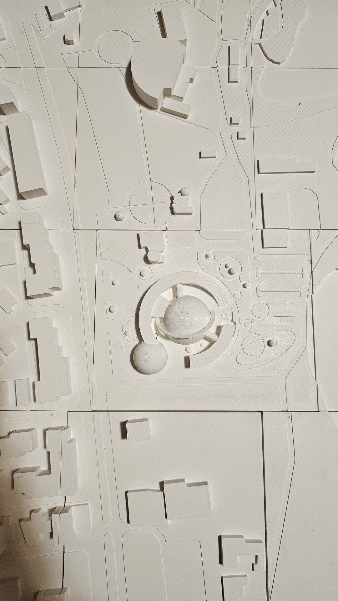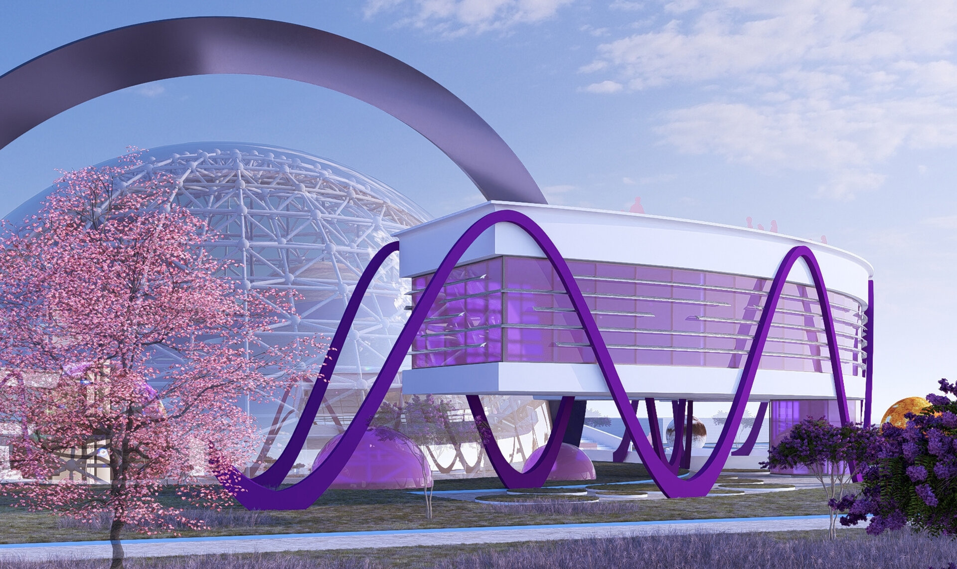 Pentru a accentua și mai mult expresia astronomică a compoziției, am adăugat un element independent – un arc de cerc – care potențează vizual și simbolic întreaga structură. Acest gest arhitectural nu doar completează dinamica volumetrică, ci și amplifică mesajul proiectului: acela al unei arhitecturi care devine poartă către cunoaștere și explorare.