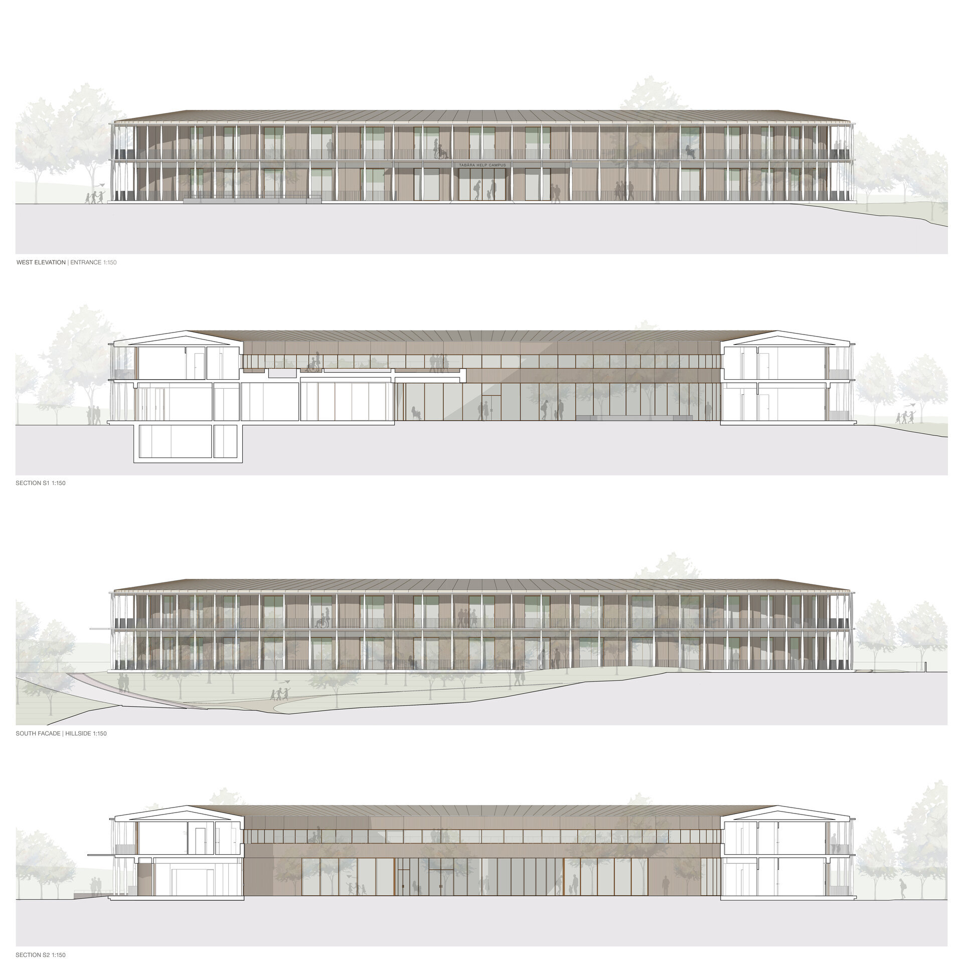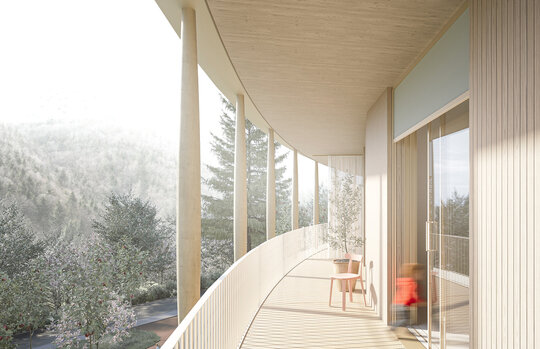 La nivelul parterului, spațiile comune pentru relaxare și terapie se orientează spre curtea interioară, zonă ce invită la comuniune. Unitățile individuale de cazare privesc spre peisajele spectaculoase ce înconjoară situl. Etajul 1 beneficiază de o terasă grădină amplă ce maximizează suprafața verde din ansamblu și contribuie la procesul de însănătoșire. Spațiile generatoare de zgomot au fost poziționate la subsol (beneficiind de curți de lumină) pentru a nu perturba activitățile de terapie.