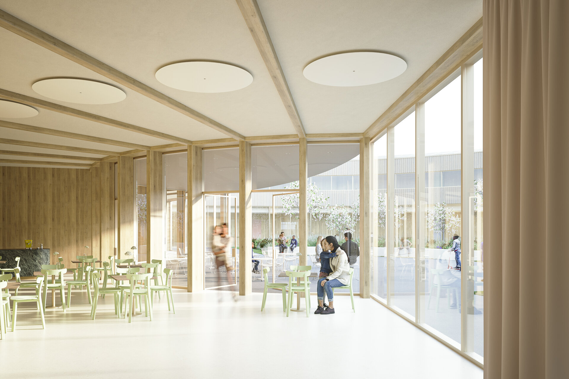 Fiecare spațiu interior comunică direct cu natura prin suprafețe vitrate generoase. Astfel, lumina naturală are un impact puternic pozitiv asupra sănătății.