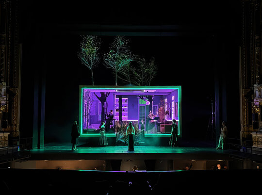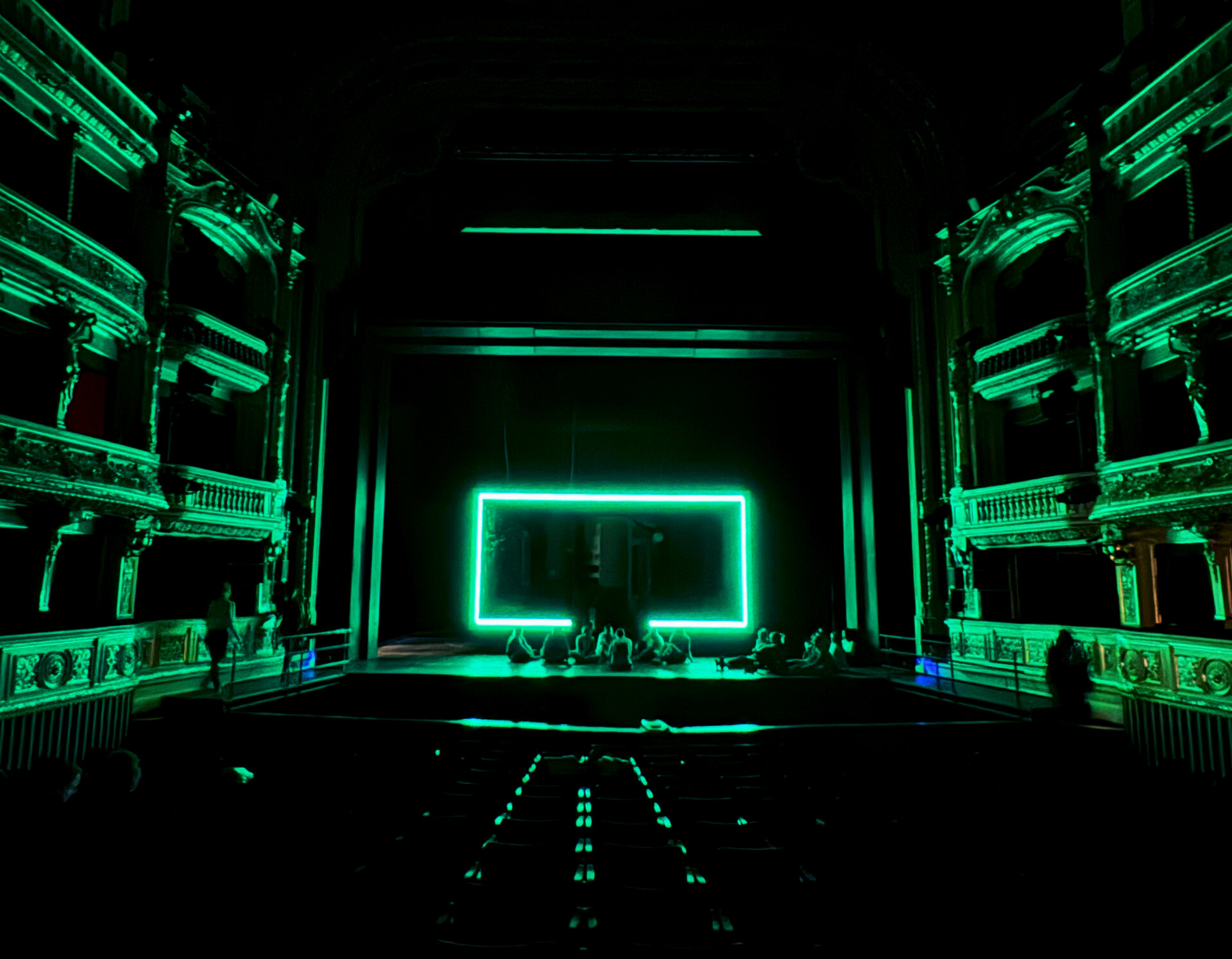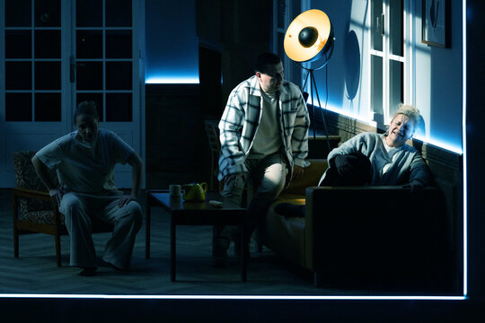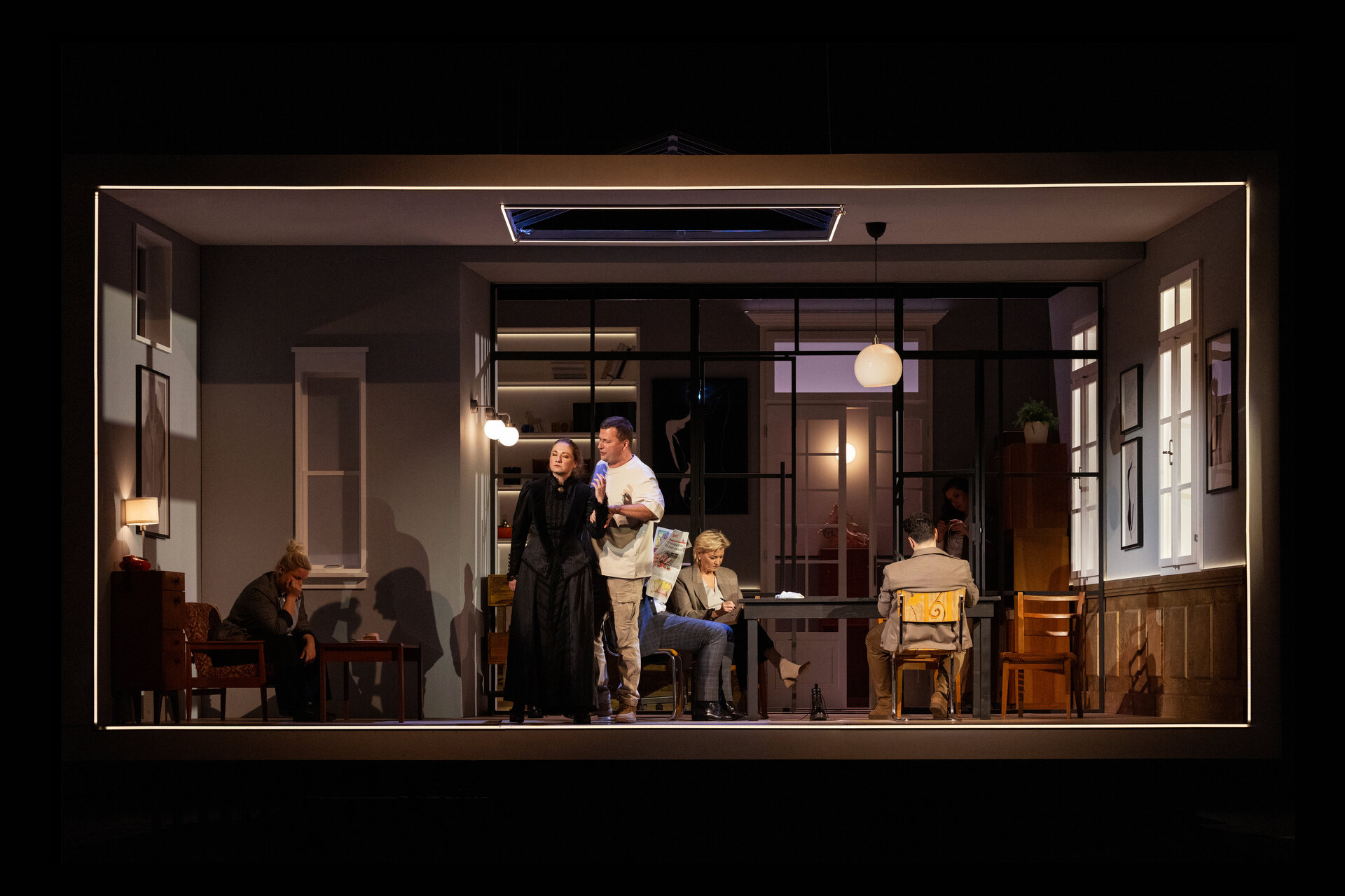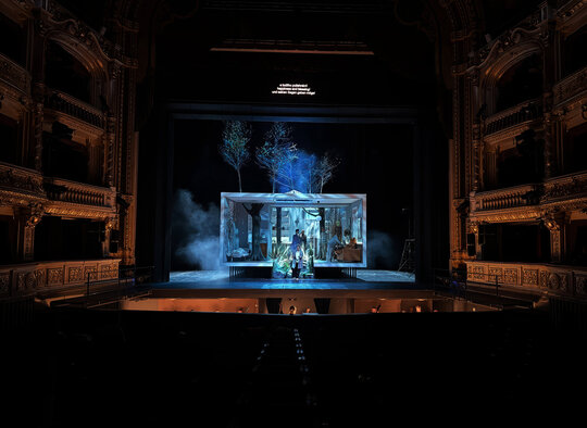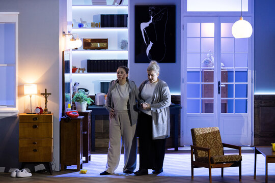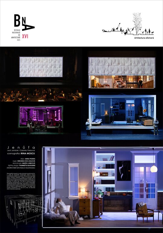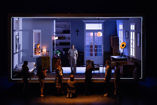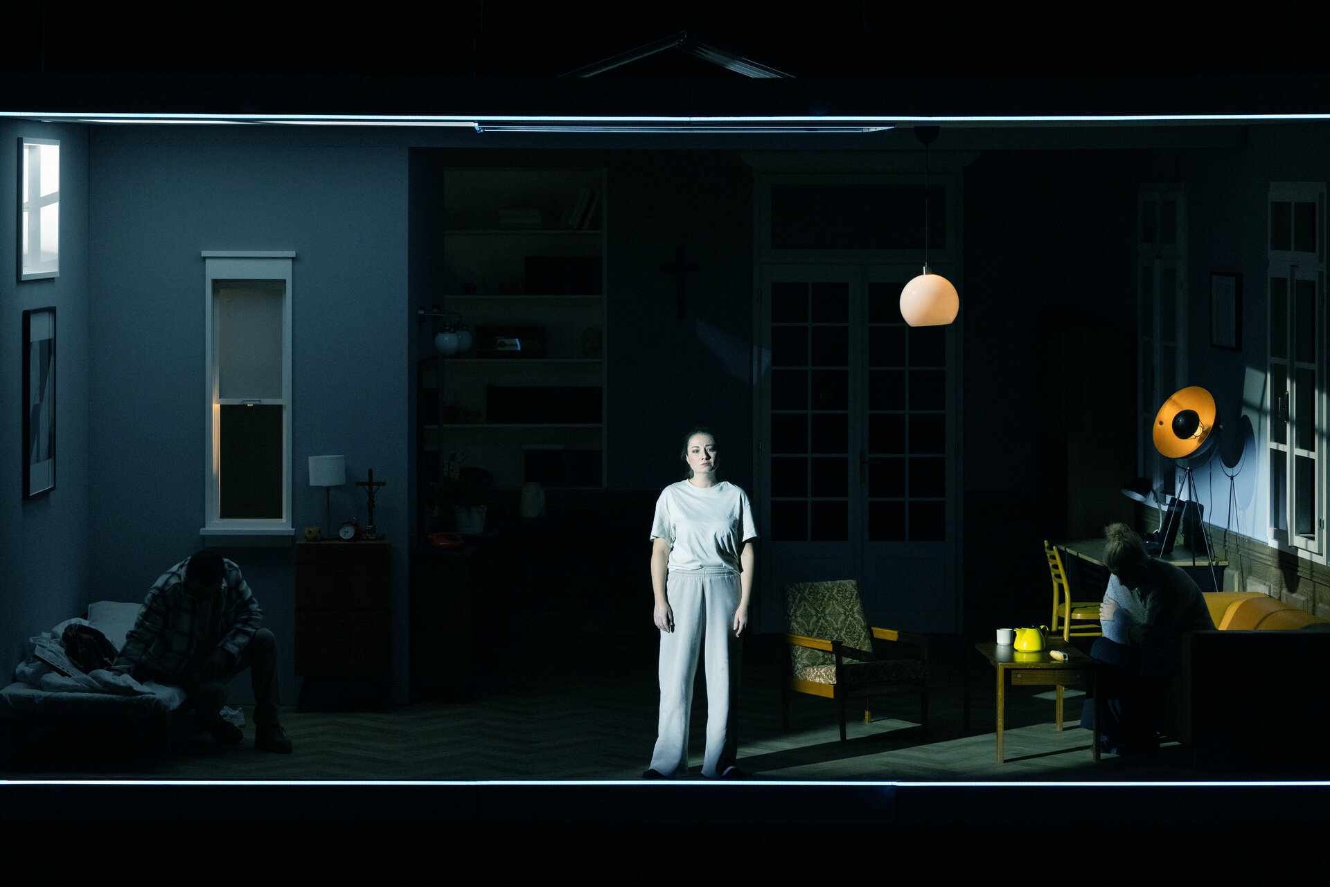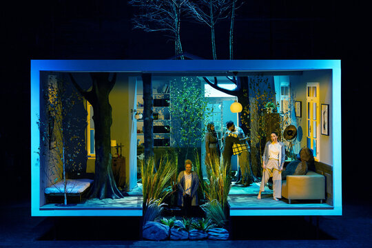 Scenografia propune un cadru domestic recognoscibil, transformat într-o „cutie de rezonanță” emoțională, care respiră și se metamorfozează odată cu povestea. Spațiul este fluid: pereții devin ecrane pentru proiecții simbolice, interioarele se deschid spre exterior, iar decorul se transformă treptat într-o grădină/peisaj natural, reflectând tensiunea dintre constrângere socială și eliberare interioară.