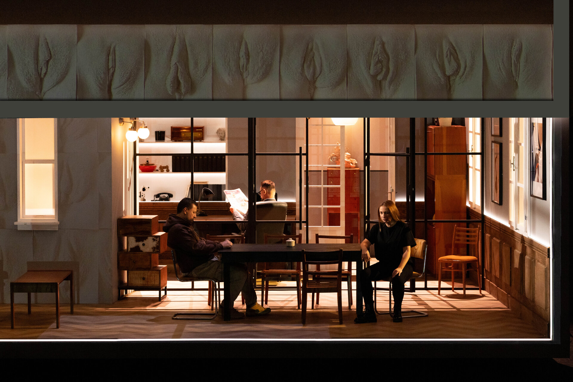 Elementul central – „The Wall of Vulvas” de Jamie McCartney – funcționează ca un cor vizual al feminității, amplificând temele maternității, stigmatului și rezilienței. Această lucrare introduce o dimensiune universală și contemporană în dramă, transformând scena într-un spațiu de confesiune colectivă.