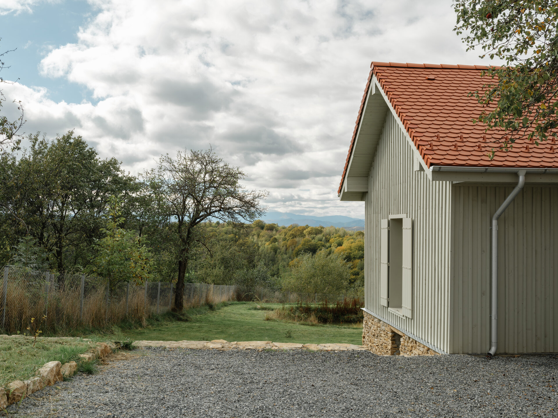 În cazul de față, intervenția are loc într-un cătun pre-montan, înconjurat de un peisaj pitoresc alcătuit din păduri de stejar și frasin. Aici, locuința și șura– ambele construcții din lemn de esență tare, provenit din pădurile apropiate, și acoperite cu țiglă arsă – se aflau într-o stare avansată de degradare. Proiectul propune restaurarea acestui ansamblu și conversia lui într-un spațiu de locuire contemporan, fără a altera caracterul originar al construcțiilor.