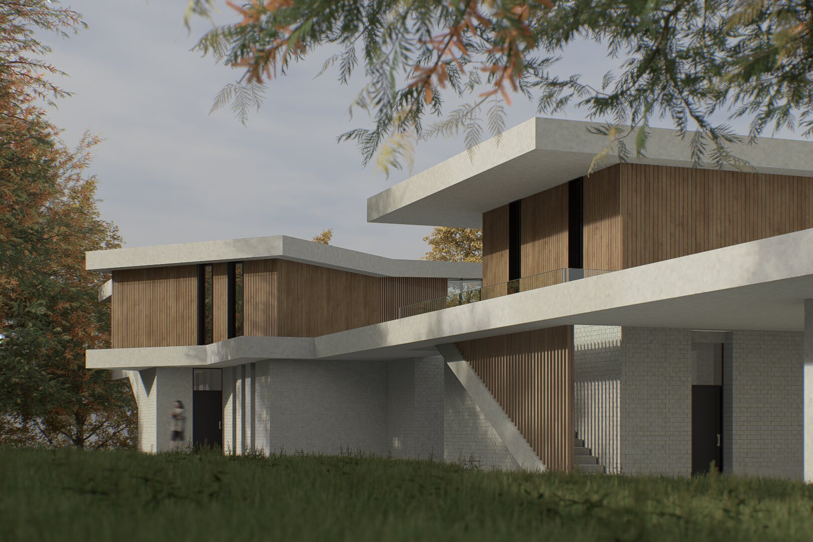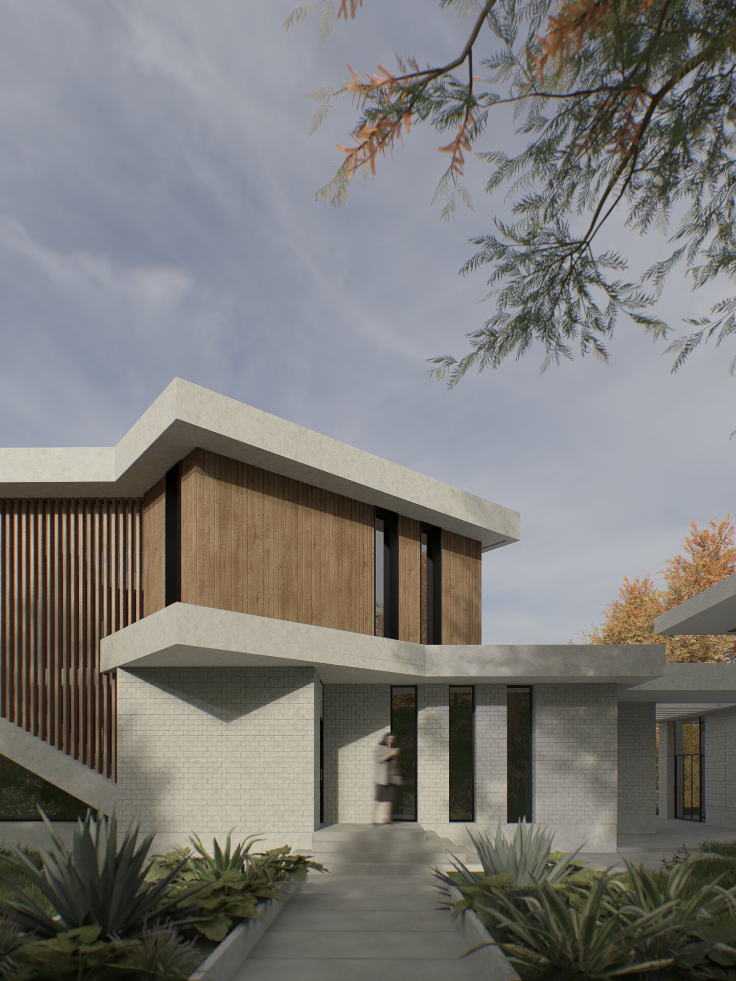 Proiectul se divide în două volume distincte, interconectate printr-o terasă exterioară - un spațiu nu doar de tranziție, dar și ca o zonă centrală de socializare.